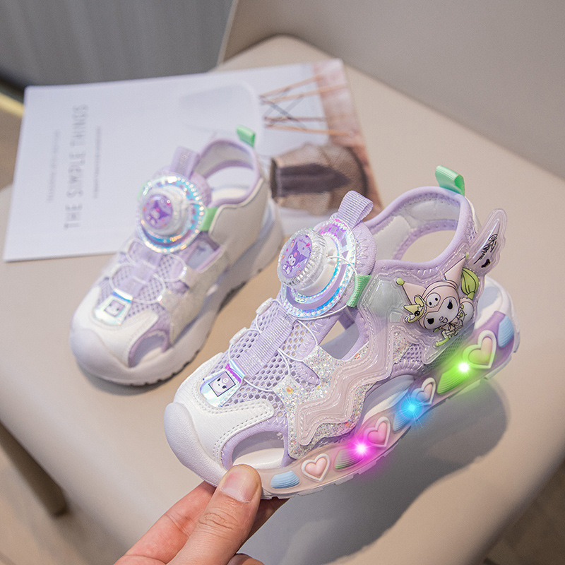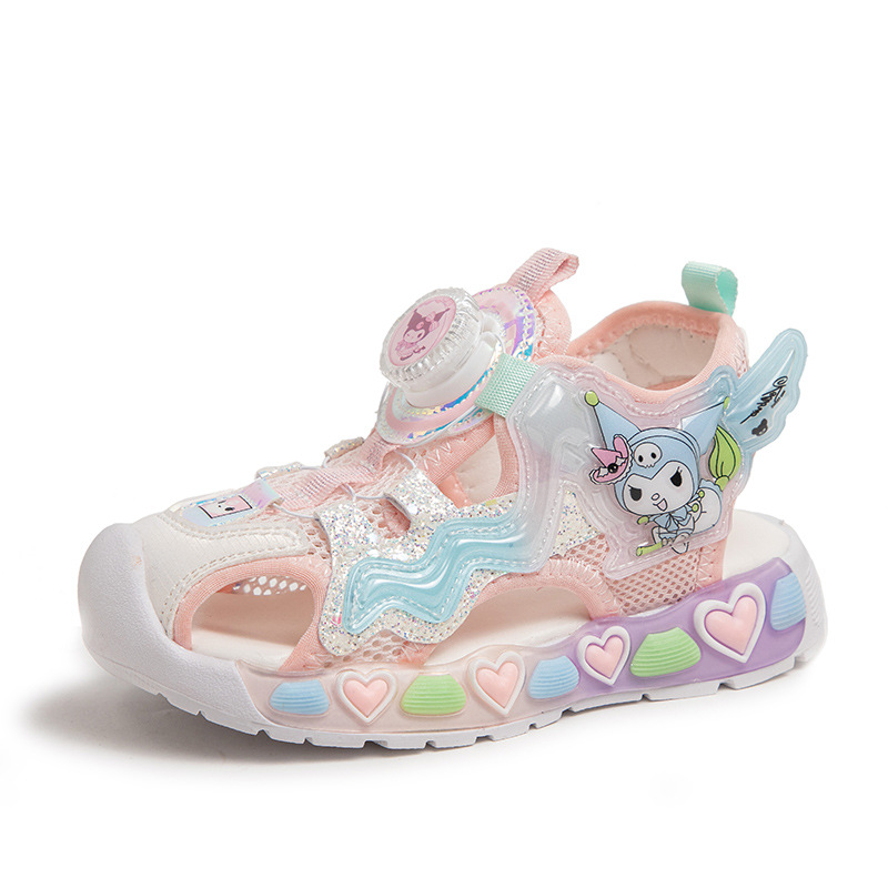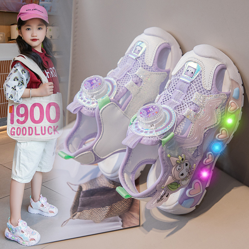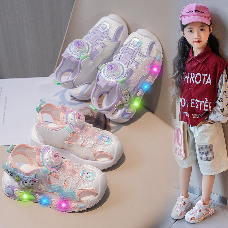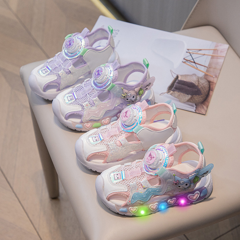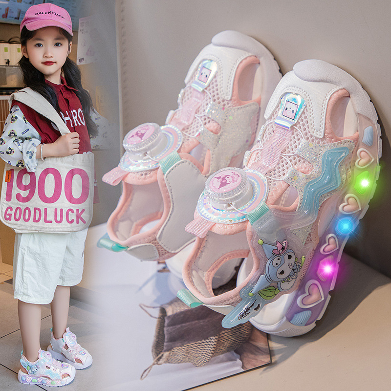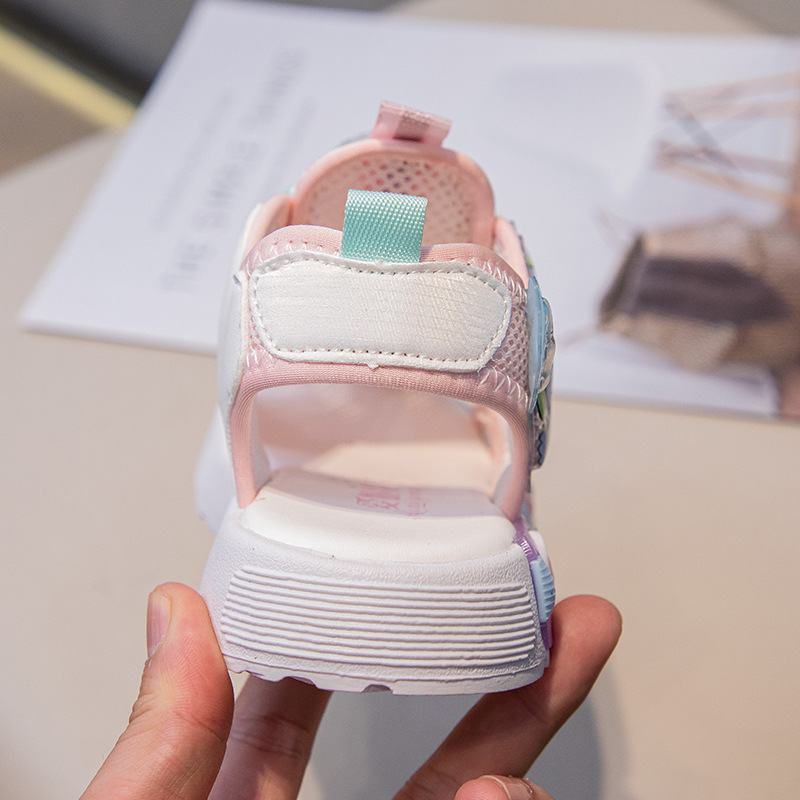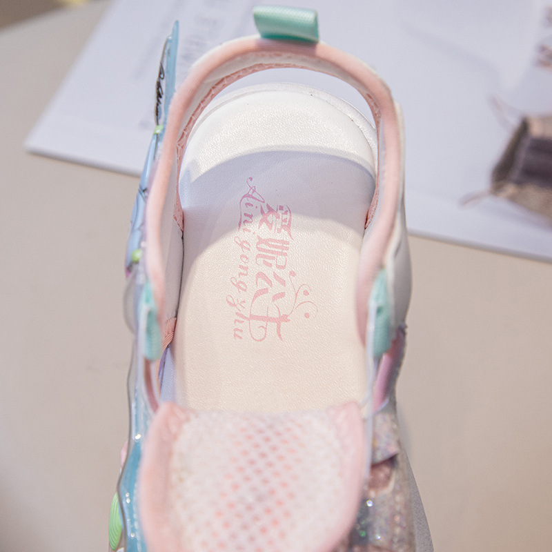 소녀 바오 터우 샌들 2024 여름 새로운 소프트 솔 미끄럼 방지 비치 슈즈 소설 패션 스위블 버클 라이트 샌들