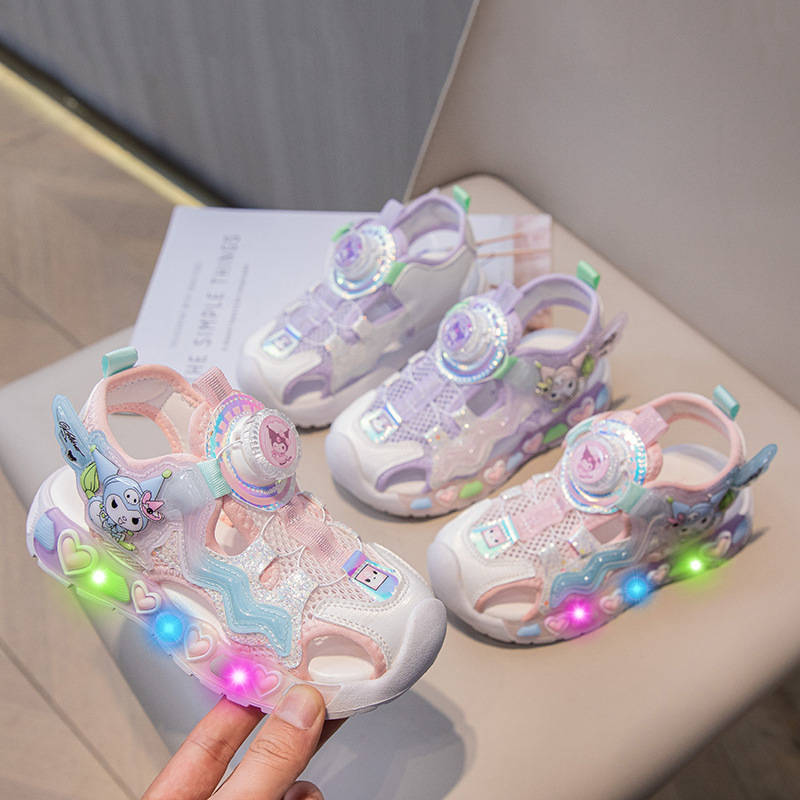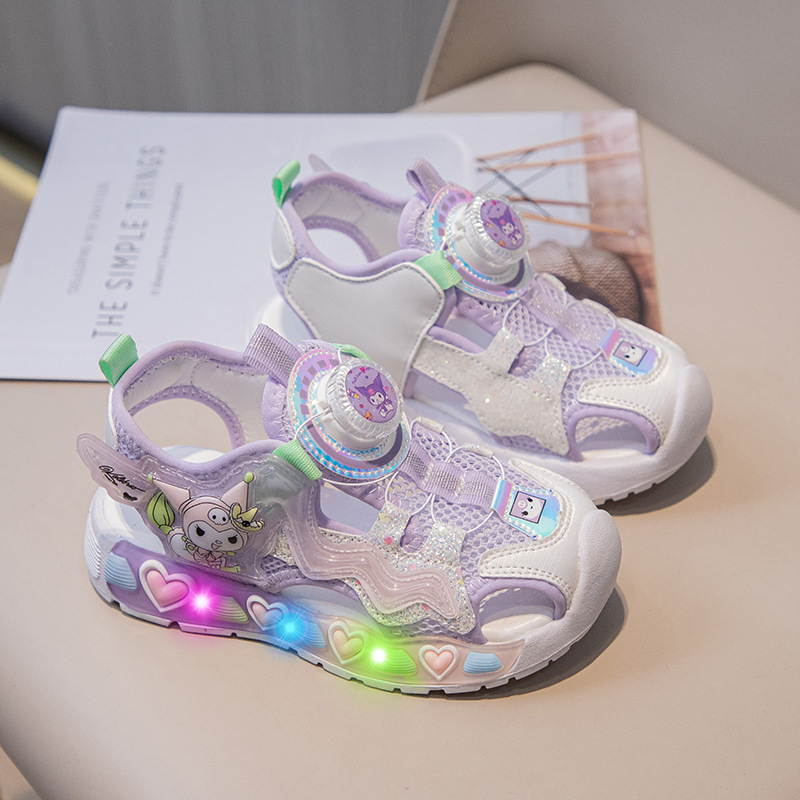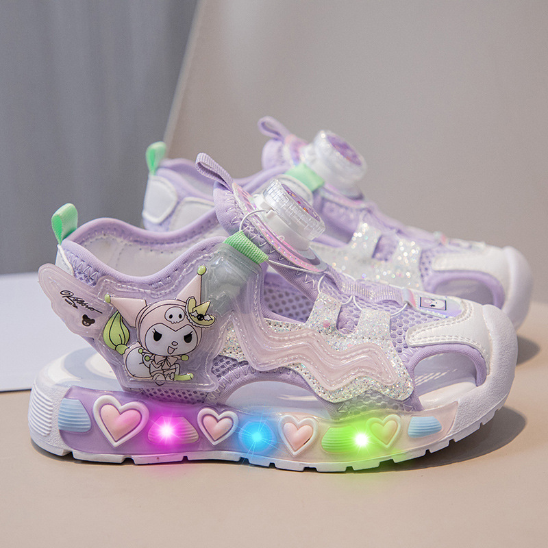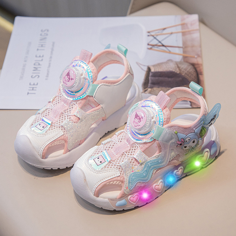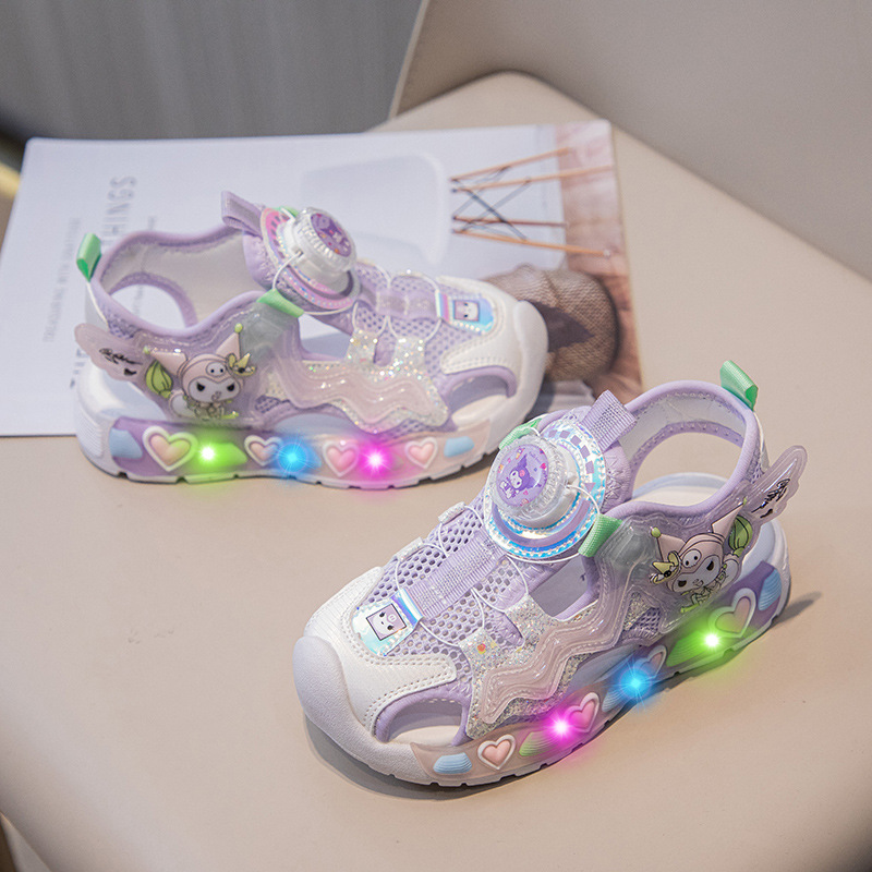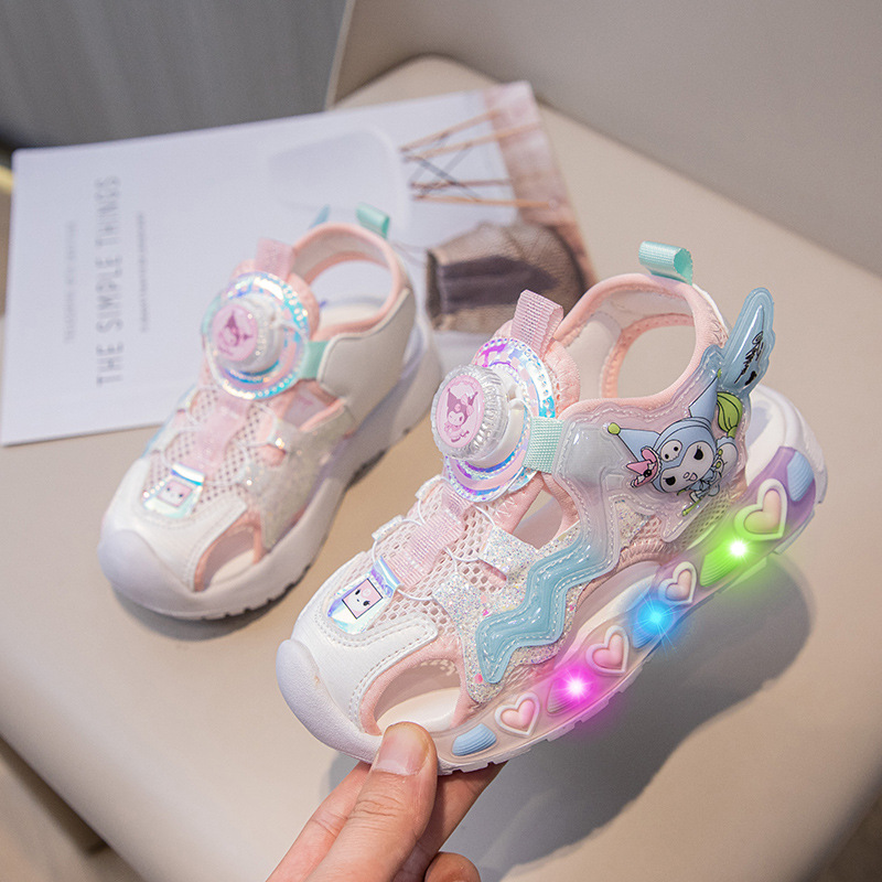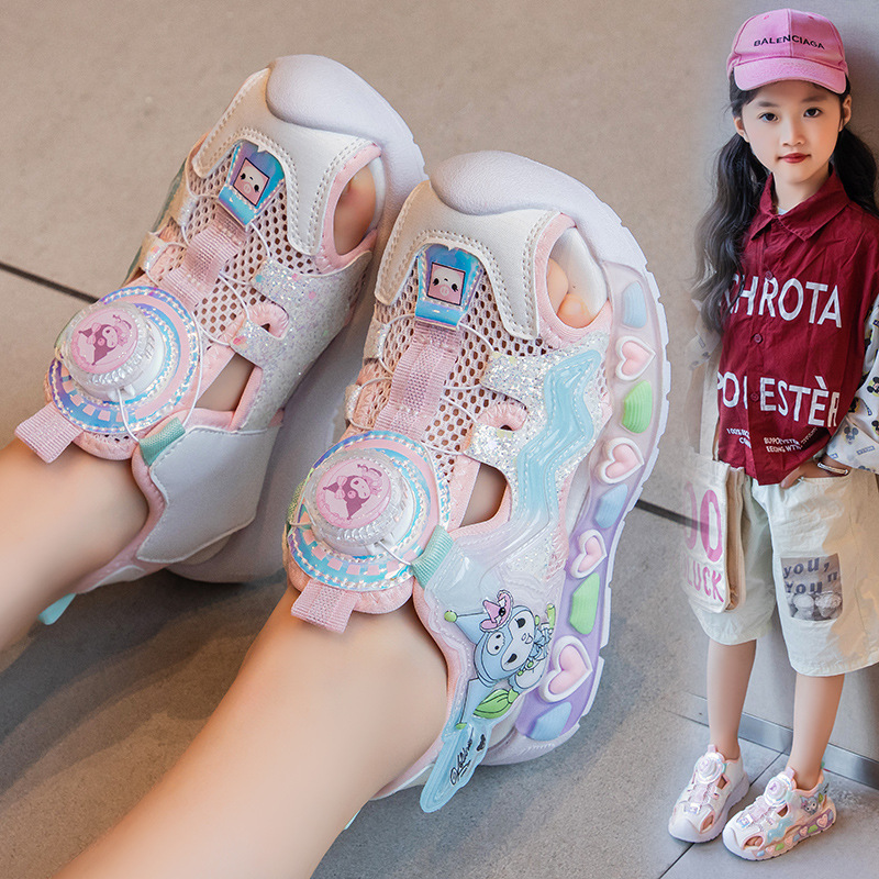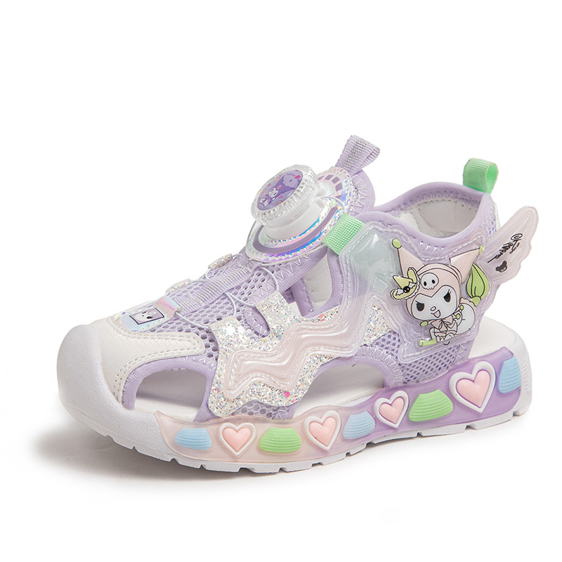 소녀 바오 터우 샌들 2024 여름 새로운 소프트 솔 미끄럼 방지 비치 슈즈 소설 패션 스위블 버클 라이트 샌들