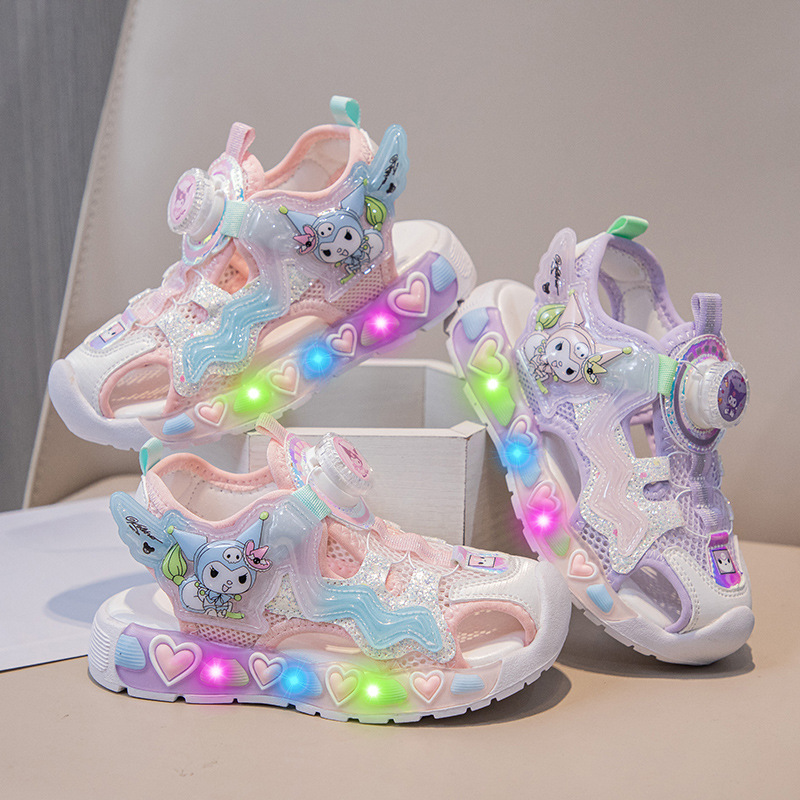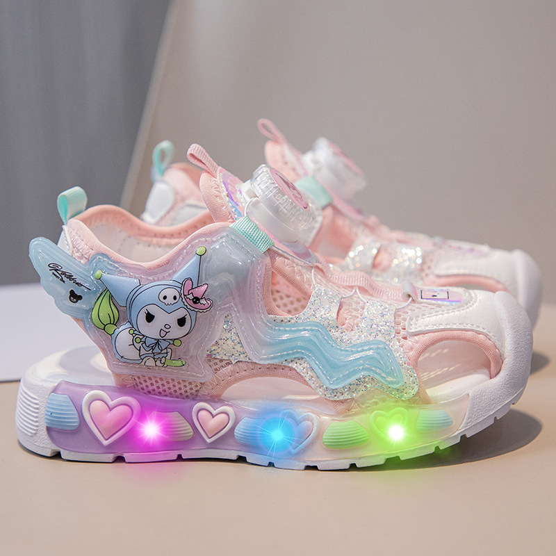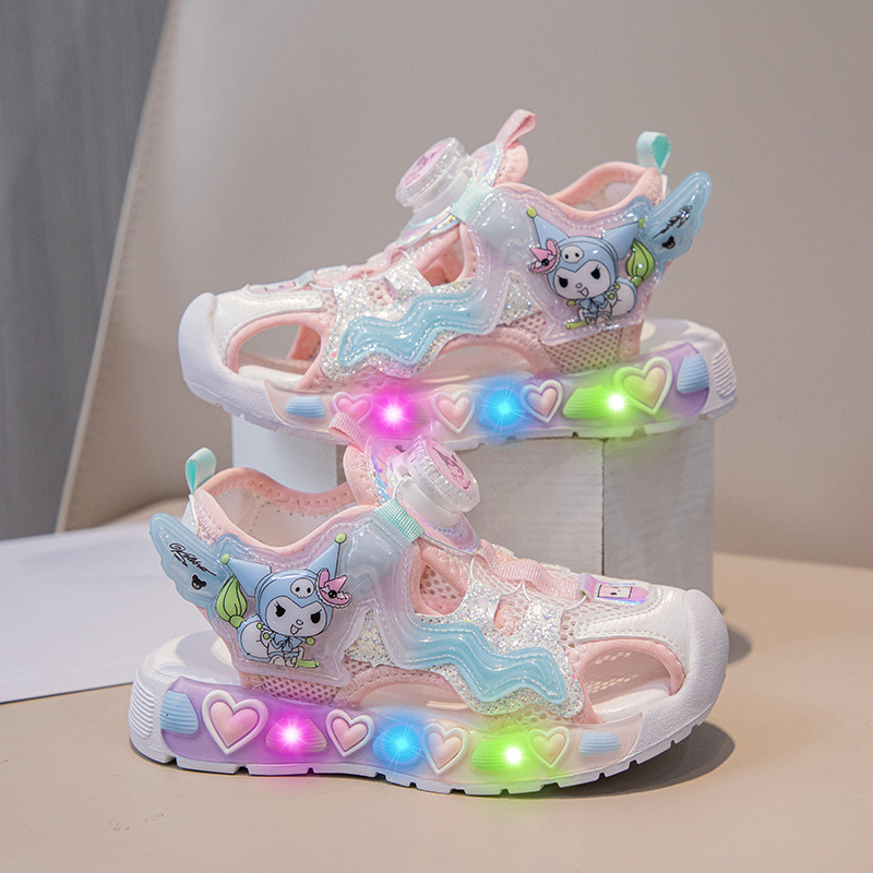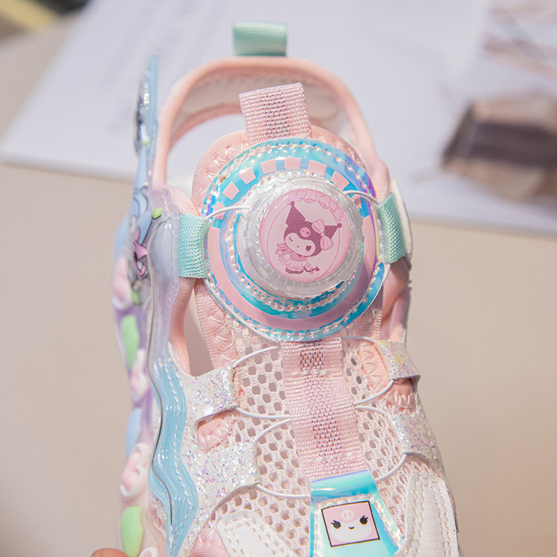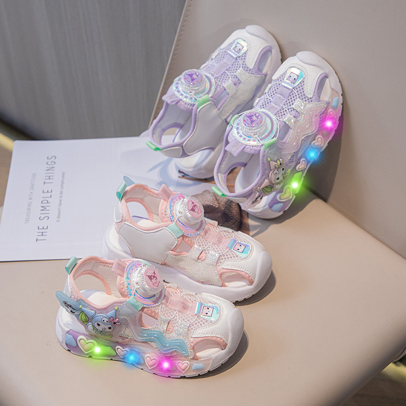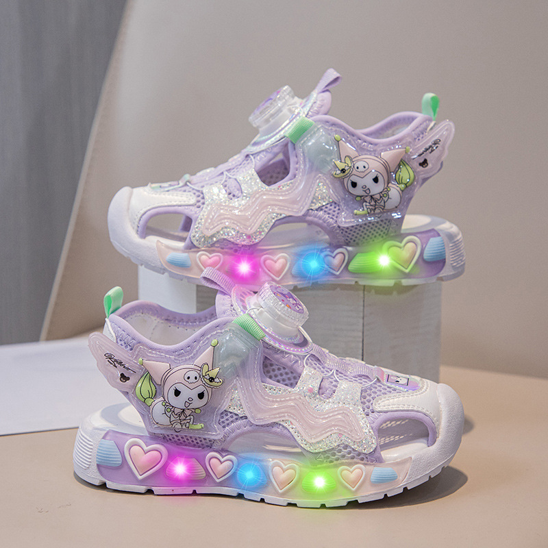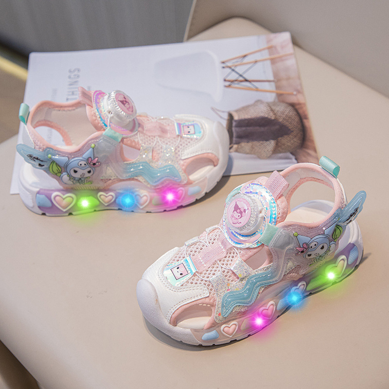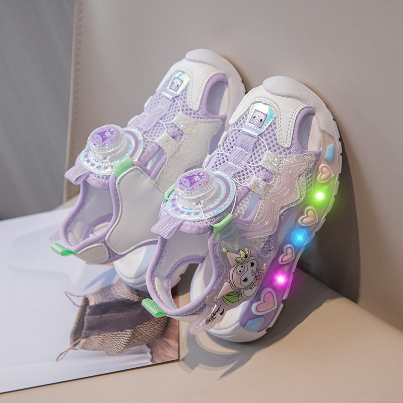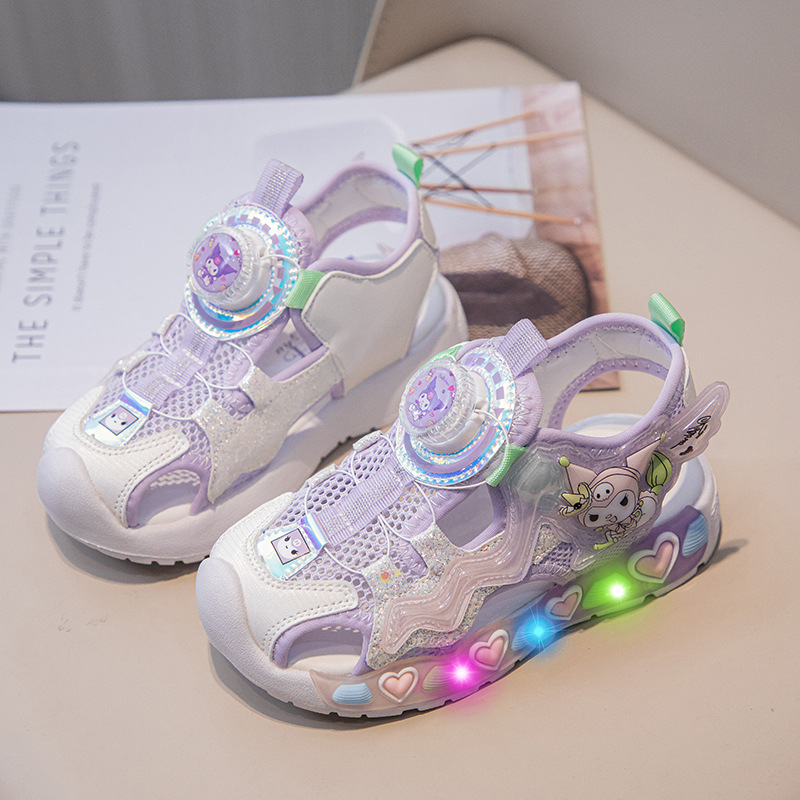 소녀 바오 터우 샌들 2024 여름 새로운 소프트 솔 미끄럼 방지 비치 슈즈 소설 패션 스위블 버클 라이트 샌들