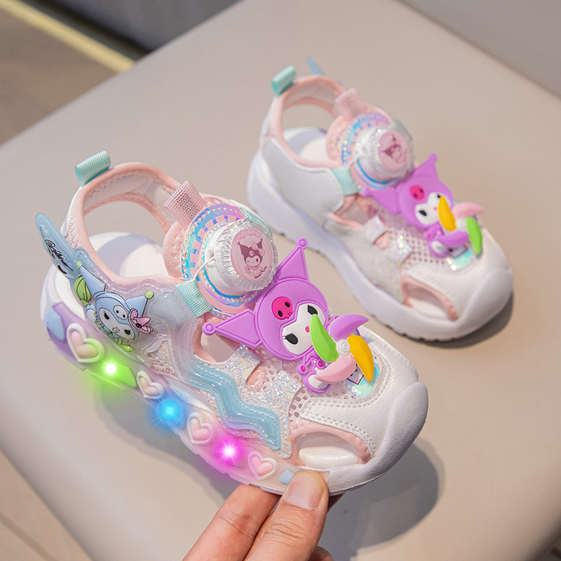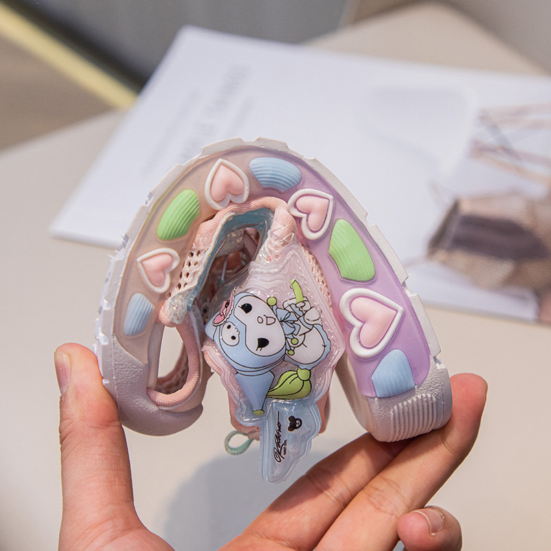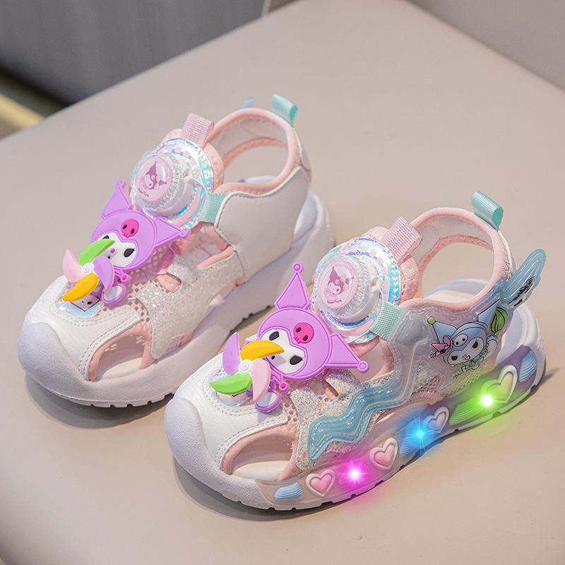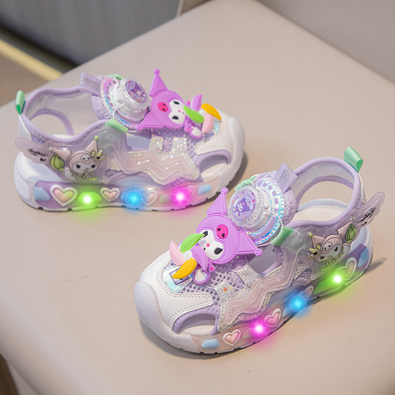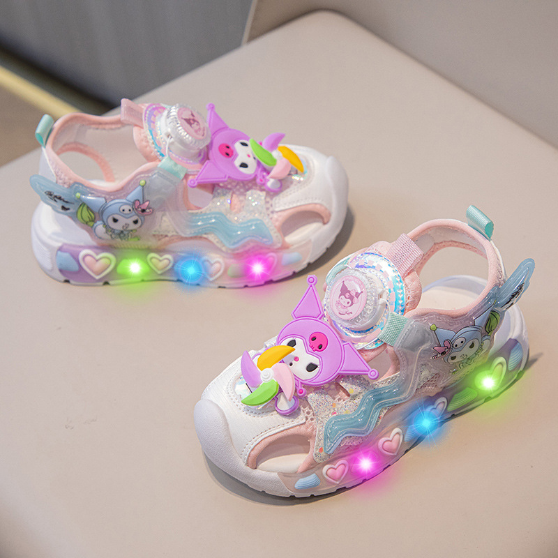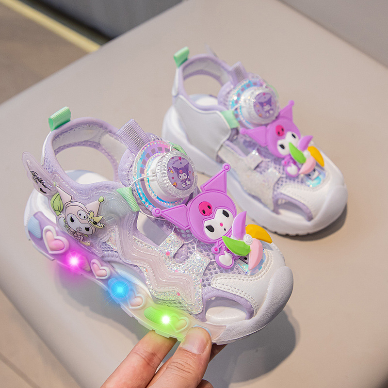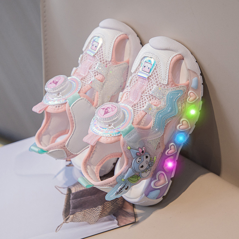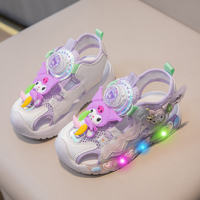 소녀 바오 터우 샌들 2024 여름 새로운 소프트 솔 미끄럼 방지 비치 슈즈 소설 패션 스위블 버클 라이트 샌들