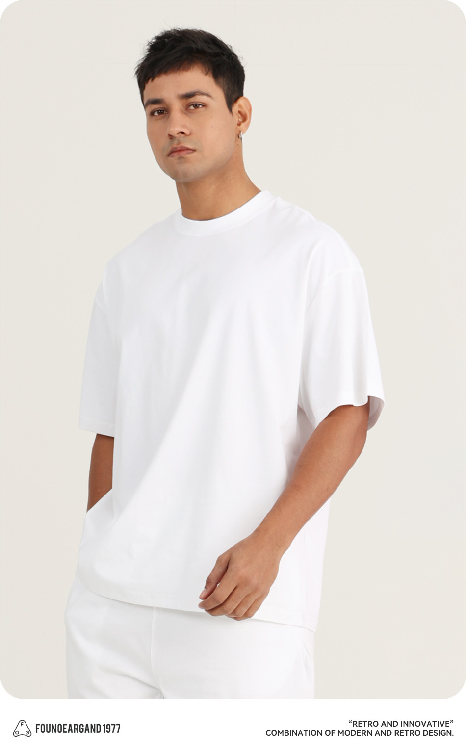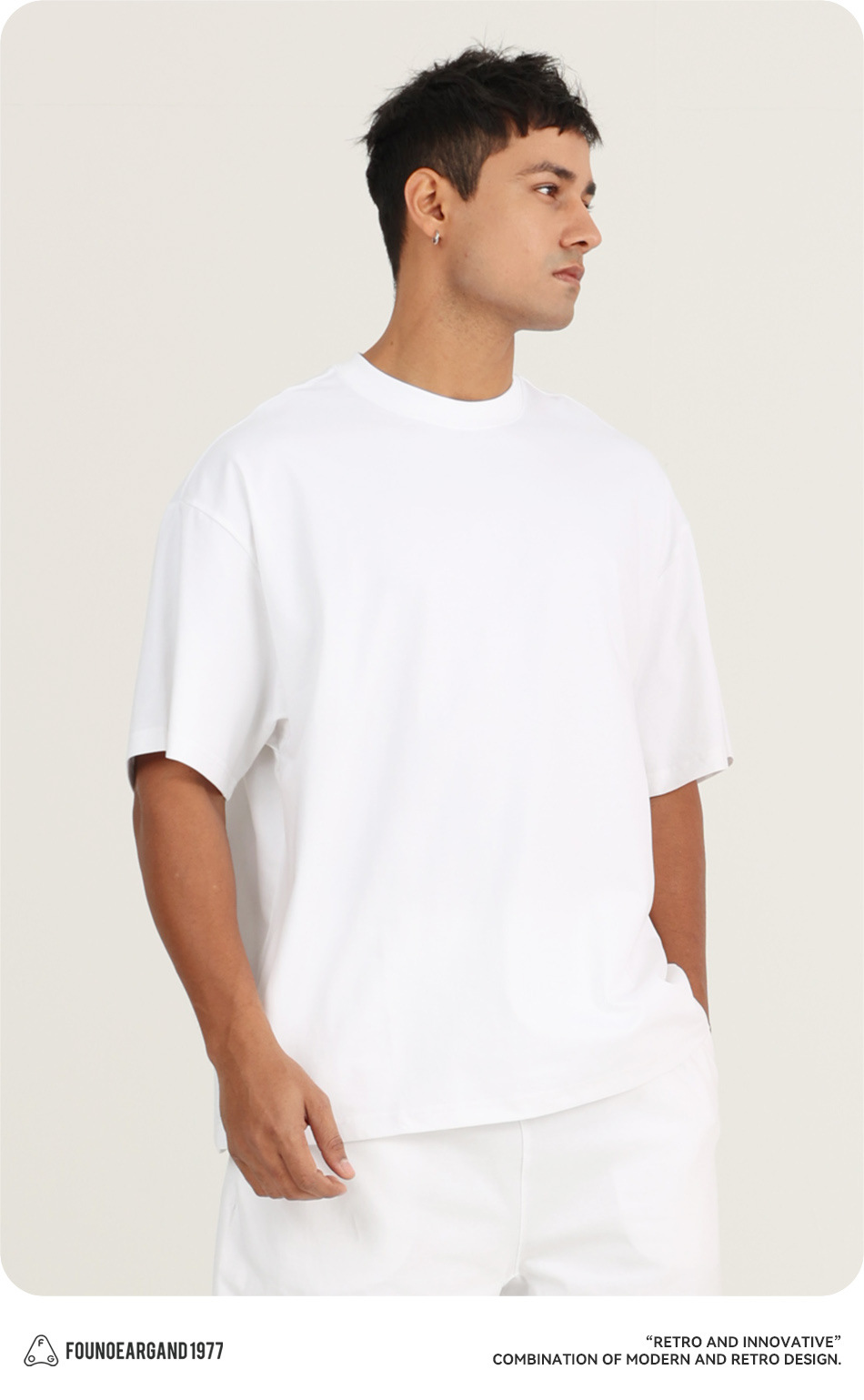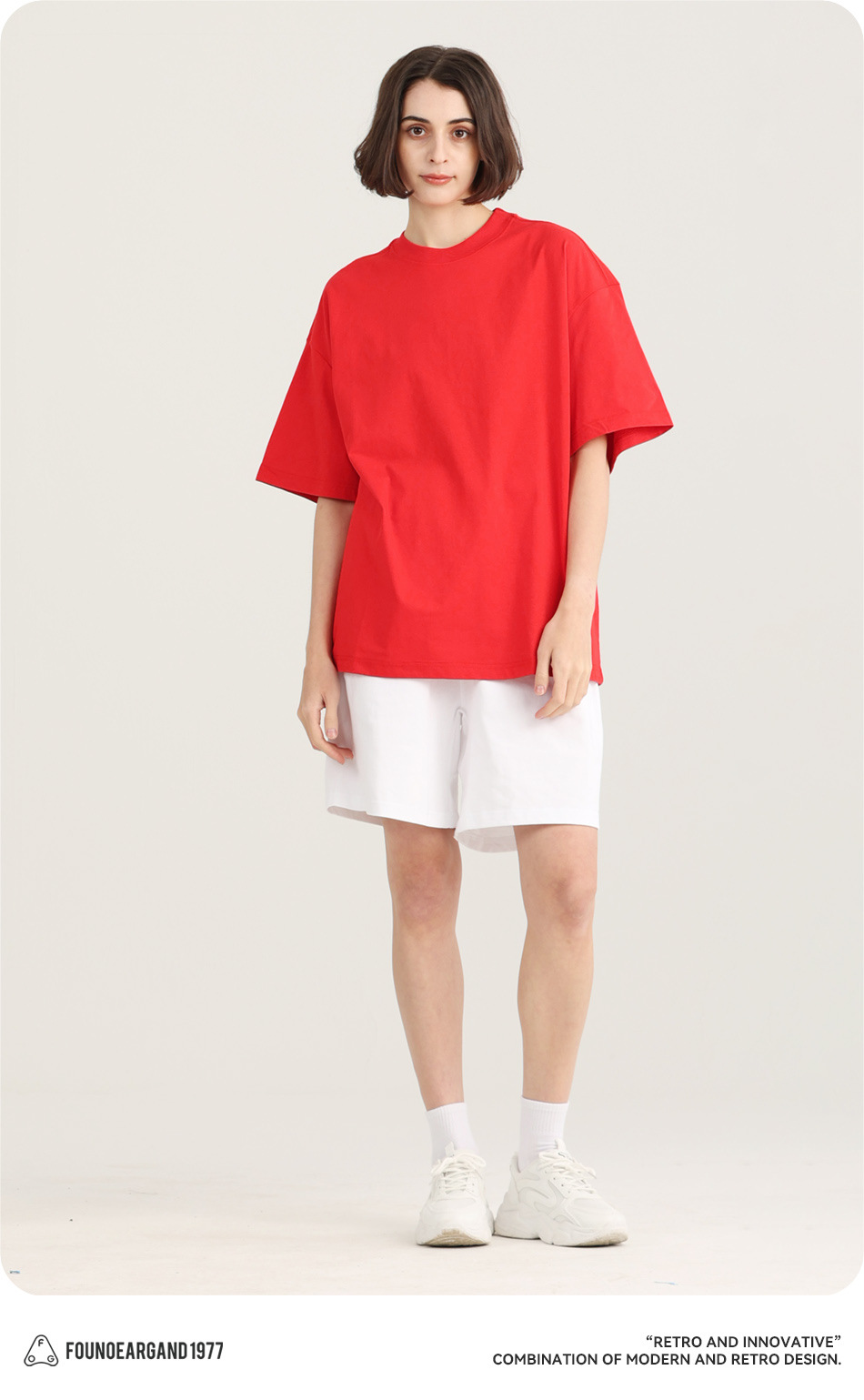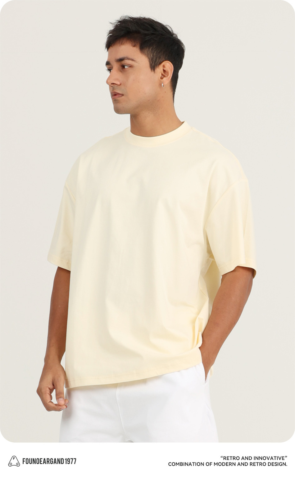 FOG 남성복 솔로나 시원한 속건성 작은 네크라인 루즈핏 트렌디한 드롭숄더 솔리드 컬러 반팔 티셔츠 남녀공용 아메리칸 레트로 스타일스토어 가기