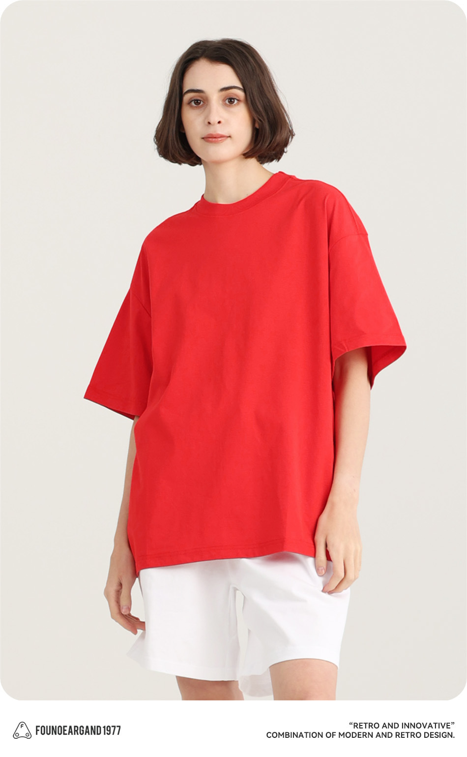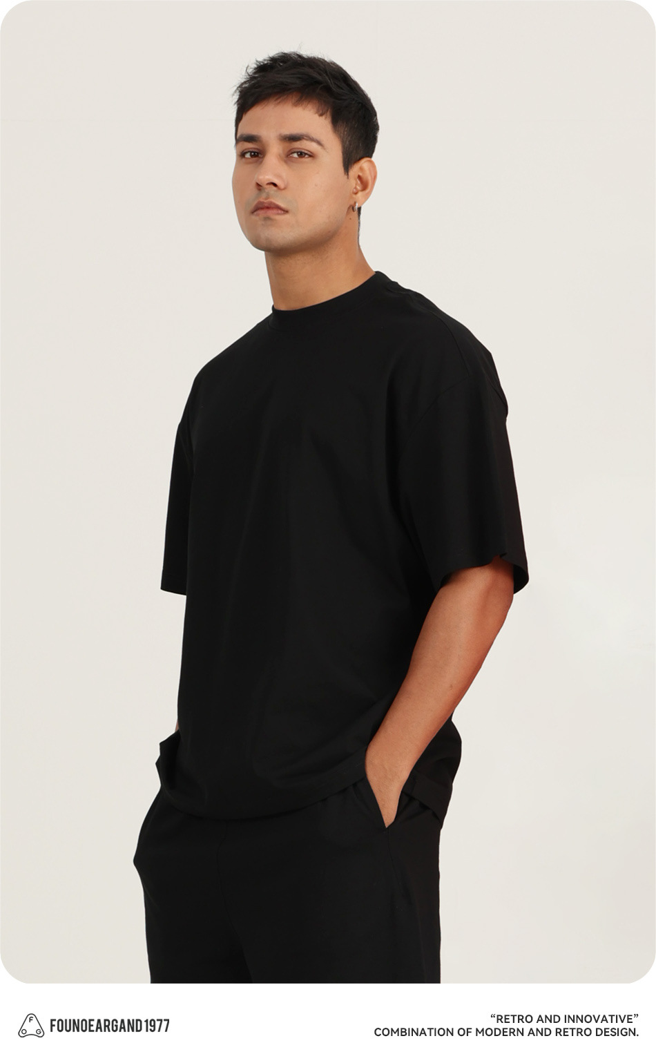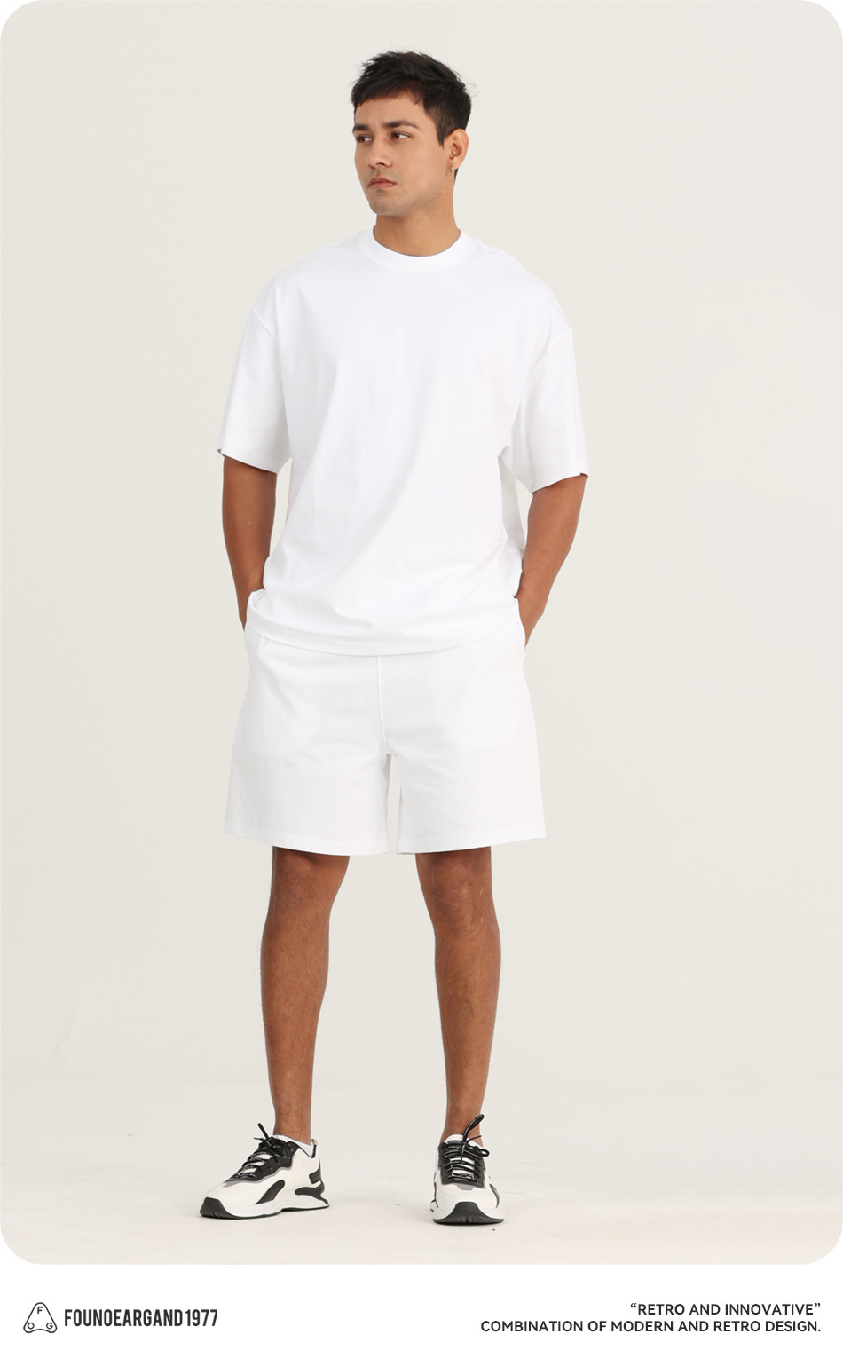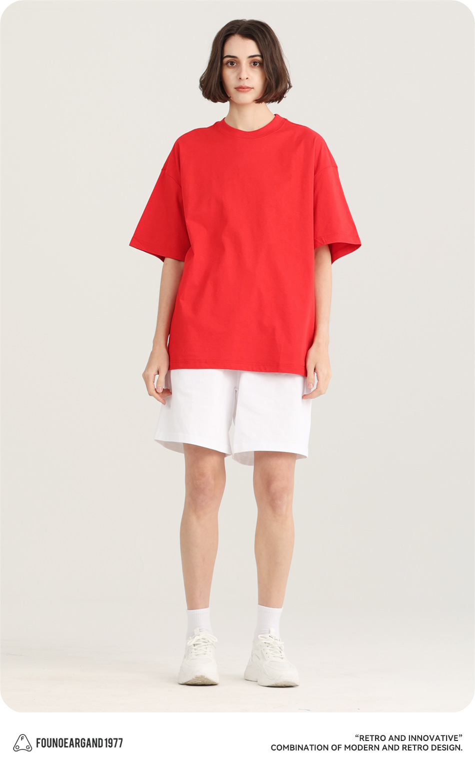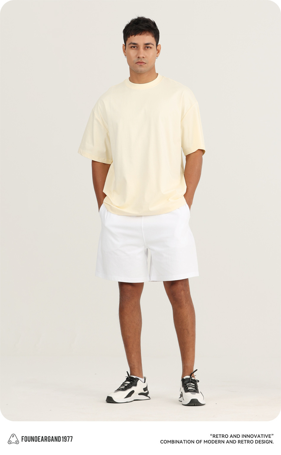 FOG 남성복 솔로나 시원한 속건성 작은 네크라인 루즈핏 트렌디한 드롭숄더 솔리드 컬러 반팔 티셔츠 남녀공용 아메리칸 레트로 스타일스토어 가기