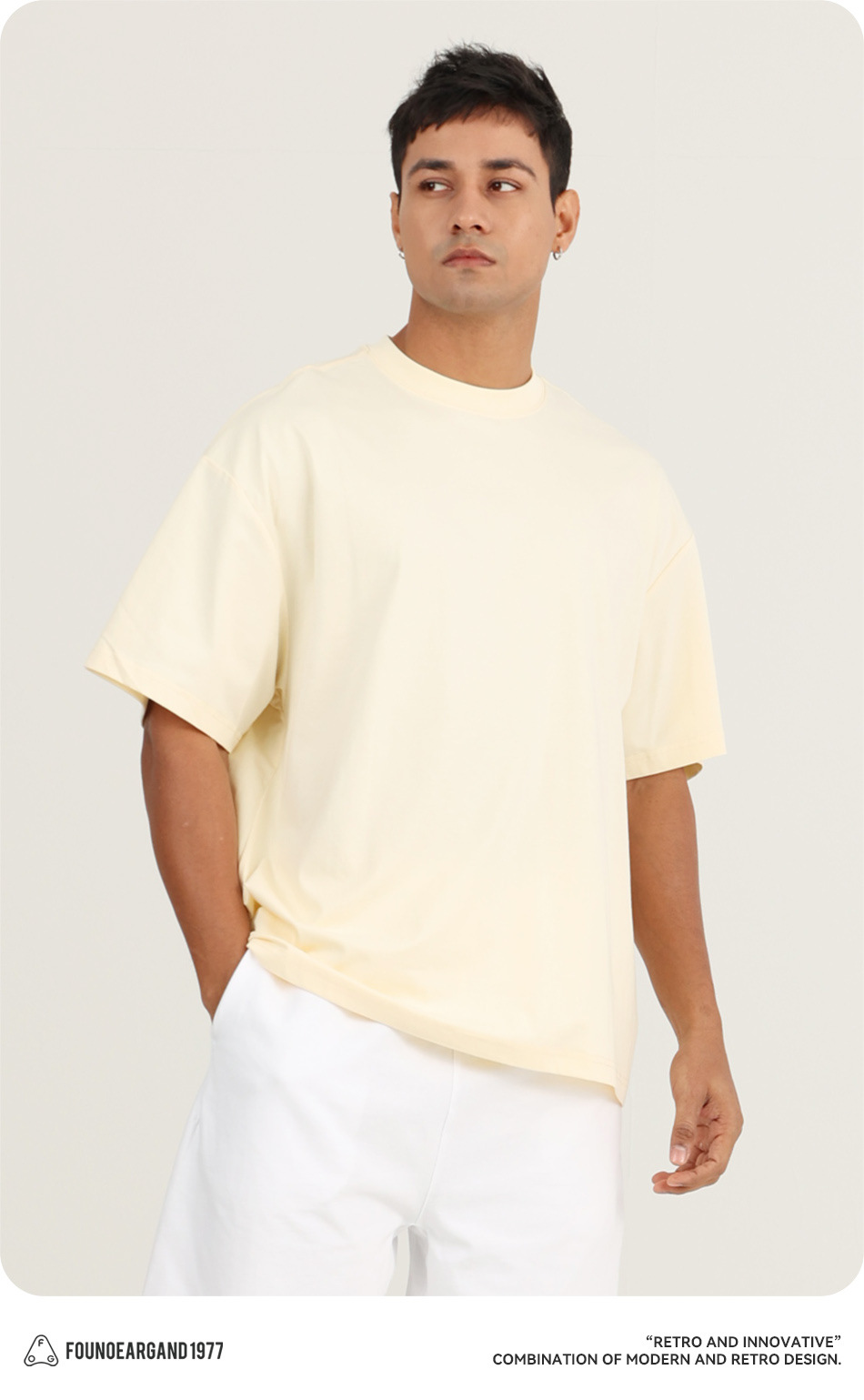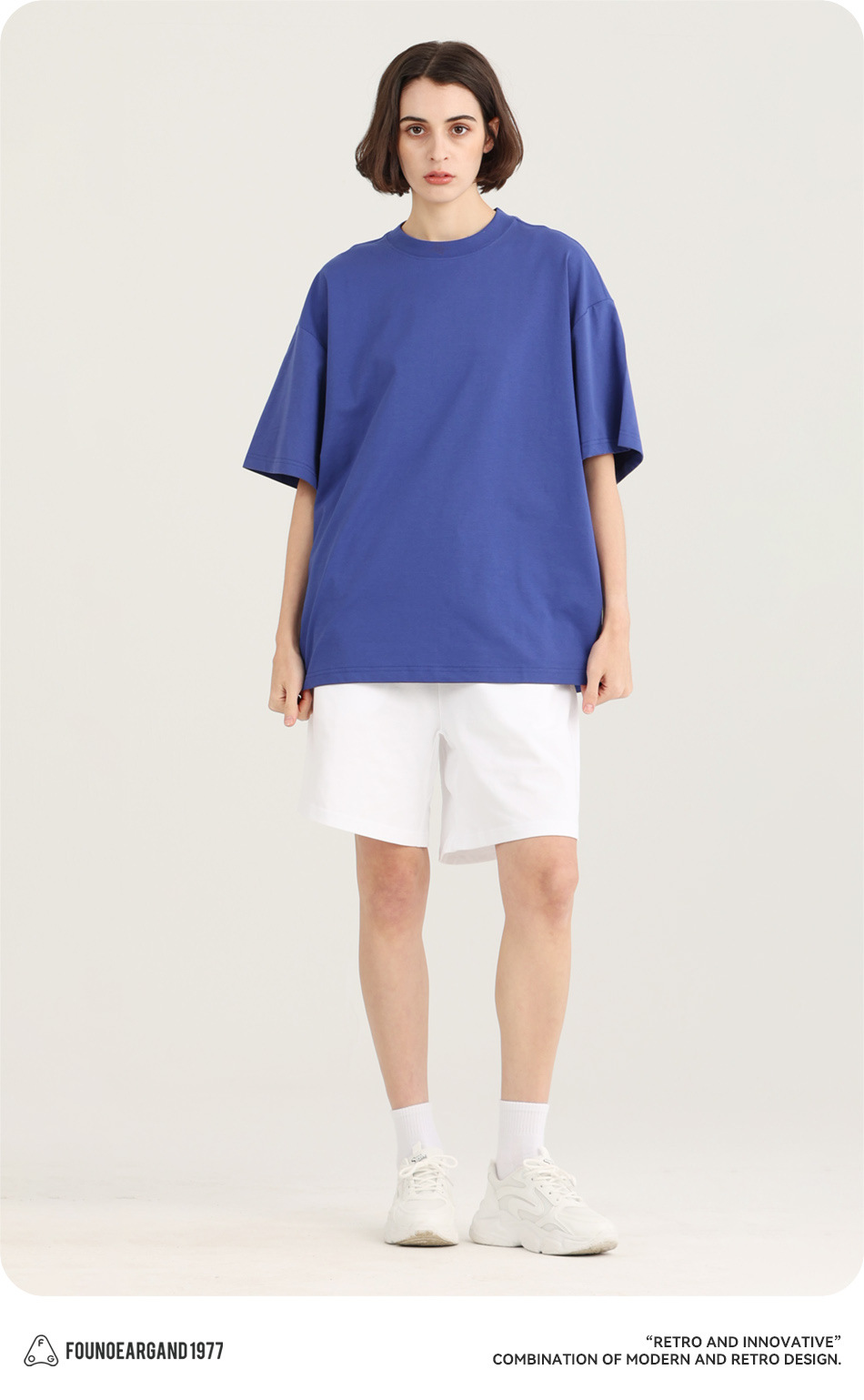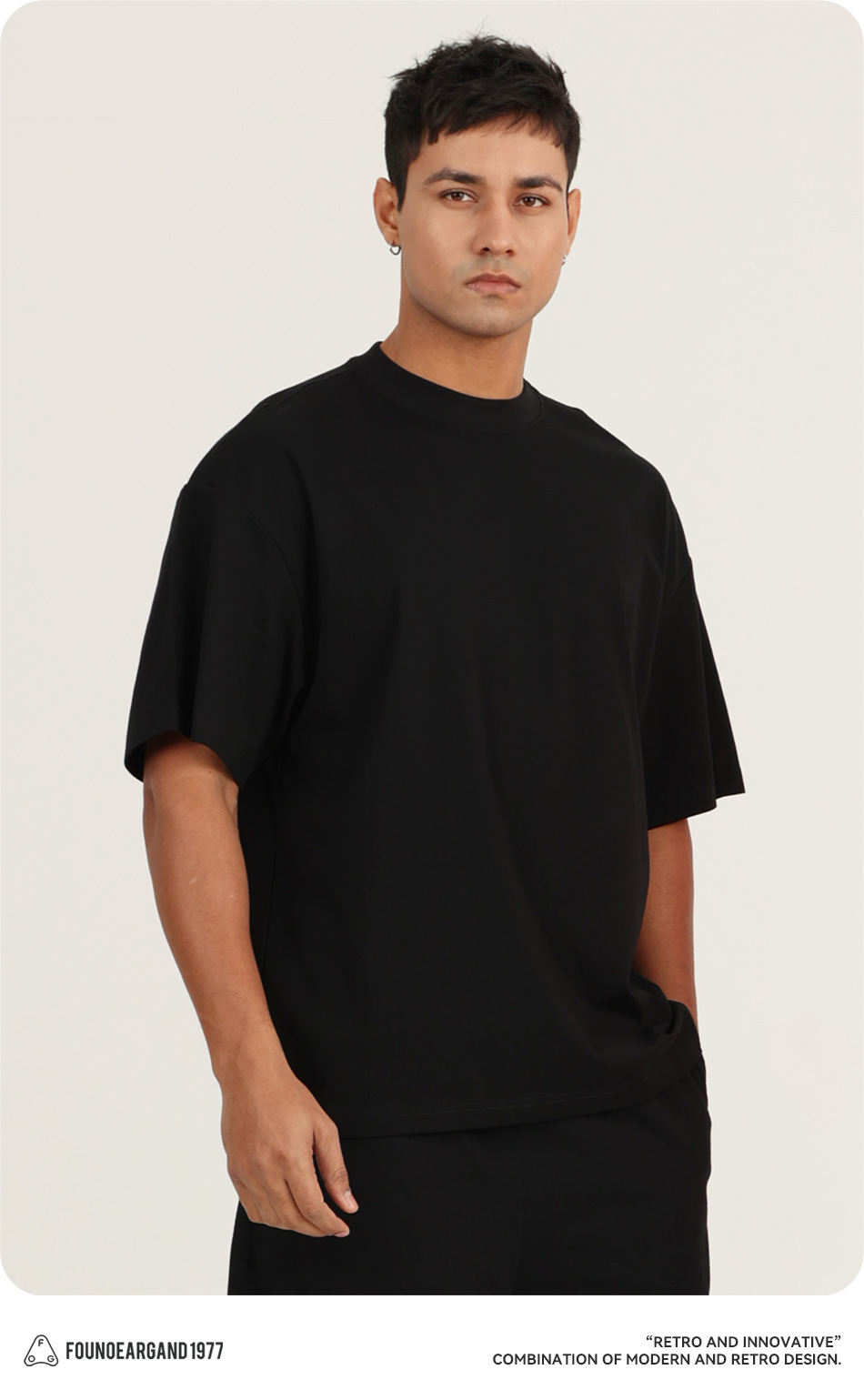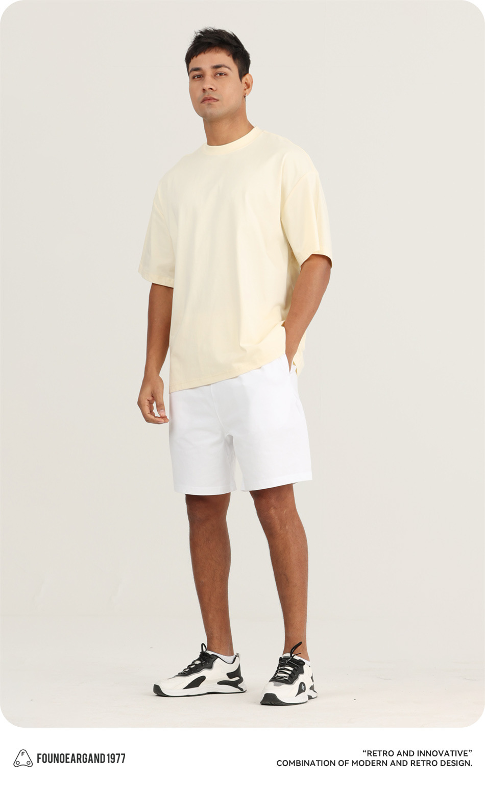 FOG 남성복 솔로나 시원한 속건성 작은 네크라인 루즈핏 트렌디한 드롭숄더 솔리드 컬러 반팔 티셔츠 남녀공용 아메리칸 레트로 스타일스토어 가기