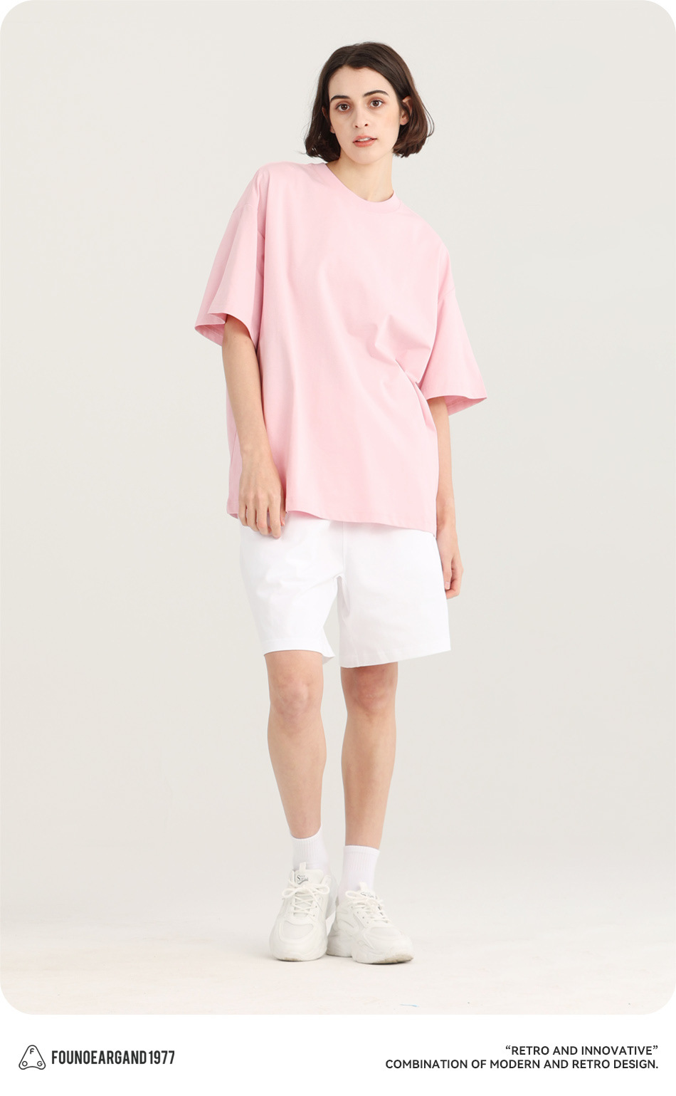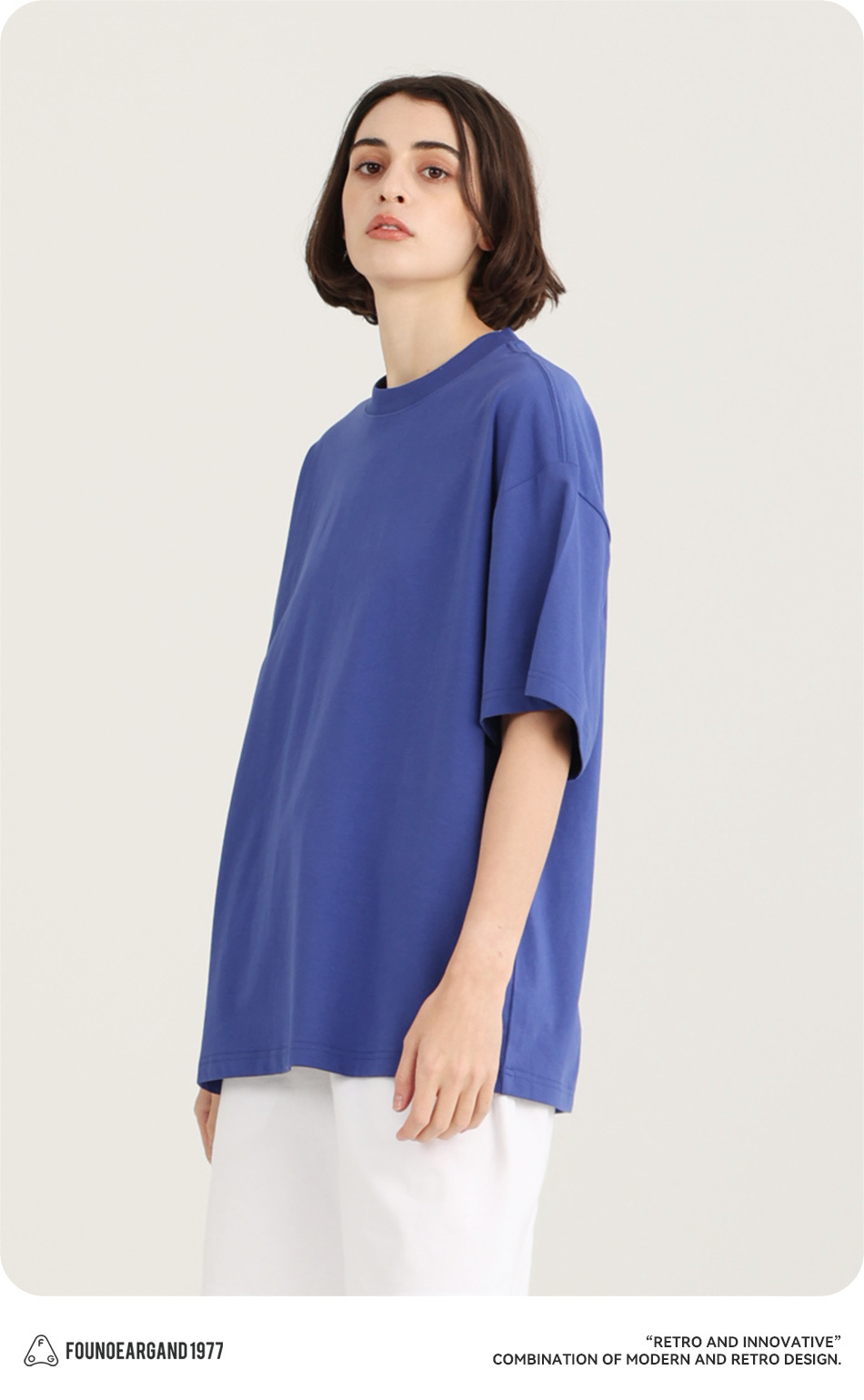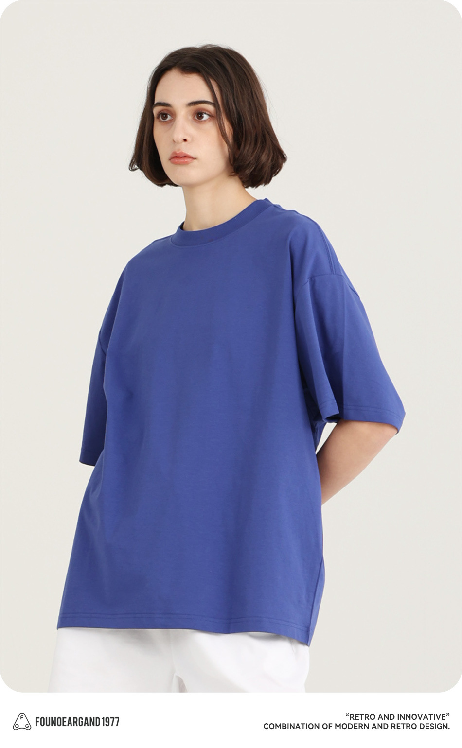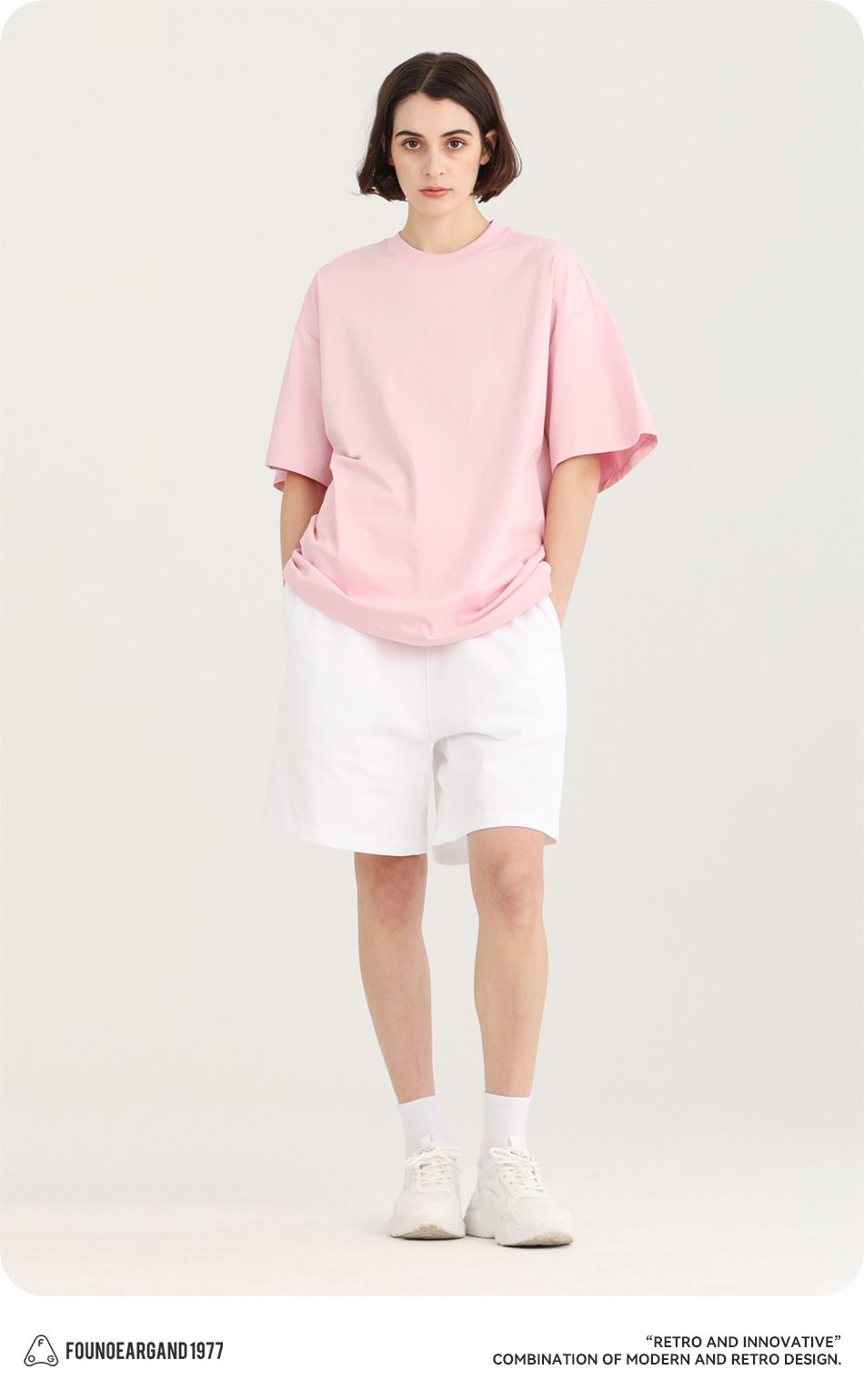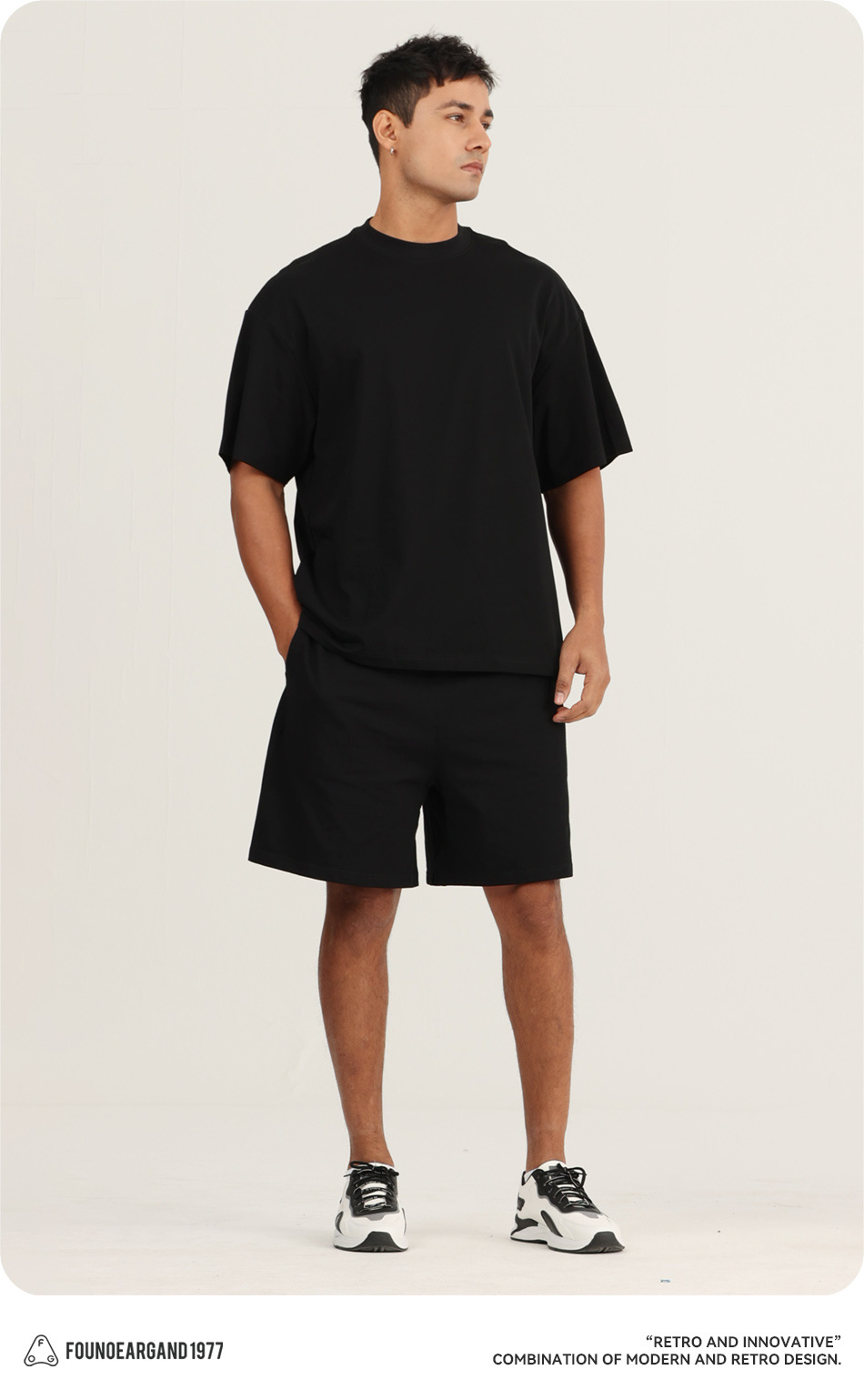 FOG 남성복 솔로나 시원한 속건성 작은 네크라인 루즈핏 트렌디한 드롭숄더 솔리드 컬러 반팔 티셔츠 남녀공용 아메리칸 레트로 스타일스토어 가기