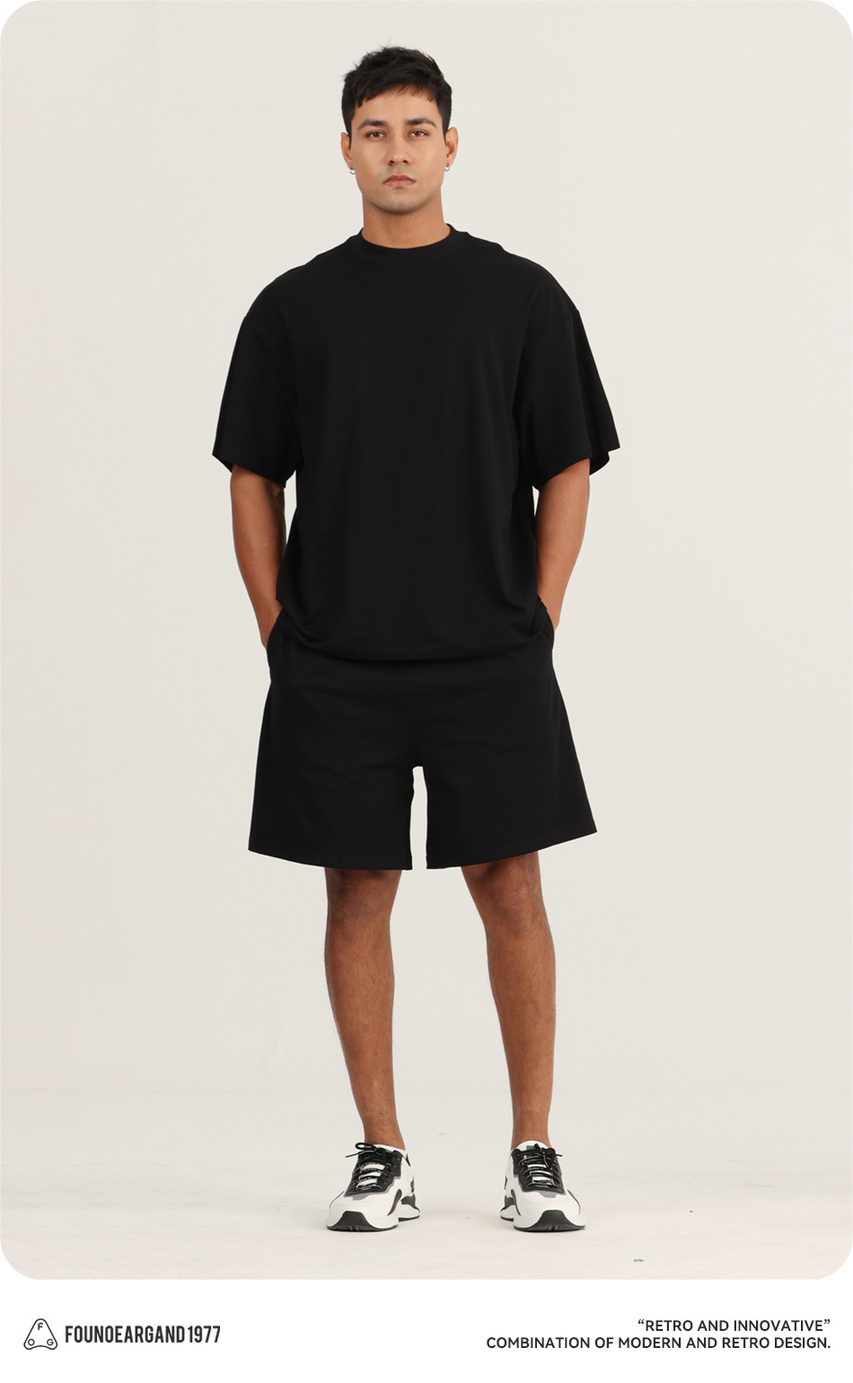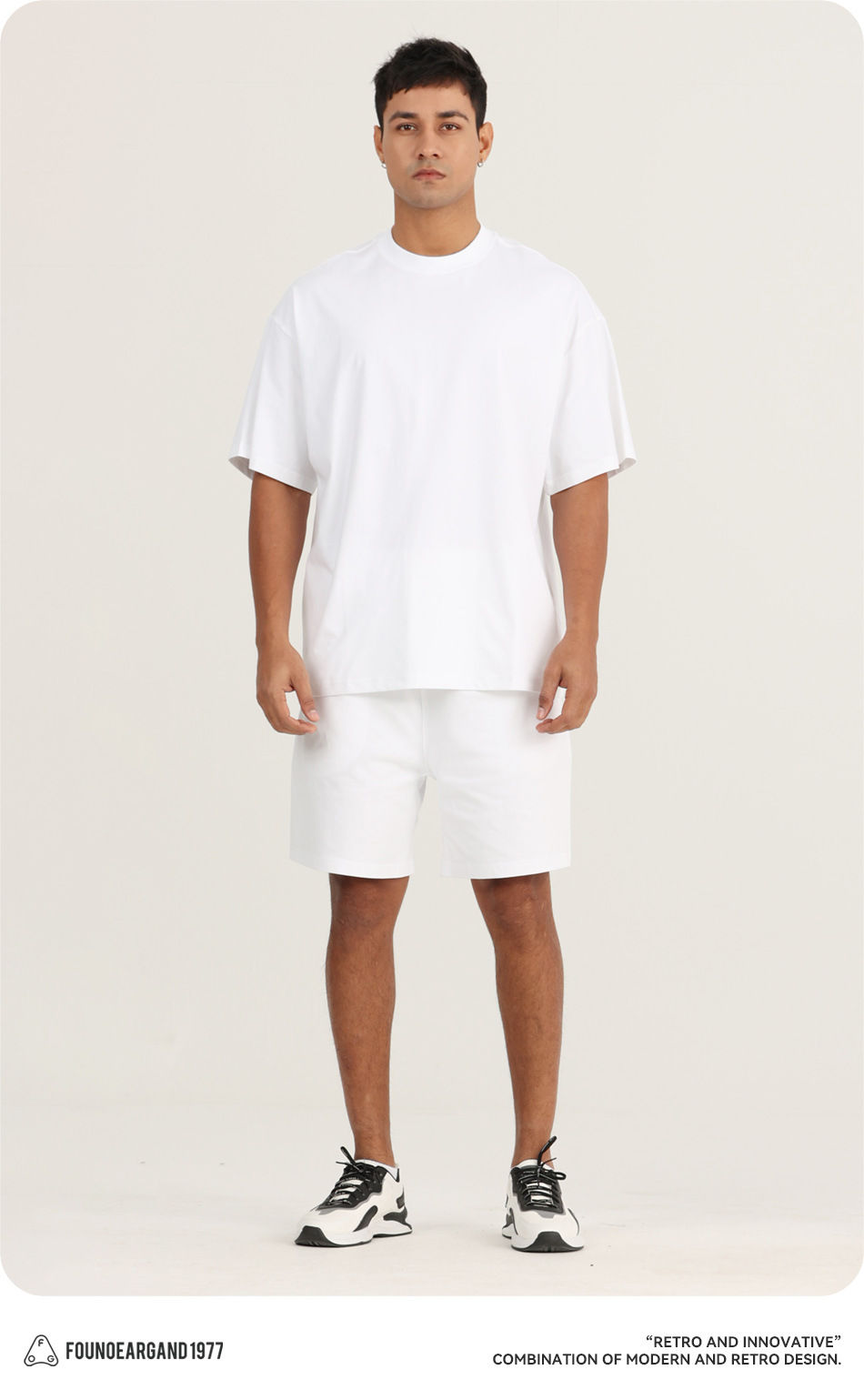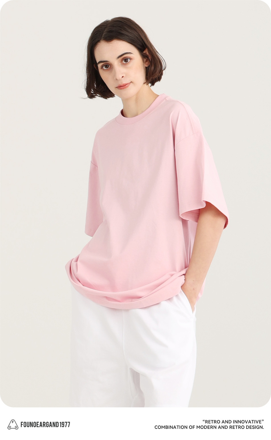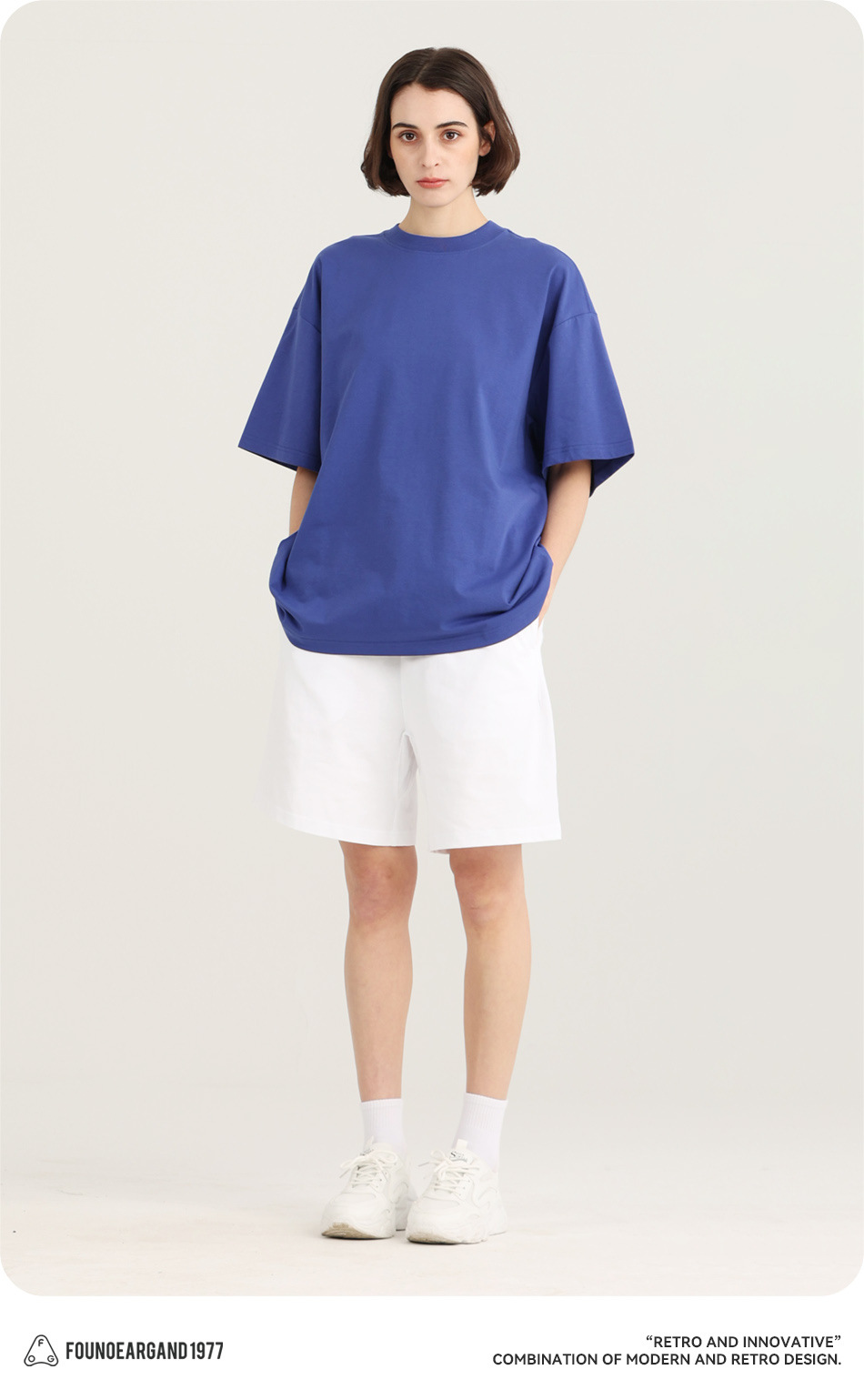 FOG 남성복 솔로나 시원한 속건성 작은 네크라인 루즈핏 트렌디한 드롭숄더 솔리드 컬러 반팔 티셔츠 남녀공용 아메리칸 레트로 스타일스토어 가기