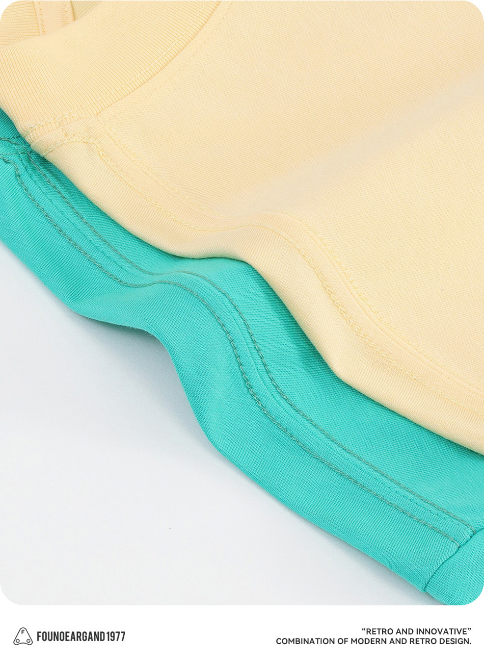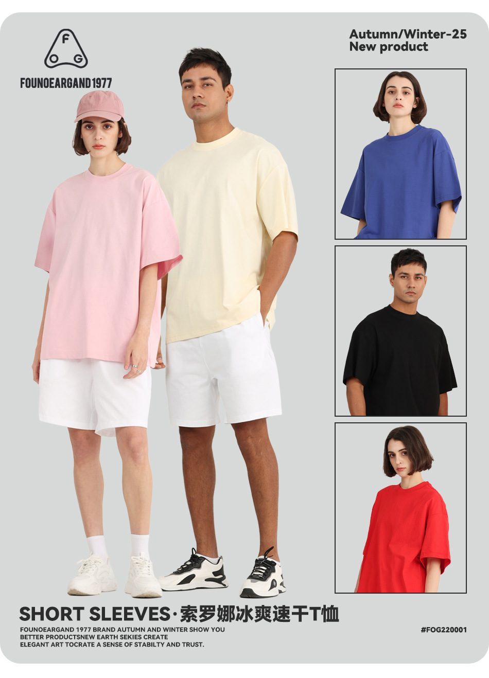 FOG 남성복 솔로나 시원한 속건성 작은 네크라인 루즈핏 트렌디한 드롭숄더 솔리드 컬러 반팔 티셔츠 남녀공용 아메리칸 레트로 스타일