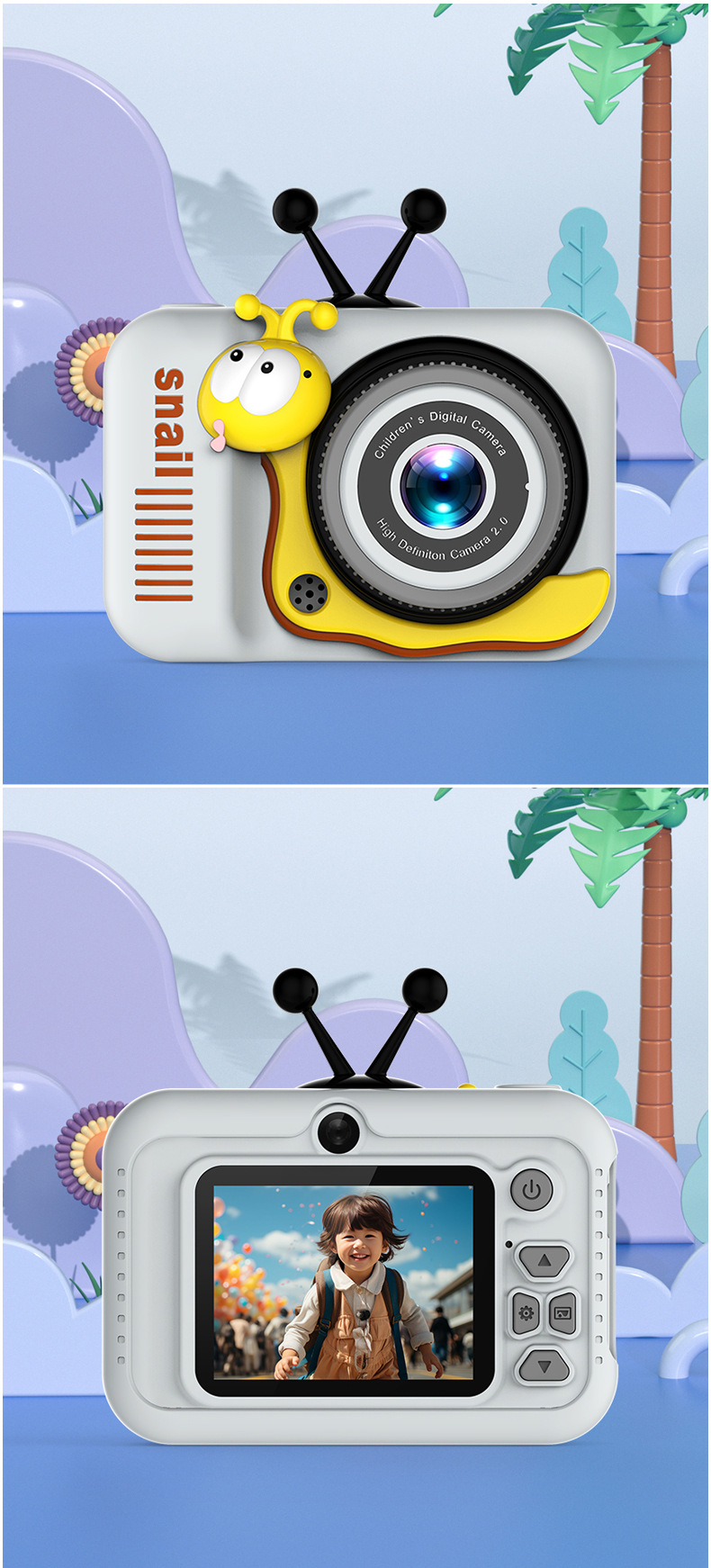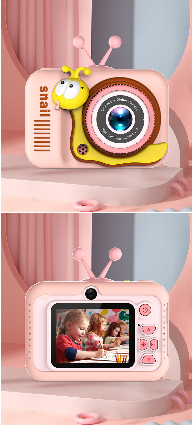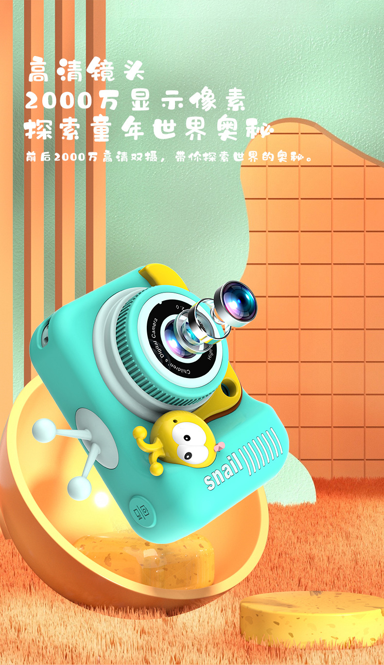새로운 국경 달팽이 만화 카메라 휴대용 TPC 마이크로 단일 HD 카메라 학생과 어린이를위한 사진 및 비디오 촬영 가능