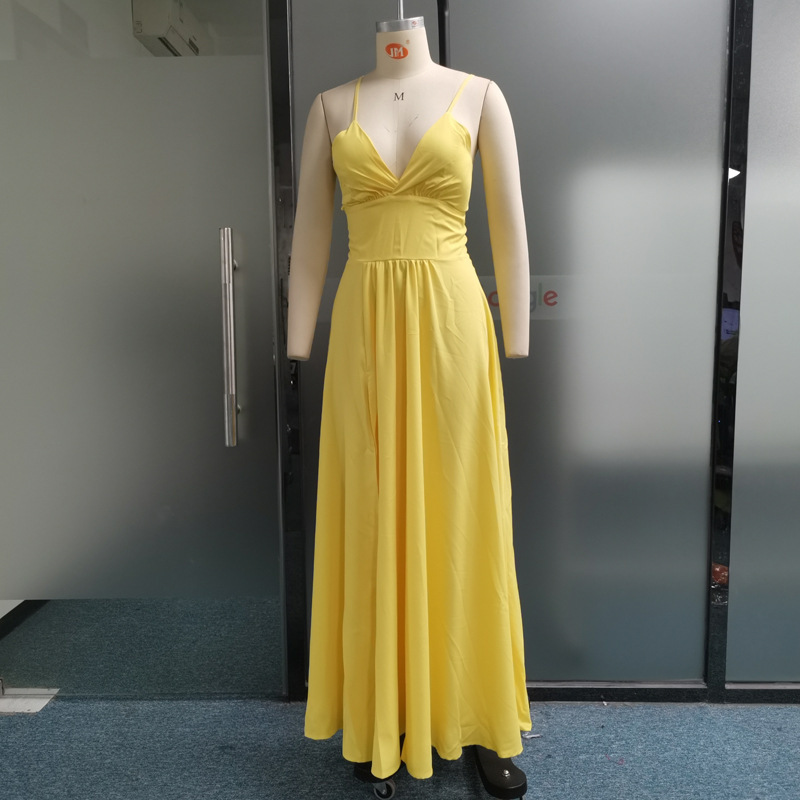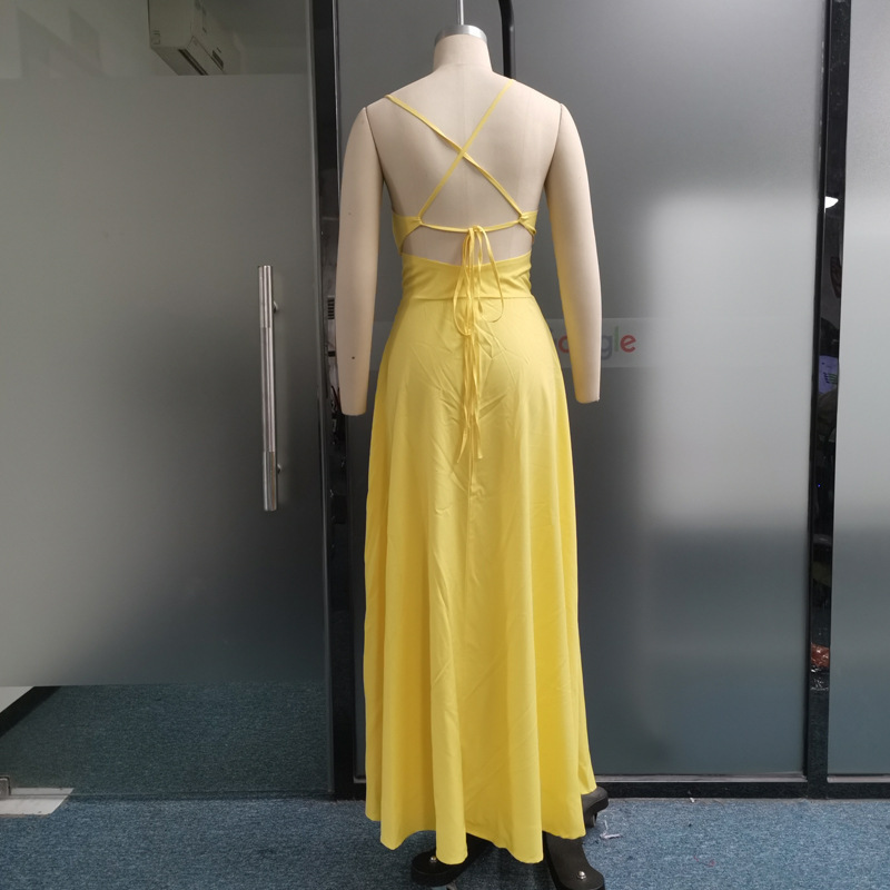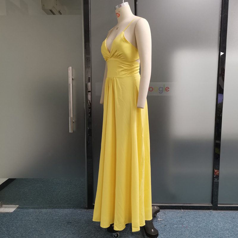국경 간 아마존 패션 대외 무역 여성 2023 여름 슬링 V-넥 리키 백 레이스 롱 원피스