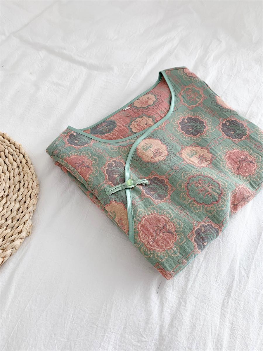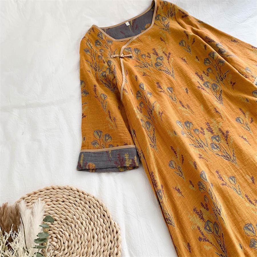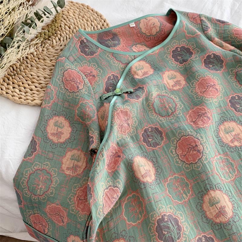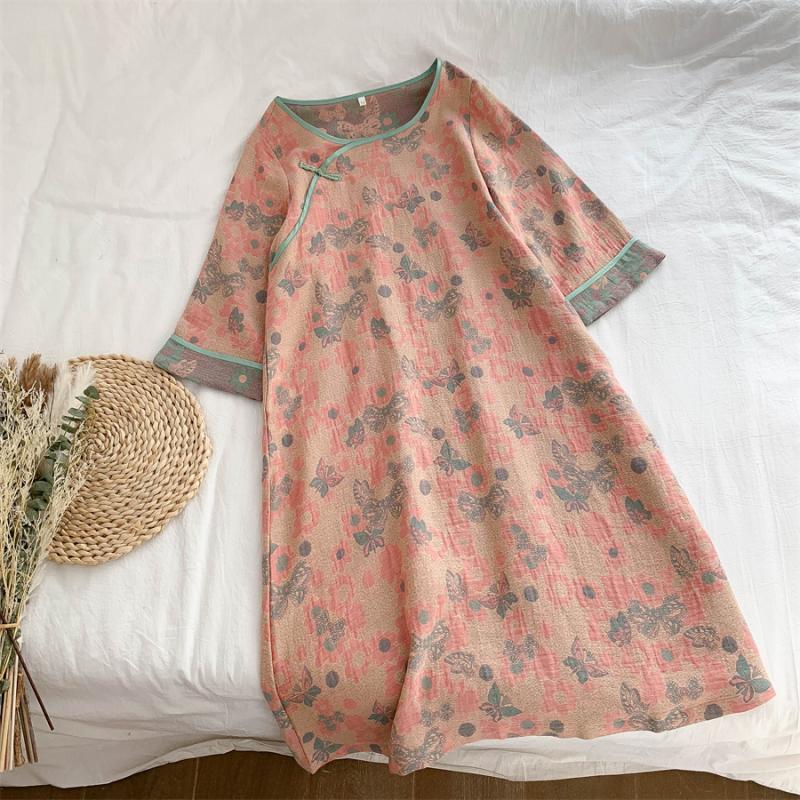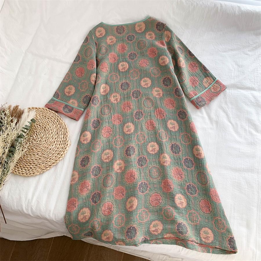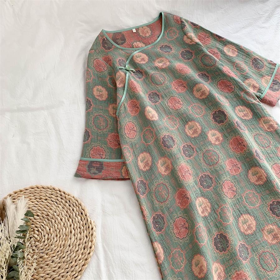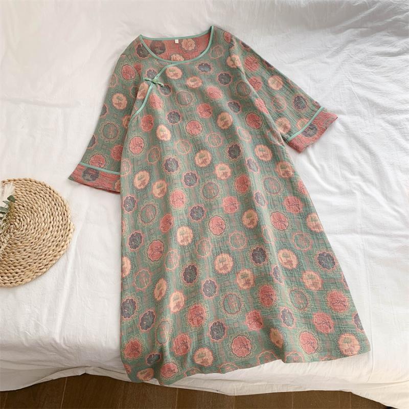 통통한 진 플러스 사이즈 우아한 중국 빈티지 청삼 나이트 드레스 여성 한푸 중국 스타일 잠옷 여성의 봄과 가을 패션