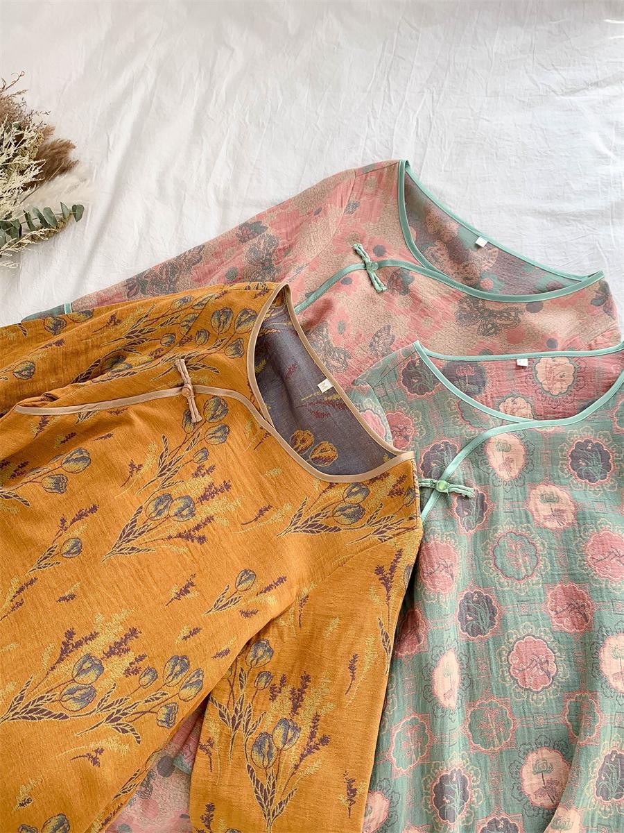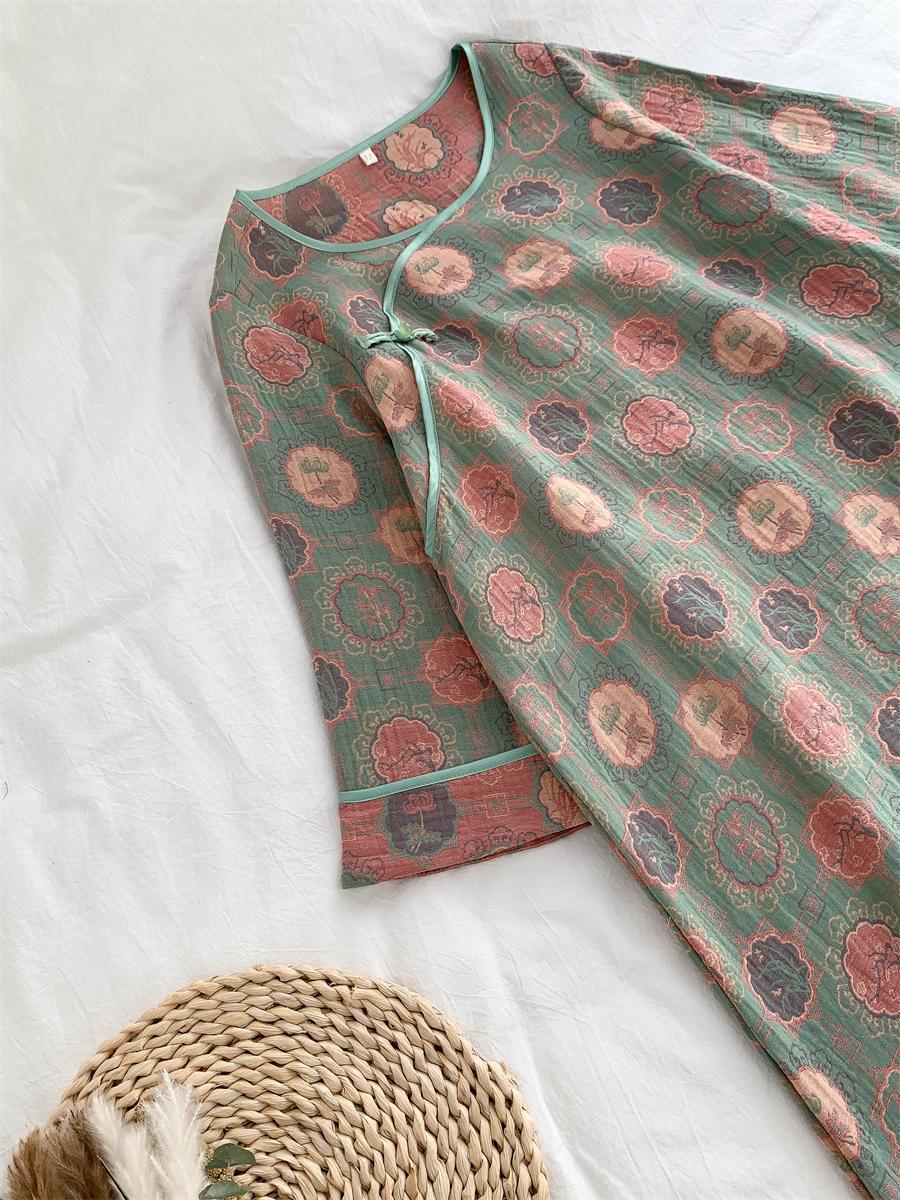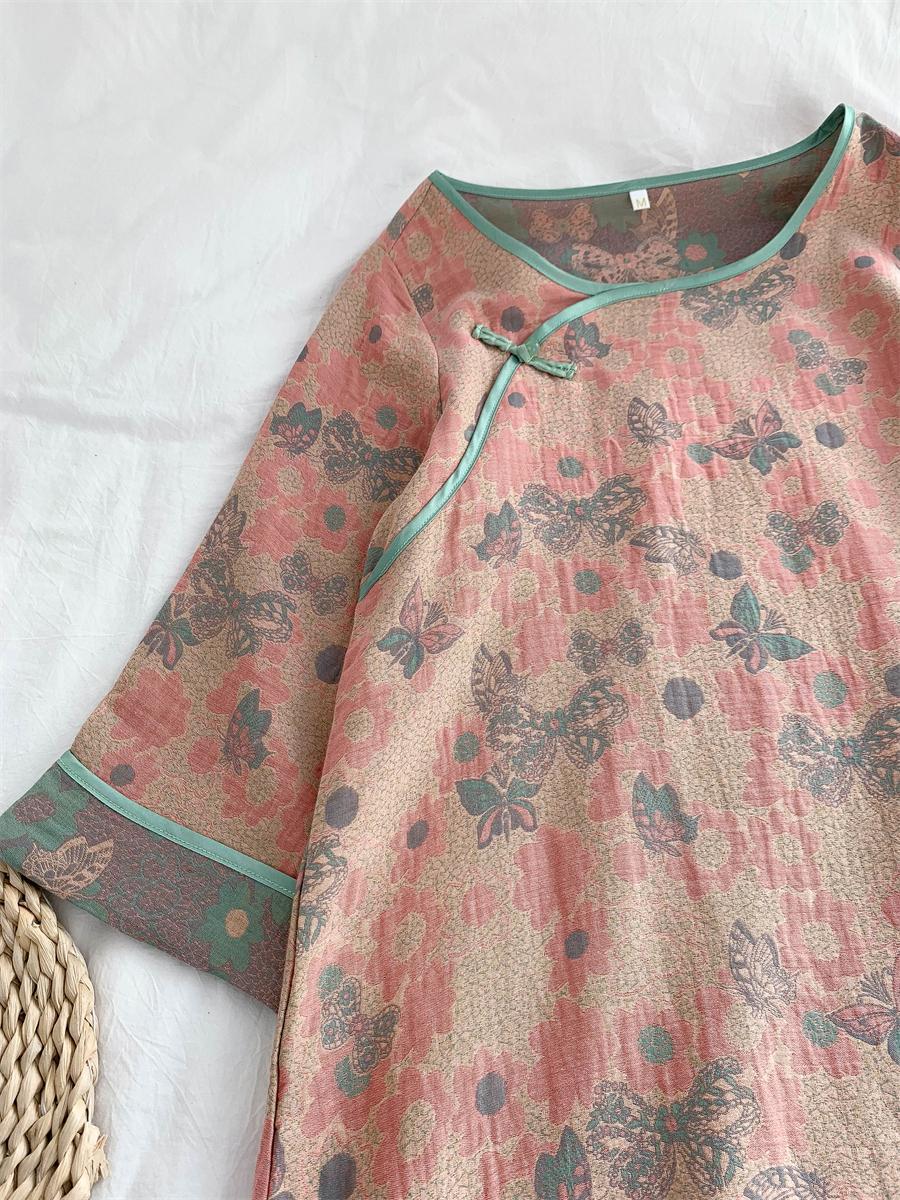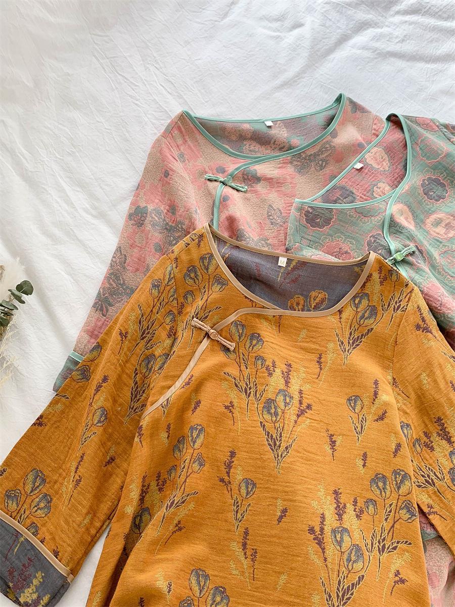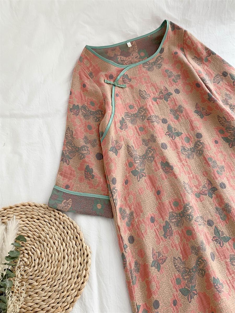 통통한 진 플러스 사이즈 우아한 중국 빈티지 청삼 나이트 드레스 여성 한푸 중국 스타일 잠옷 여성의 봄과 가을 패션