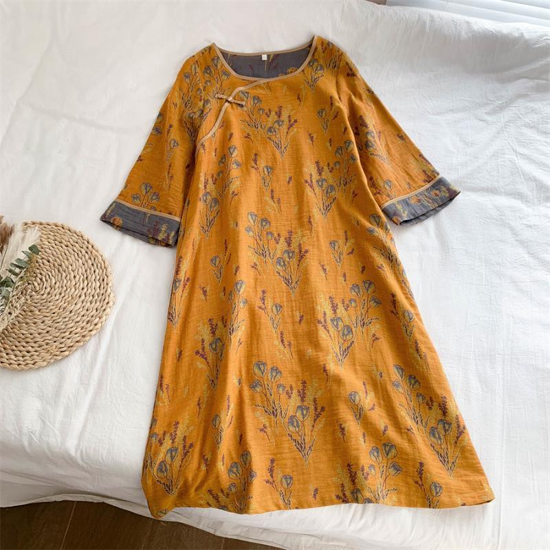 통통한 진 플러스 사이즈 우아한 중국 빈티지 청삼 나이트 드레스 여성 한푸 중국 스타일 잠옷 여성의 봄과 가을 패션스토어 가기