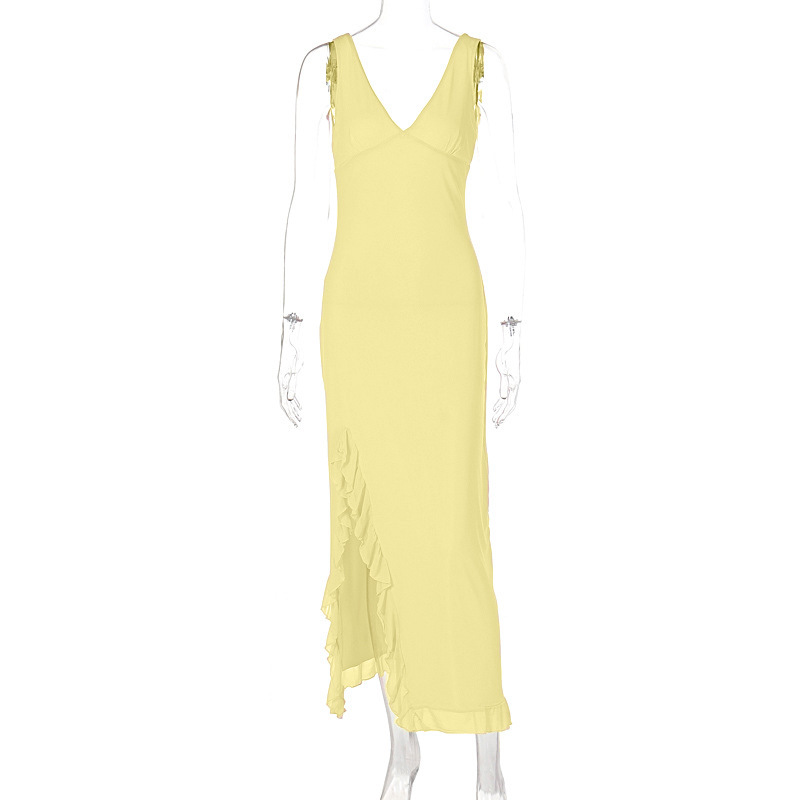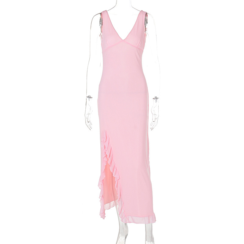 유럽과 미국의 국경 간 여성 의류 2024 여름 새로운 패션 v 넥 민소매 귀 슬릿 슬림 드레스 도매스토어 가기