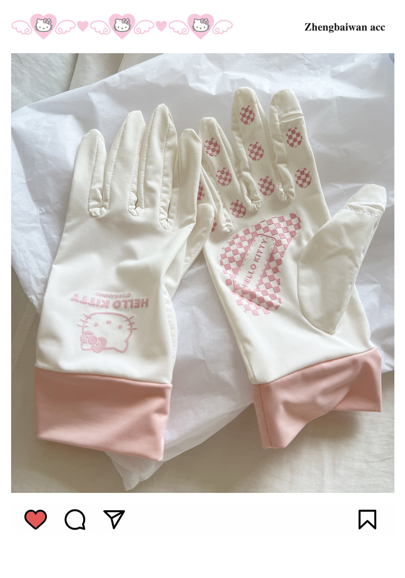 여름 선 스크린 아이스 실크 미끄럼 방지 헬로 키티 장갑 여성의 귀여운 풀 핑거 얇은 UV 보호 운전스토어 가기