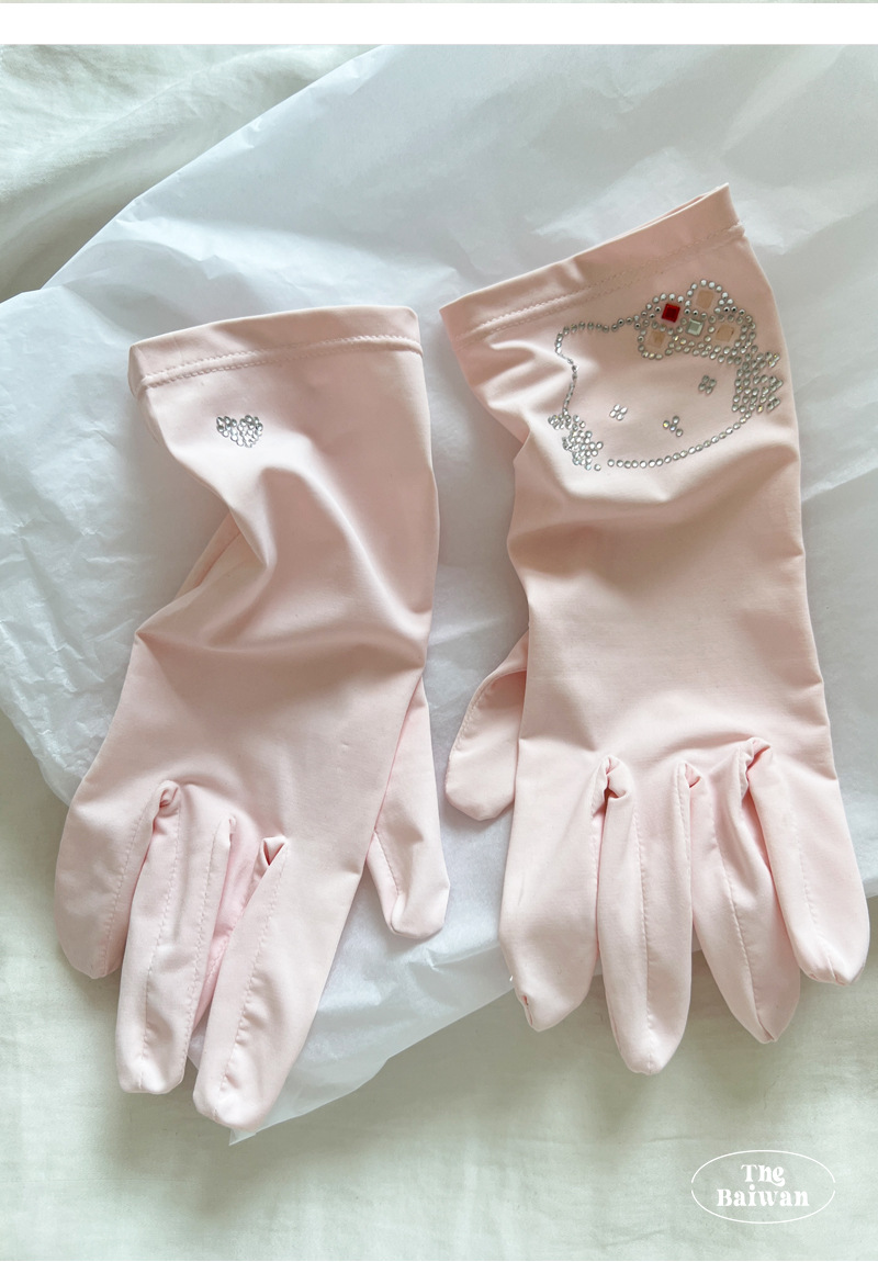 여름 선 스크린 아이스 실크 미끄럼 방지 헬로 키티 장갑 여성의 귀여운 풀 핑거 얇은 UV 보호 운전