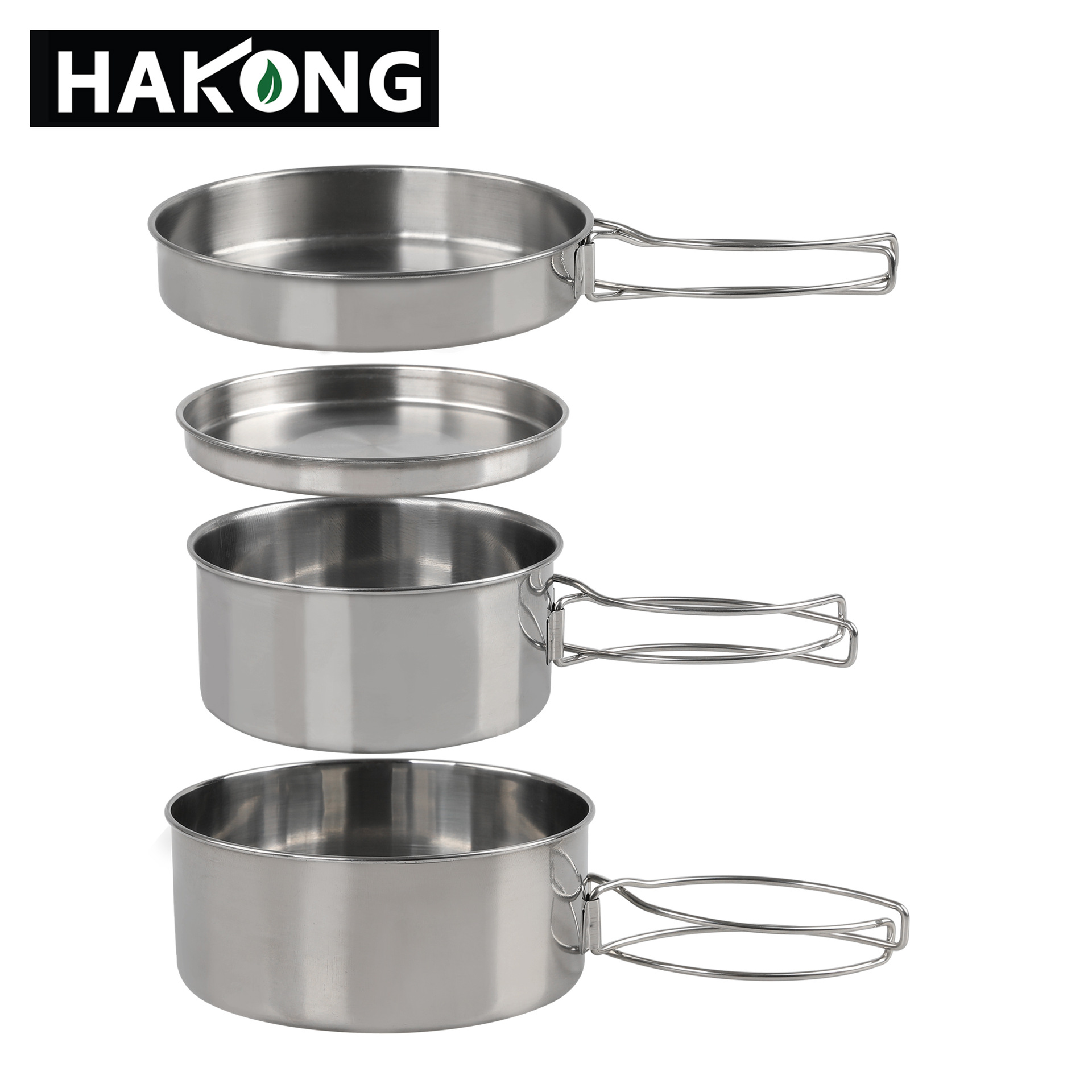 야외 캠핑 세트 냄비 4 피스 세트 포트 휴대용 스테인레스 스틸 냄비 세트 등산 피크닉 2 ~ 3 인 세트 보울 컵 및 소스스토어 가기