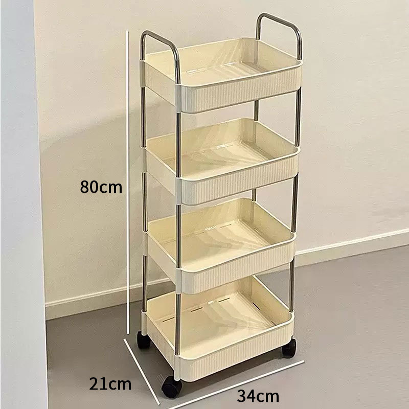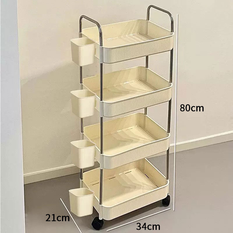 • 4단(소형) 크림 화이트 트롤리 + 걸이바구니 4개
