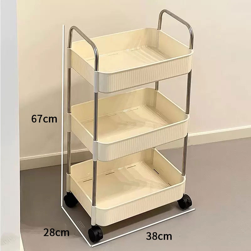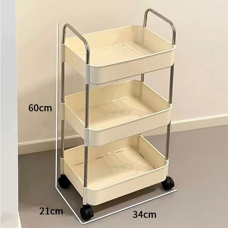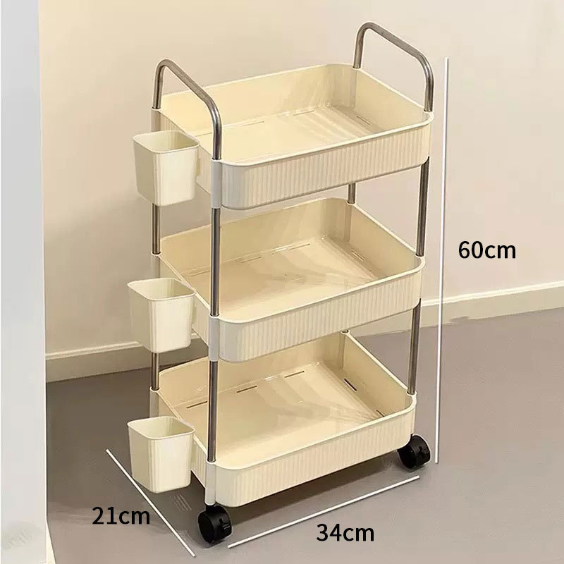 • 3단(소형) 크림 화이트 트롤리 + 걸이바구니 3개