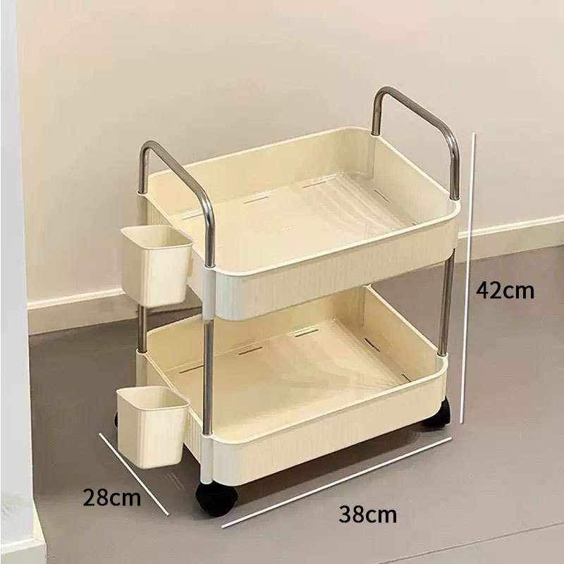 • 2단(소형) 크림 화이트 트롤리 + 걸이바구니 2개