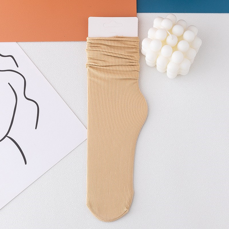 벨벳 양말 소녀 여름 새로운 스택 양말 얇은 얼음 얼음 양말 솔리드 컬러 미디엄 아이스 실크 양말