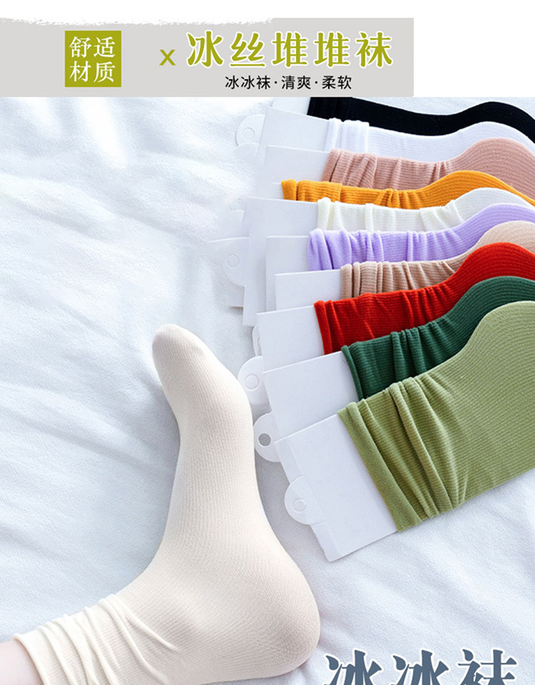 벨벳 양말 소녀 여름 새로운 스택 양말 얇은 얼음 얼음 양말 솔리드 컬러 미디엄 아이스 실크 양말스토어 가기