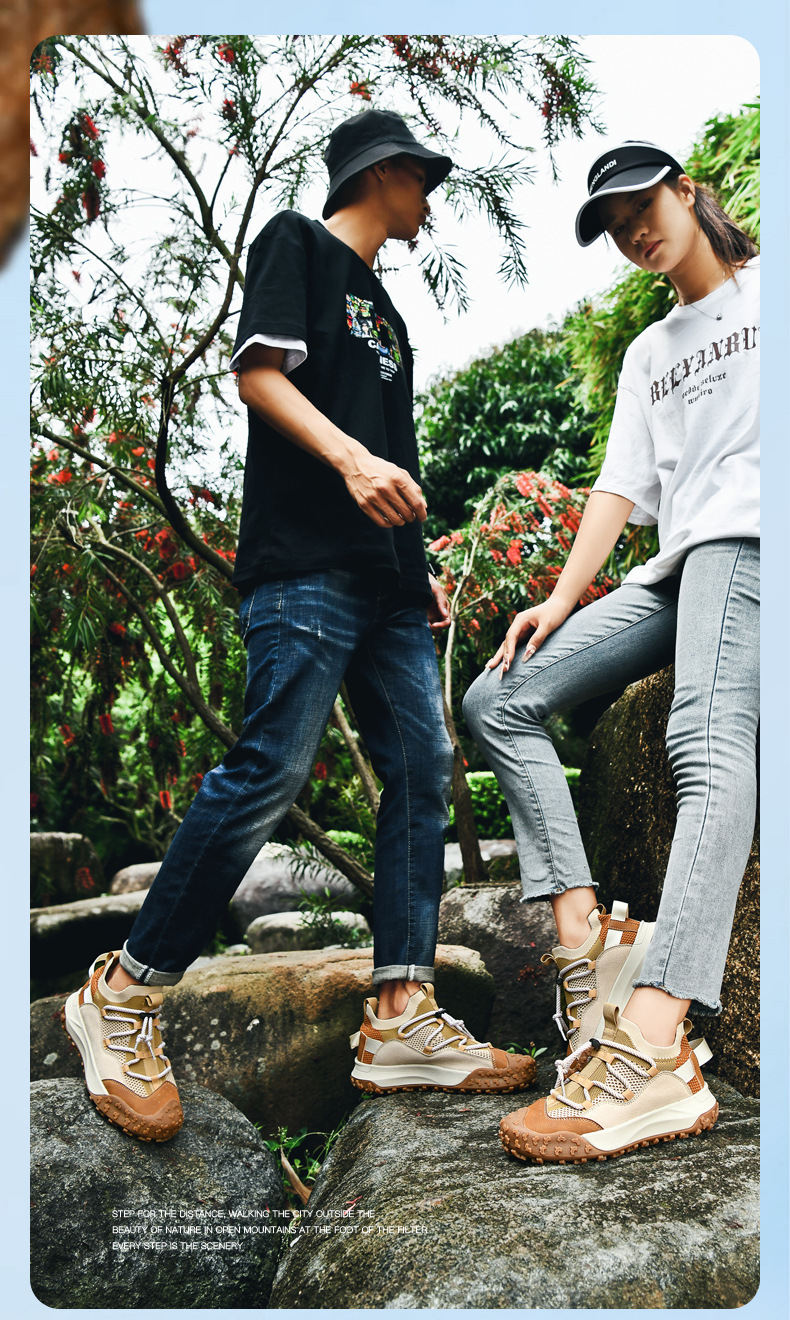 야외 하이킹 및 등산 신발 여성 두꺼운 밑창 운동화 2025 봄 여름 새로운 슬립 온 남성 신발 경량 커플 스타일스토어 가기