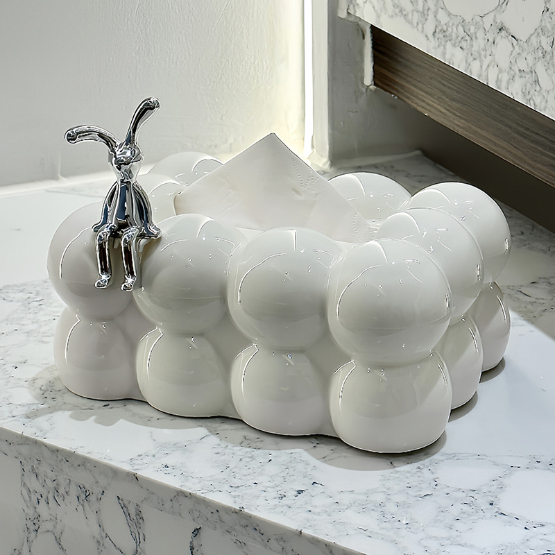 새로운 도자기 인터넷 인기있는 귀여운 티슈 박스 거실 하이 엔드 가정용 데스크탑 커피 테이블 장식 종이 상자 보관 창조적 인 장식품