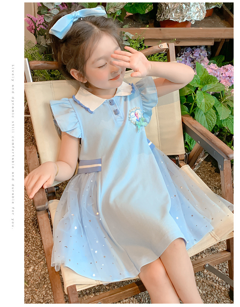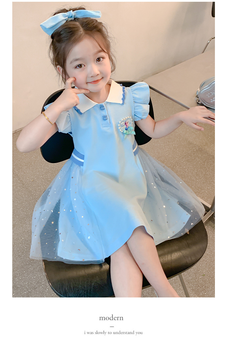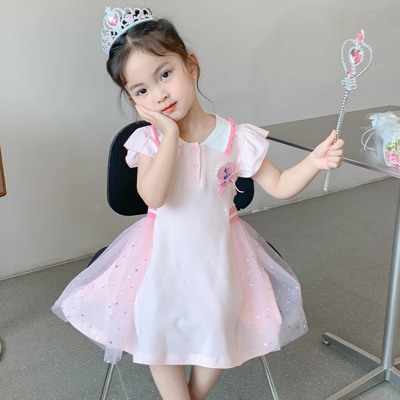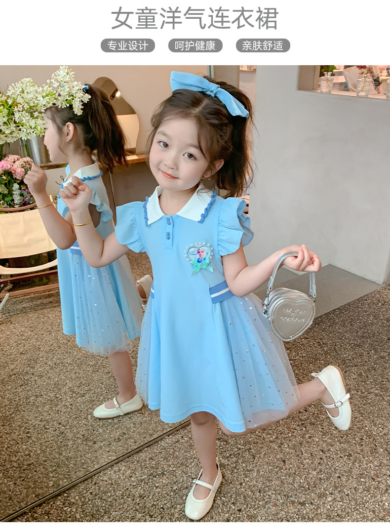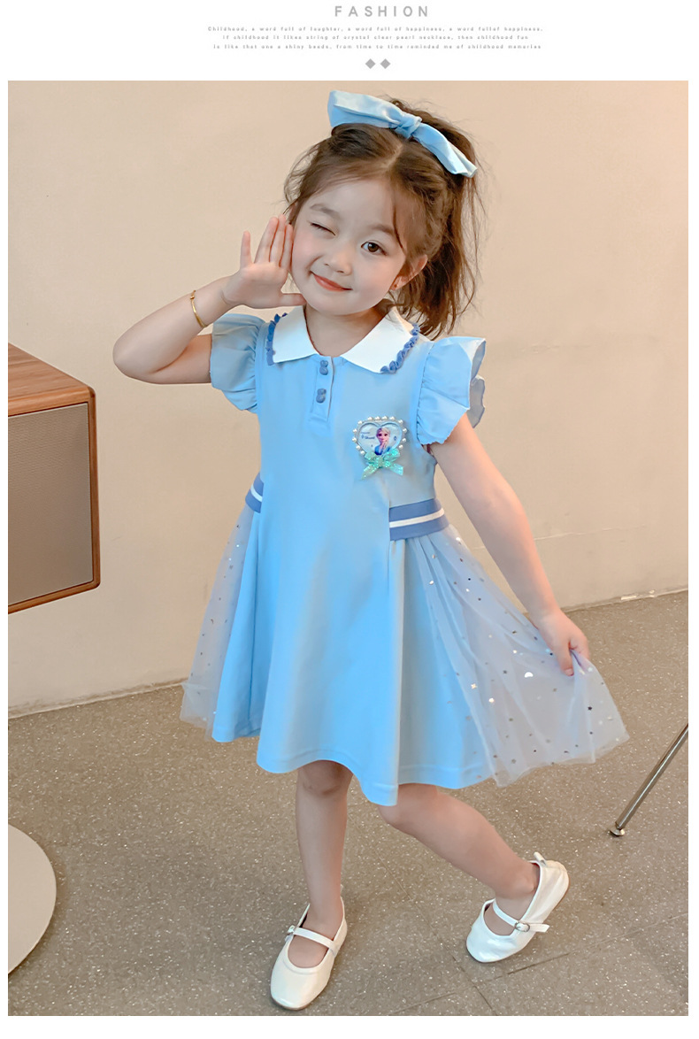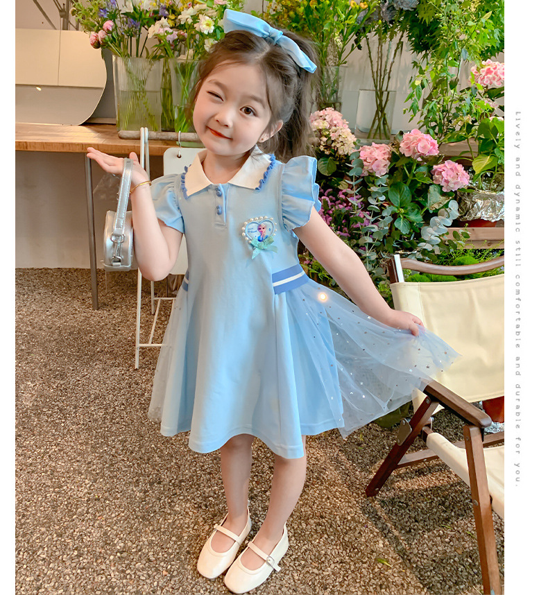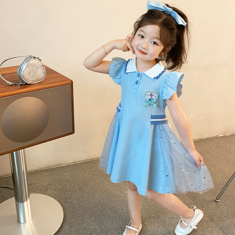 여자 엘사 공주 드레스 2025 여름 새로운 스타일 어린이 베이비 반팔 드레스 어린 소녀 폴로 스커트스토어 가기