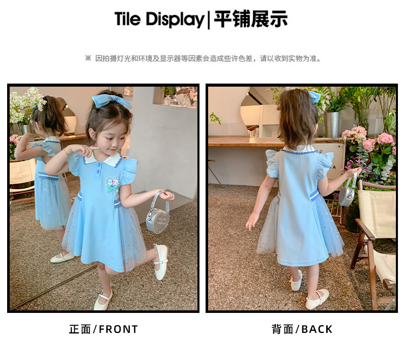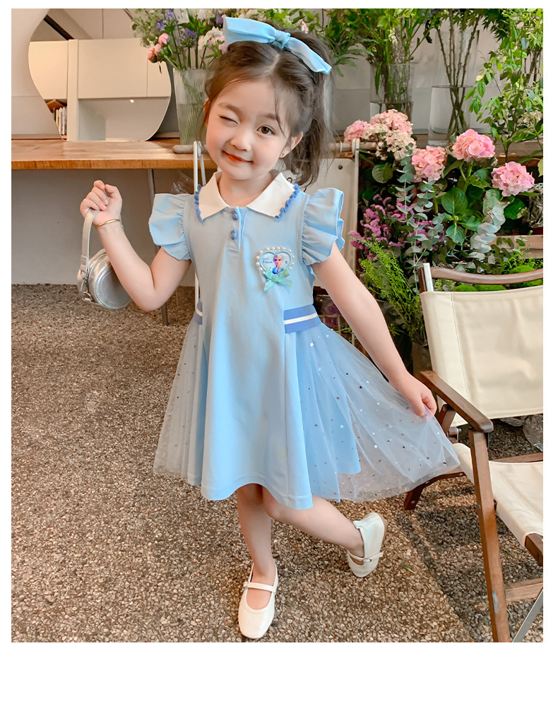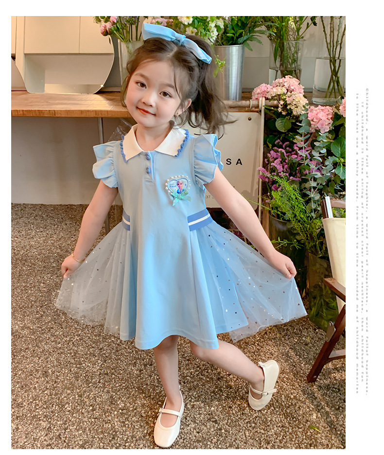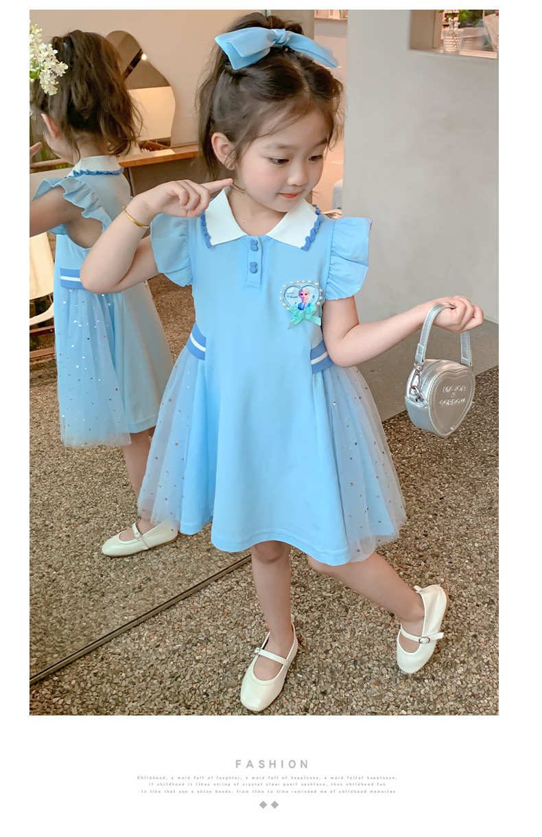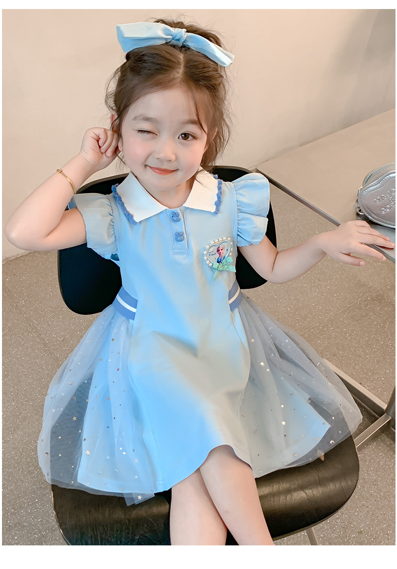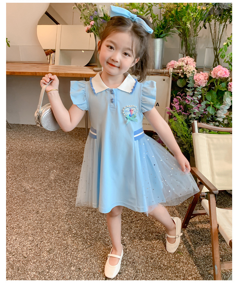 여자 엘사 공주 드레스 2025 여름 새로운 스타일 어린이 베이비 반팔 드레스 어린 소녀 폴로 스커트