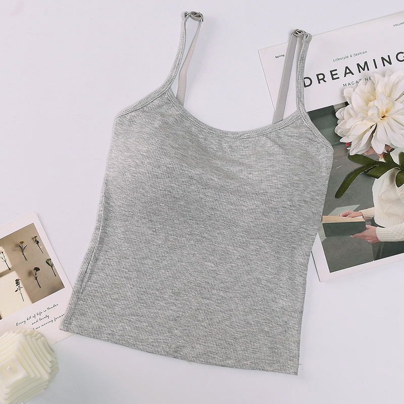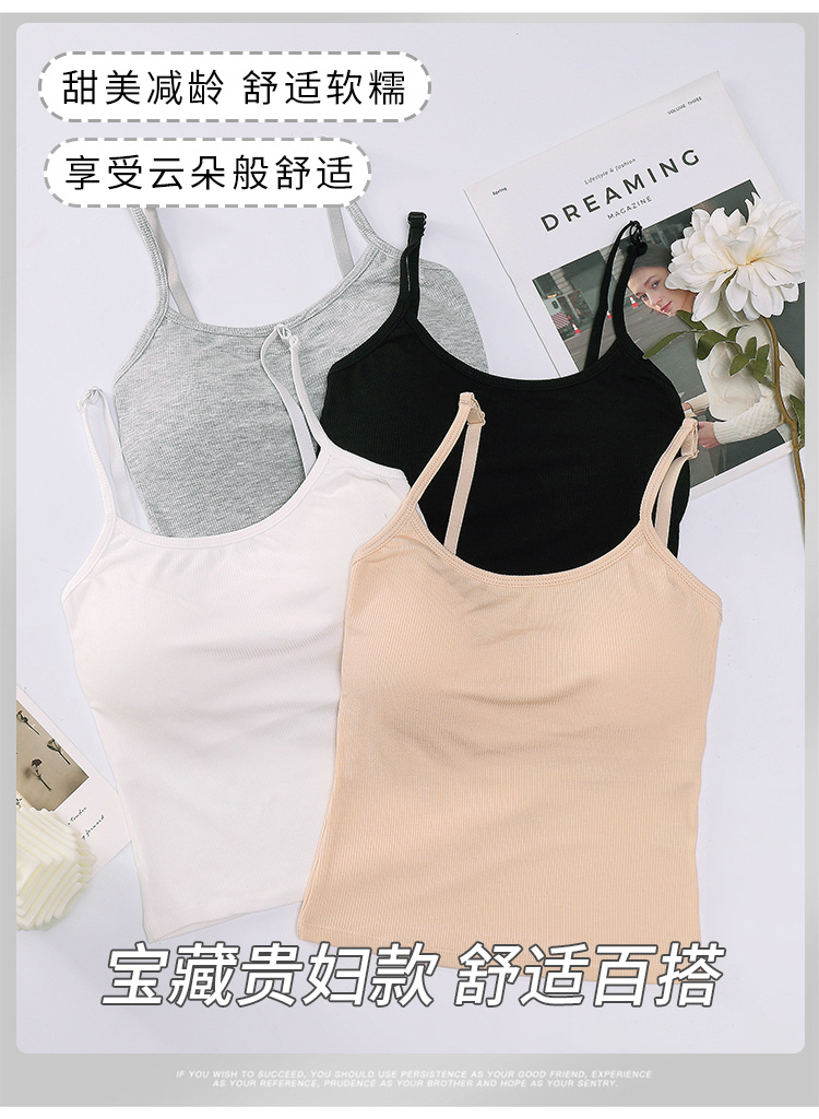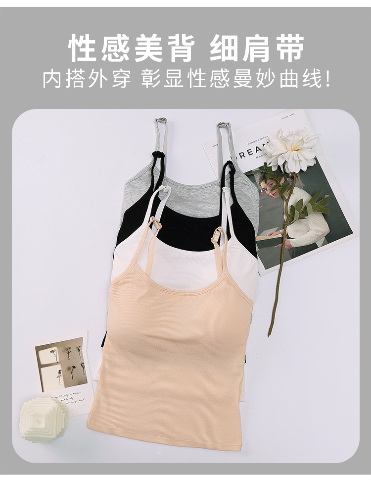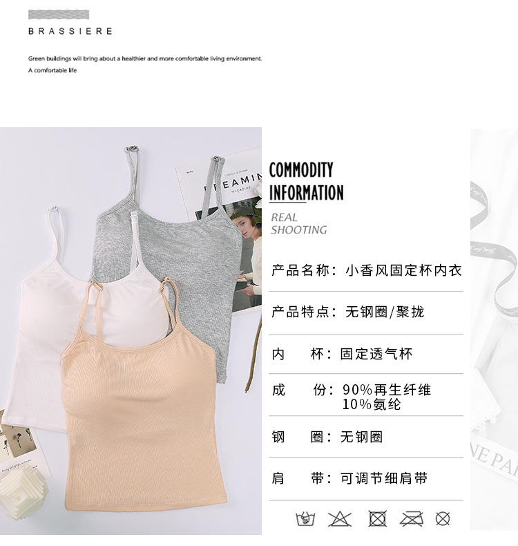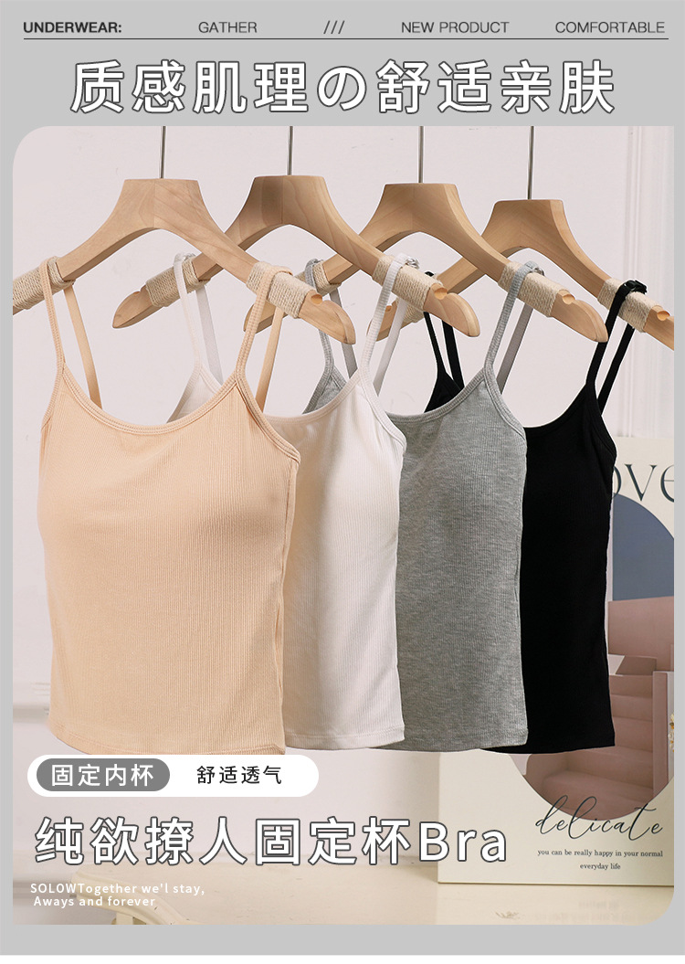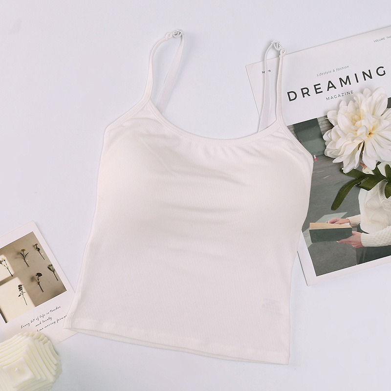 스레드 모달 소재의 가슴 패드가 내장된 일체형 캐미솔, 고정형 컵이 가슴을 감싸주는 이너웨어, 짧은 기장의 여름용 얇은 스타일스토어 가기