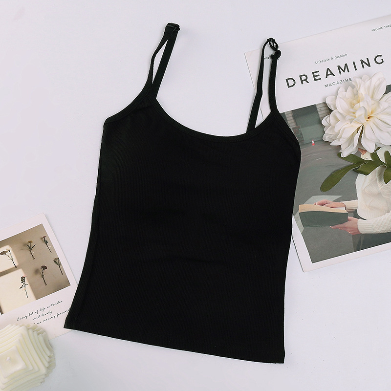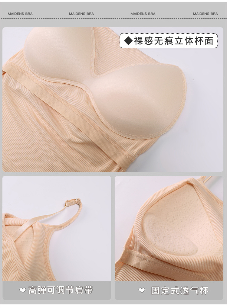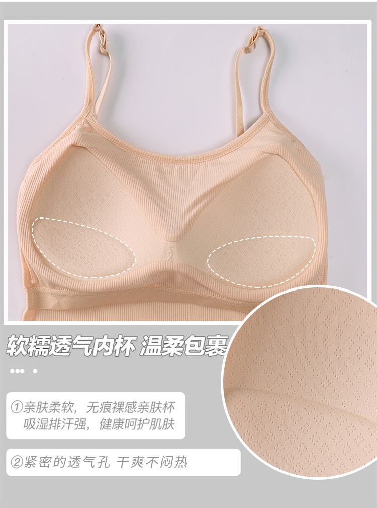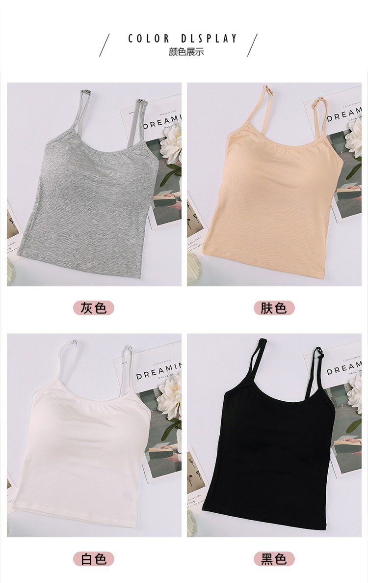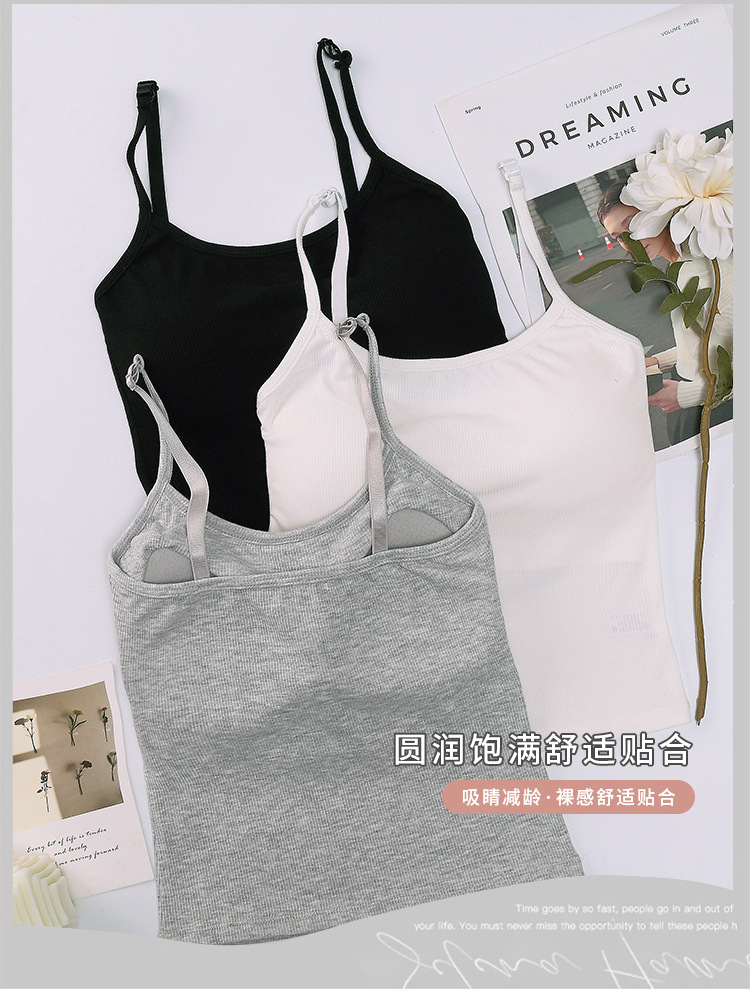 스레드 모달 소재의 가슴 패드가 내장된 일체형 캐미솔, 고정형 컵이 가슴을 감싸주는 이너웨어, 짧은 기장의 여름용 얇은 스타일스토어 가기