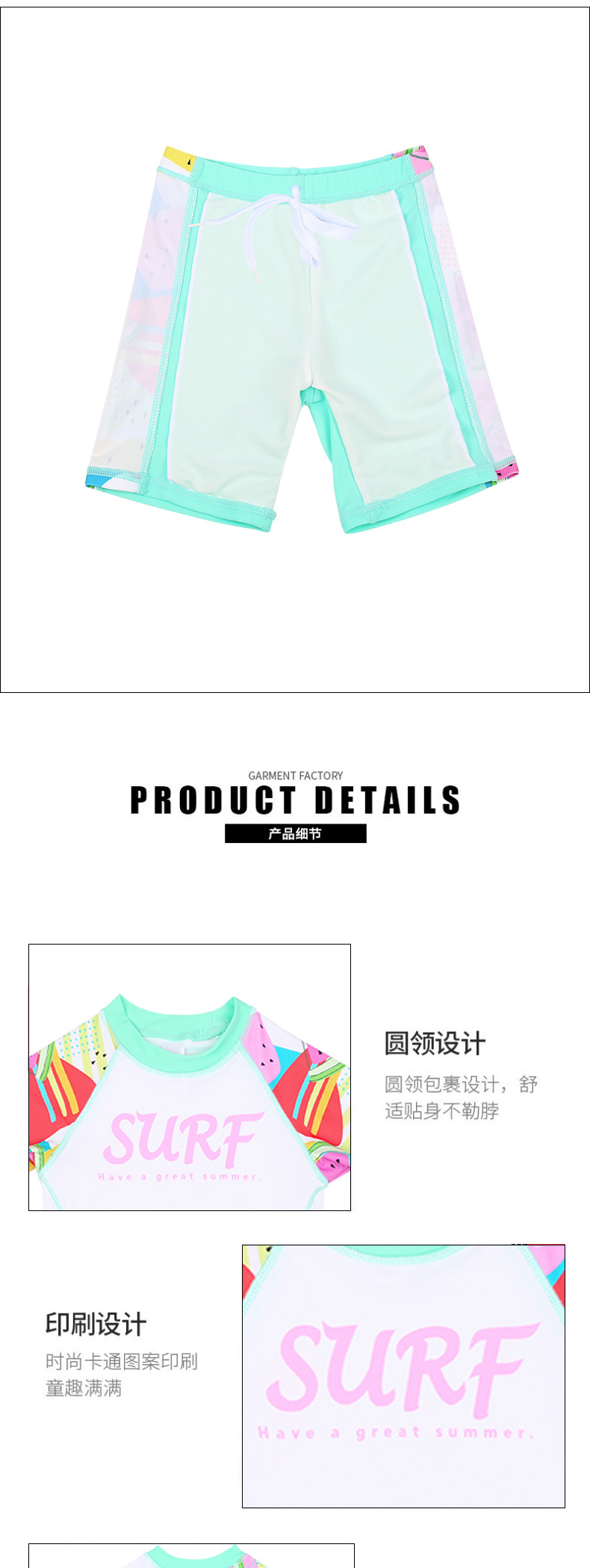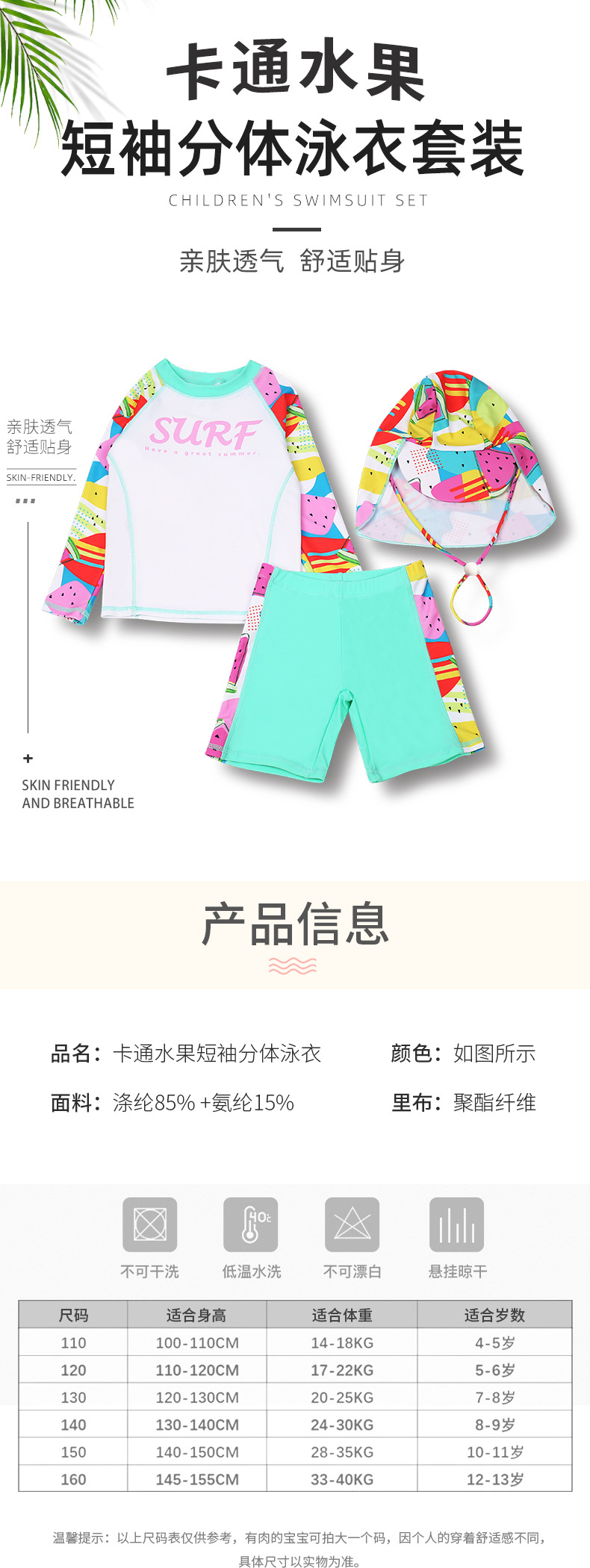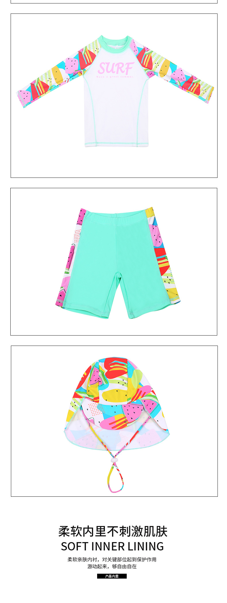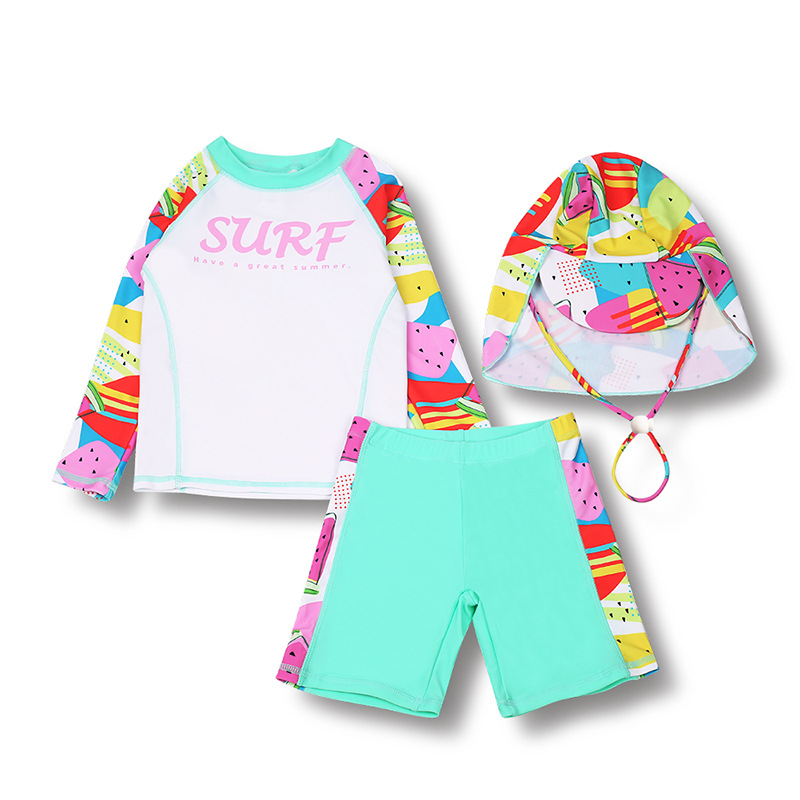 2025 스포츠 수영복 여아용 분리형 자외선 차단 3피스 온천 수영복 속건 수영복 만화 수영복 세트