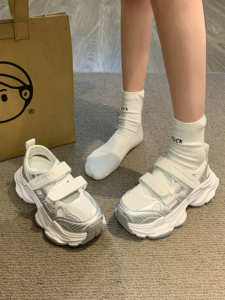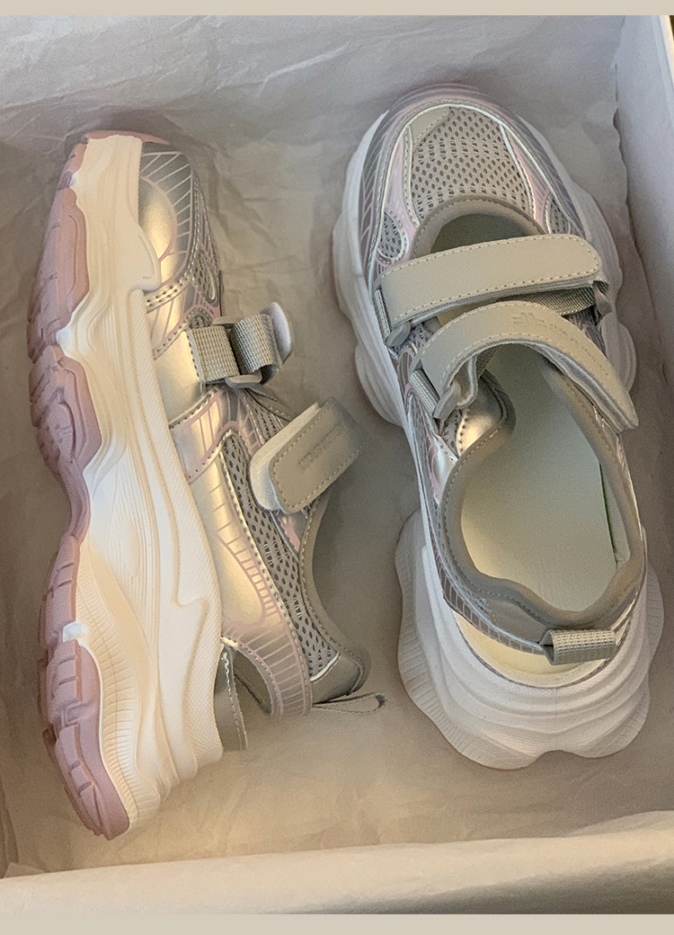 여성용 스포츠 샌들 2026 여름 신상 패셔너블하고 다재다능한 벨크로 두꺼운 밑창 트렌디 캐주얼 속이 빈 아빠 신발스토어 가기