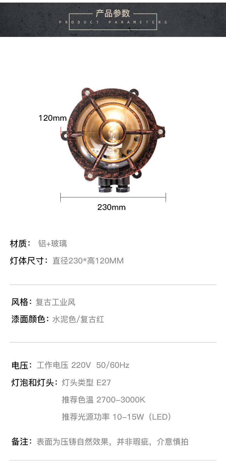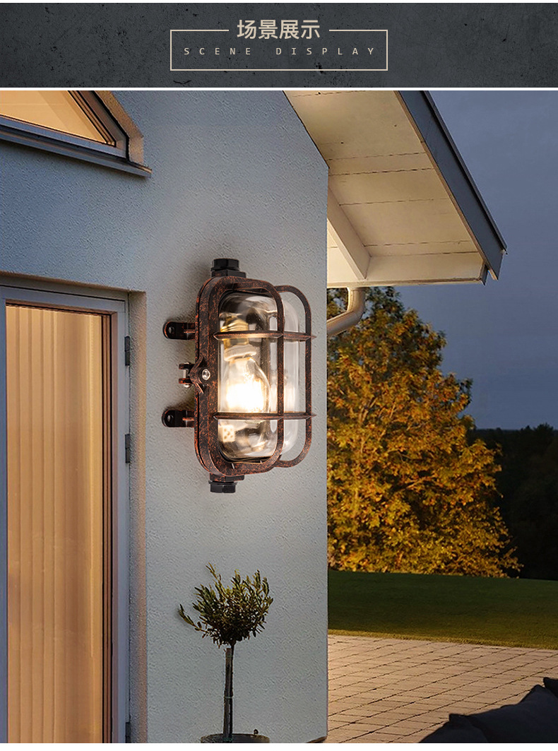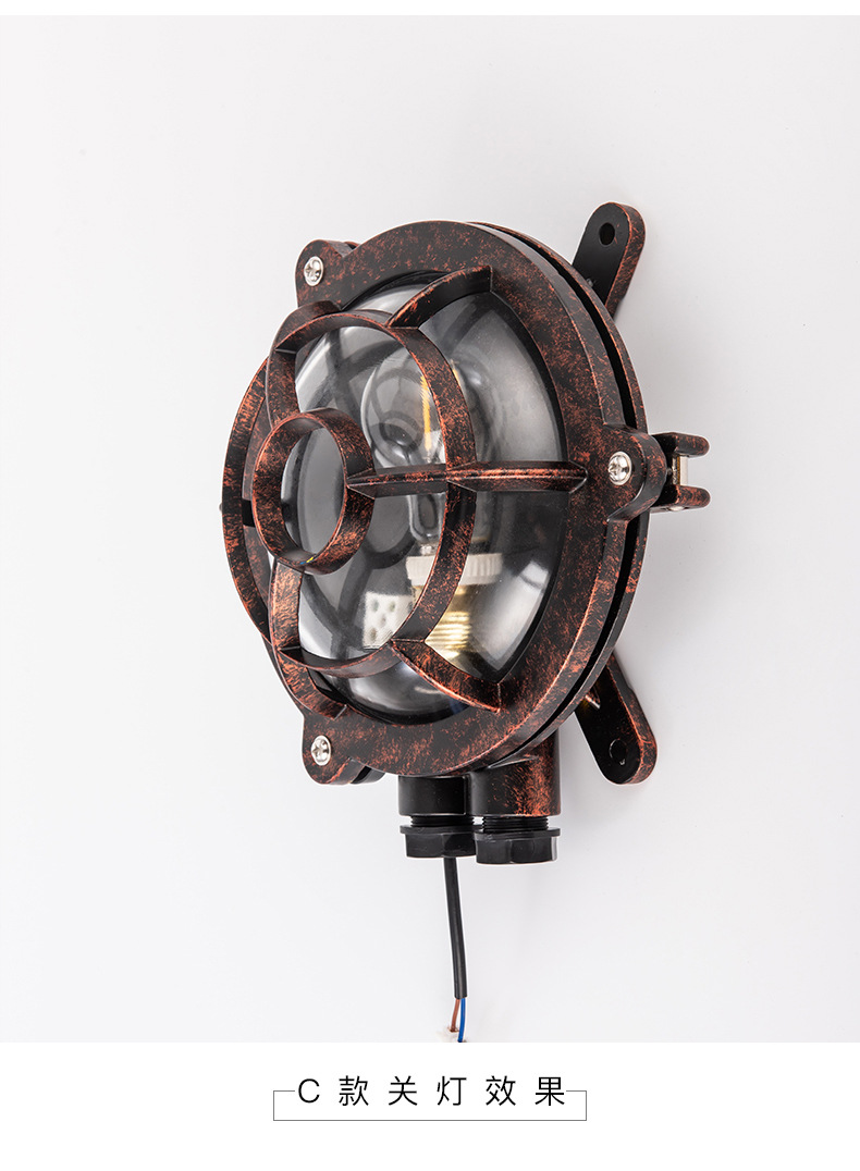미국 복고풍 산업 스타일 벽 램프 벽 램프 창조적 인 야외 통로 벽 램프 빌라 폭발 방지 매장 유리