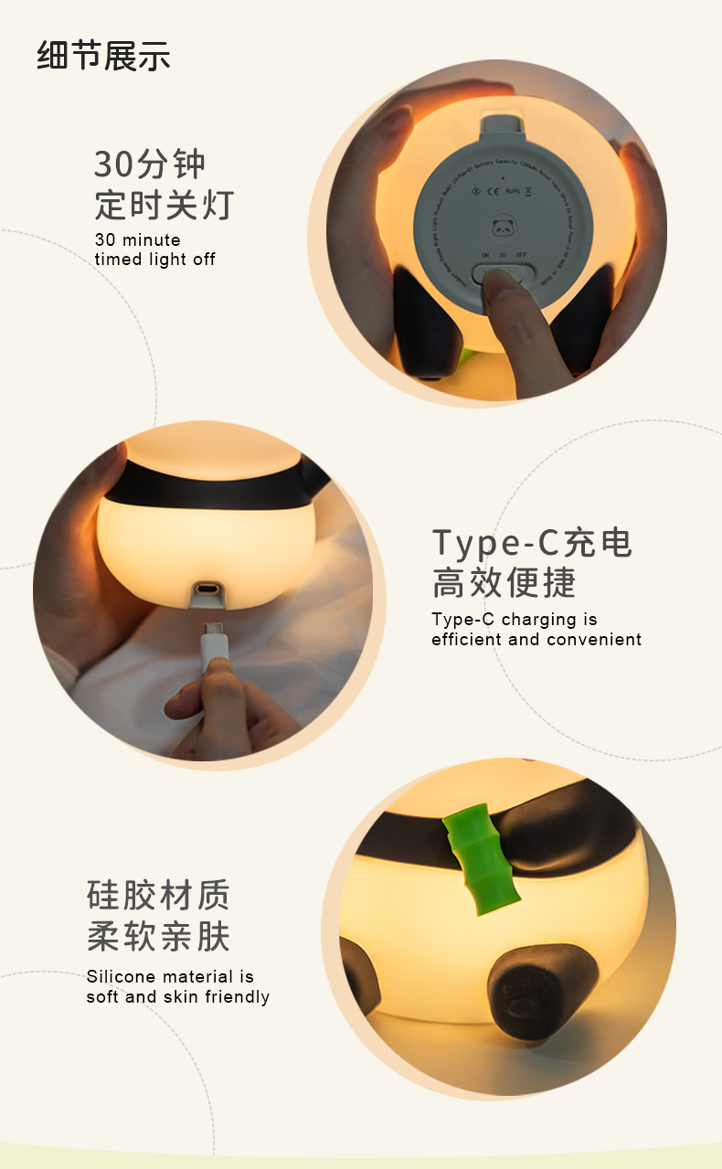 크로스보더 아마존 팬더 실리콘 무드등 창의적인 분위기 조명 생일 선물 크리스마스 선물 터치 램프스토어 가기