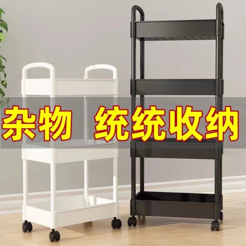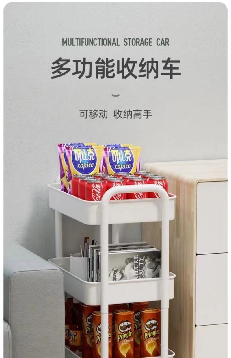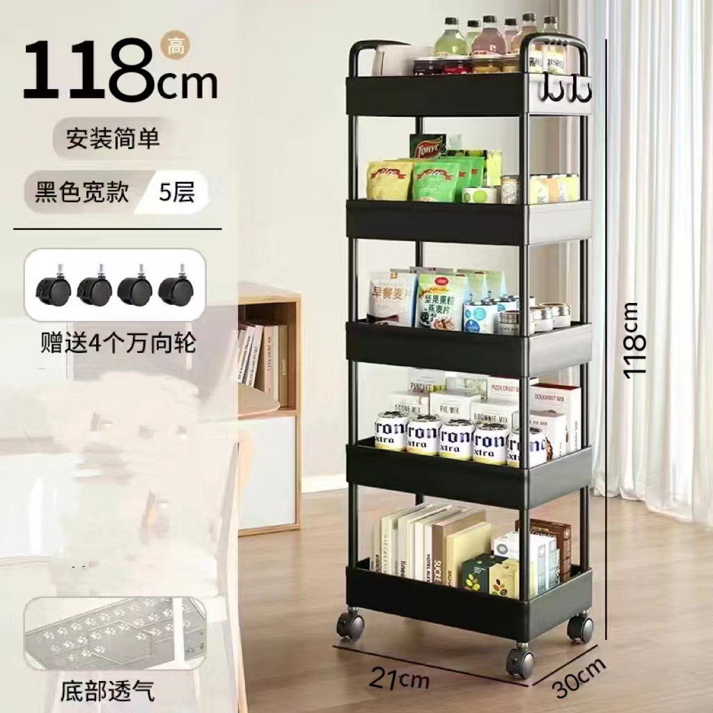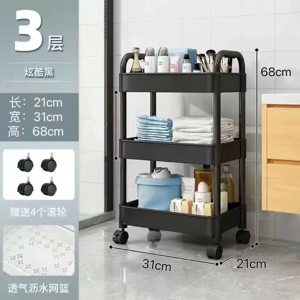 플라스틱 랙 트롤리 다기능 주방 바닥 랙 스낵 욕실 스토리지 랙 이동식 카트