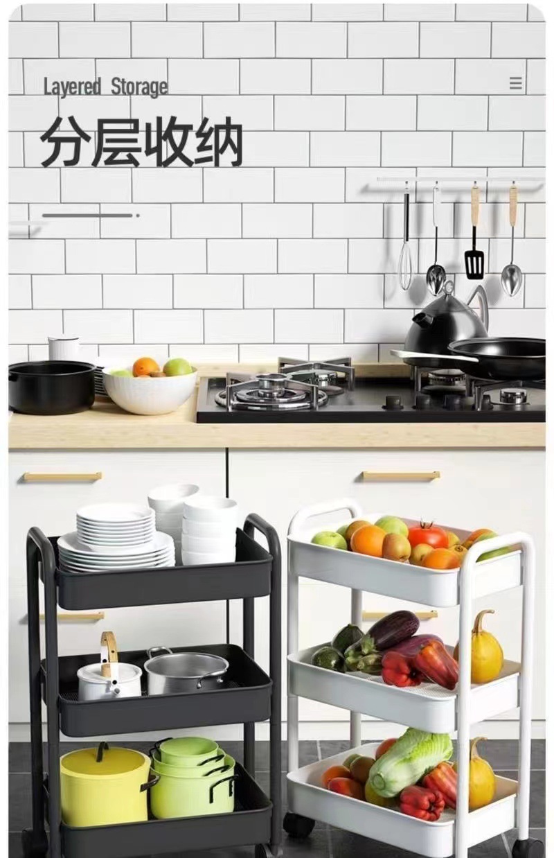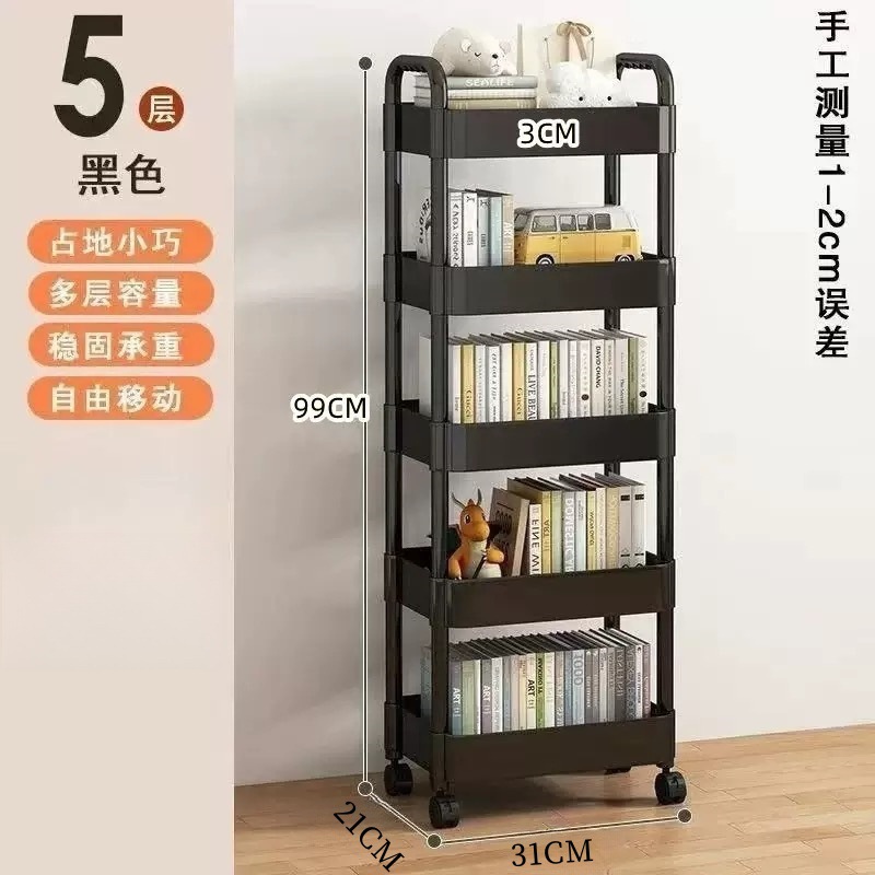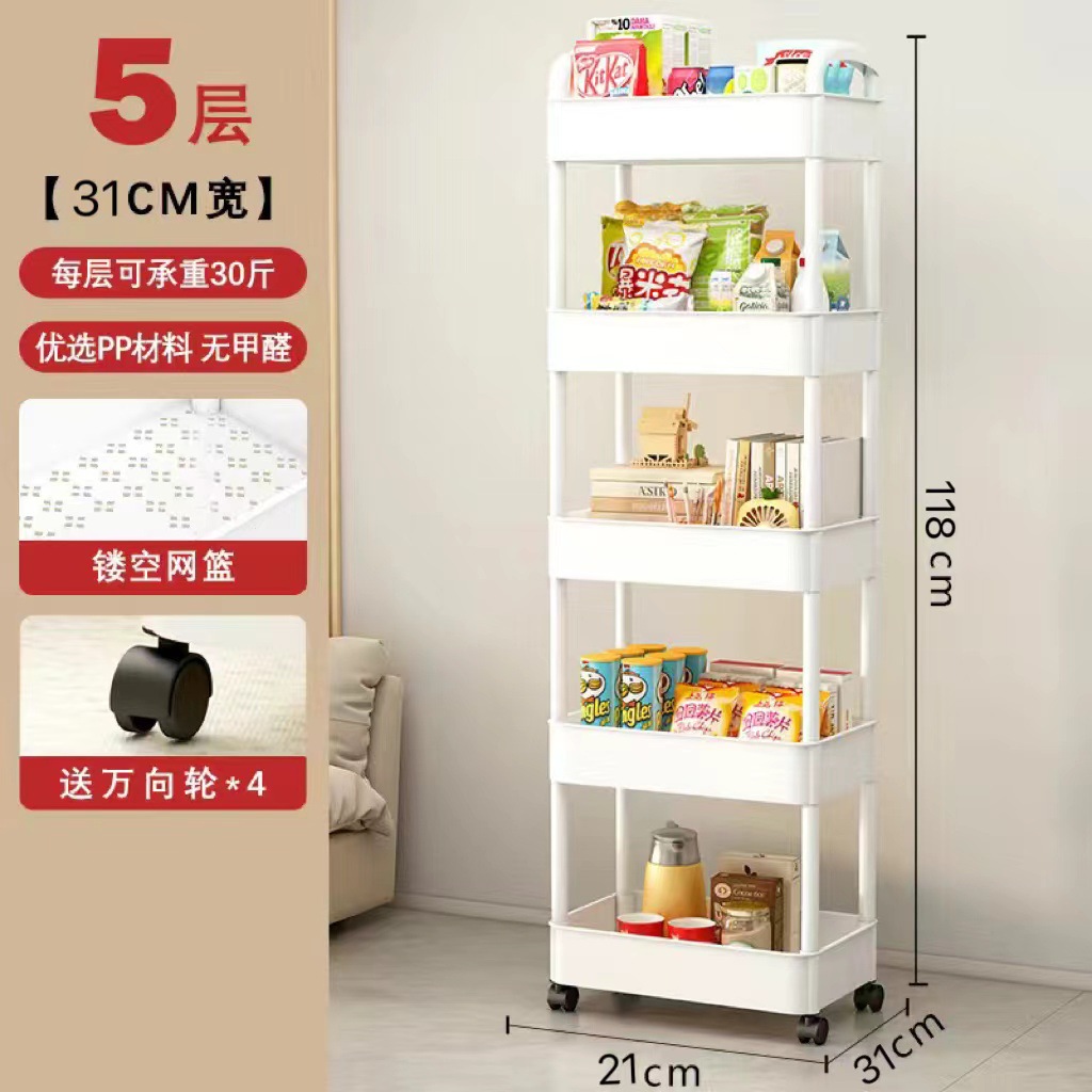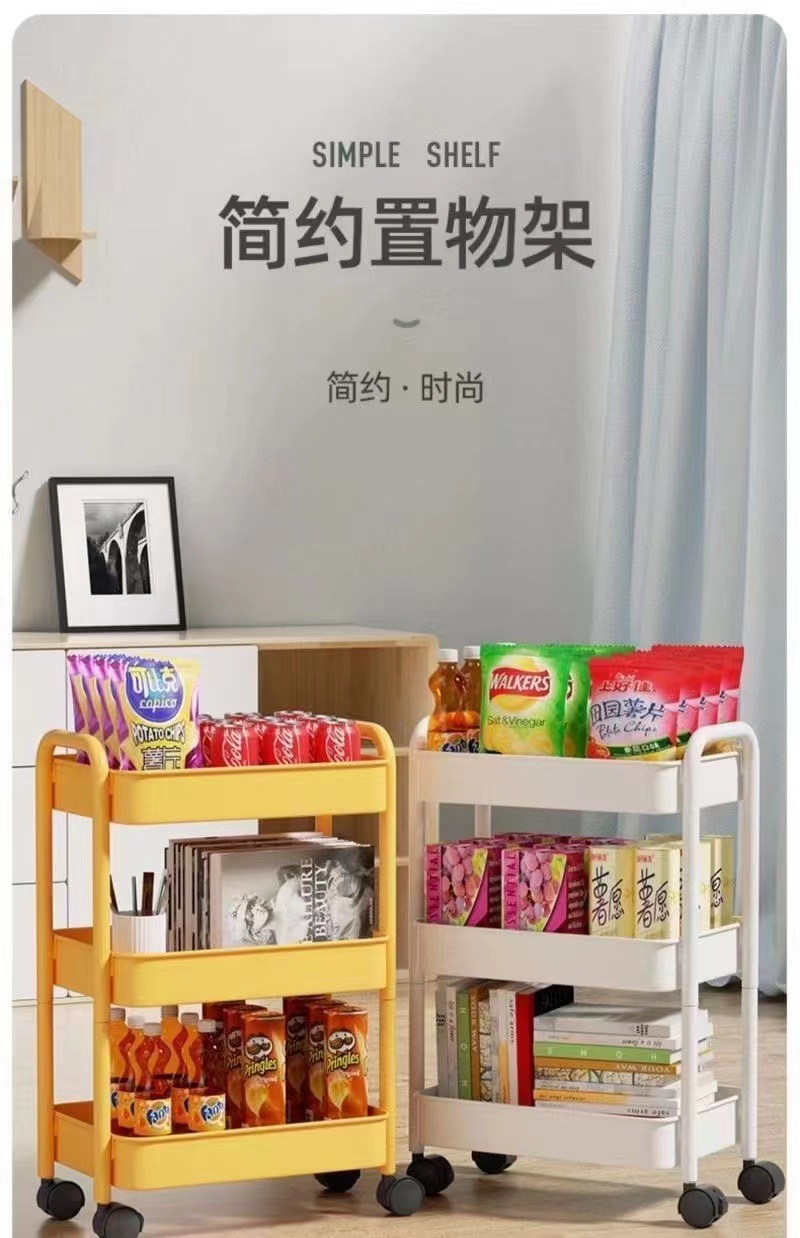 플라스틱 랙 트롤리 다기능 주방 바닥 랙 스낵 욕실 스토리지 랙 이동식 카트