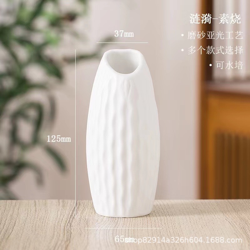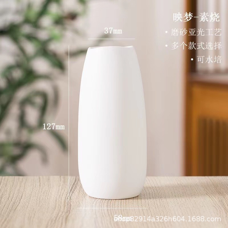 평범한 불타는 흰색 세라믹 꽃병 현대 간단한 말린 꽃 꽃 배열 도매 창조적 인 가정 장식 공예 장식품스토어 가기