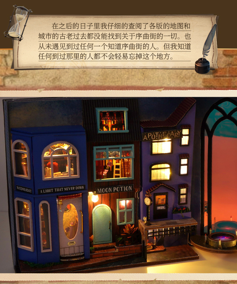 DIY 북엔드 하우스, 수제 집 모형, 나무 조립식 미니어처 풍경, 교육용 장난감, 여자아이를 위한 생일 선물스토어 가기