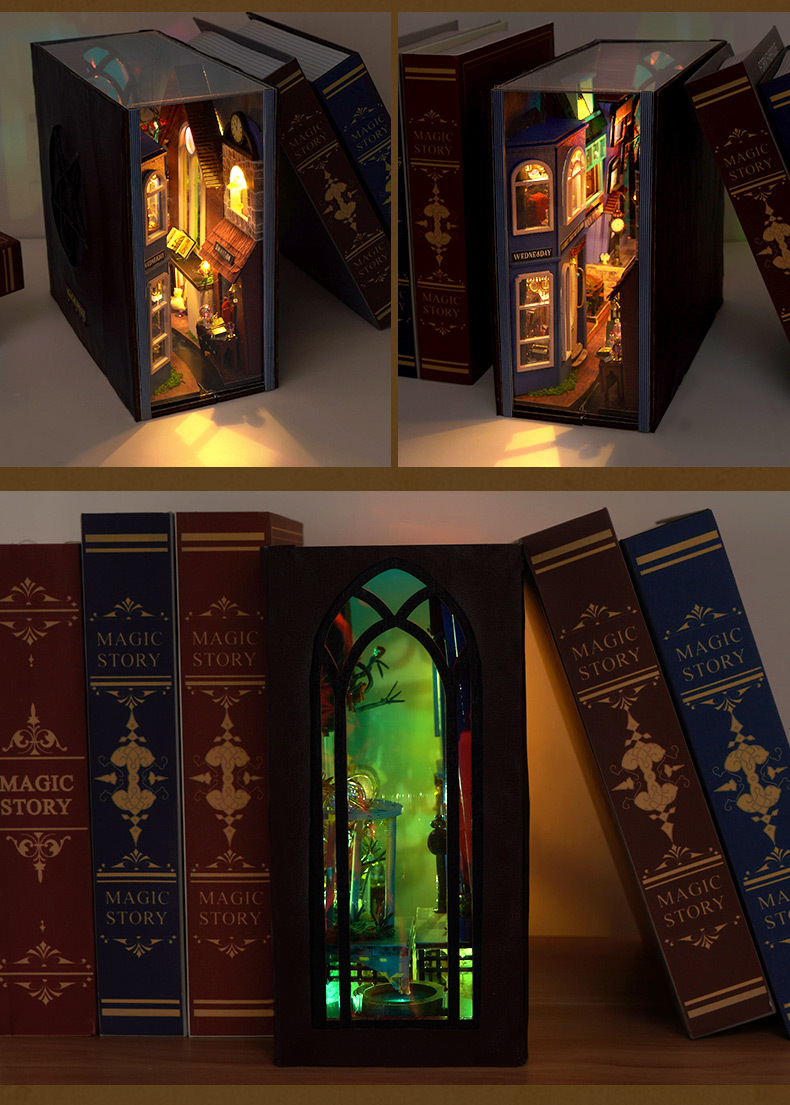 DIY 북엔드 하우스, 수제 집 모형, 나무 조립식 미니어처 풍경, 교육용 장난감, 여자아이를 위한 생일 선물