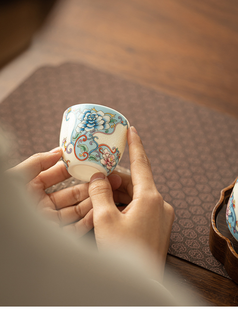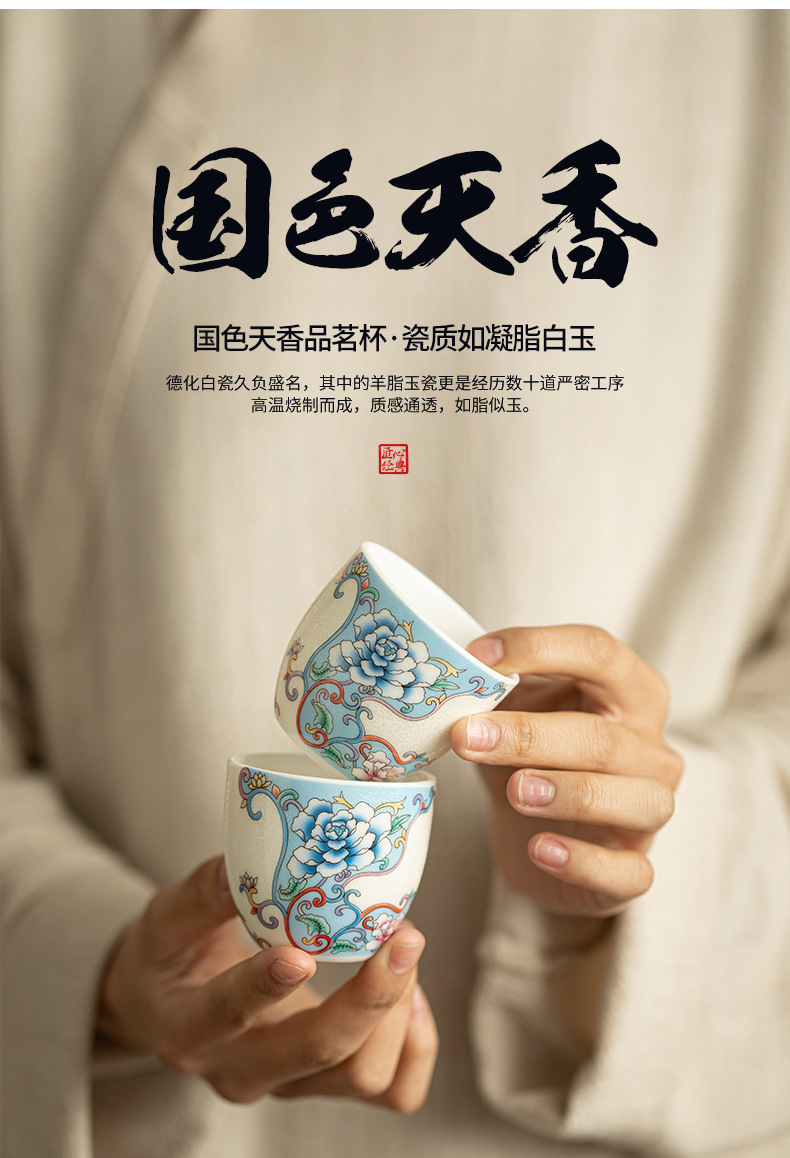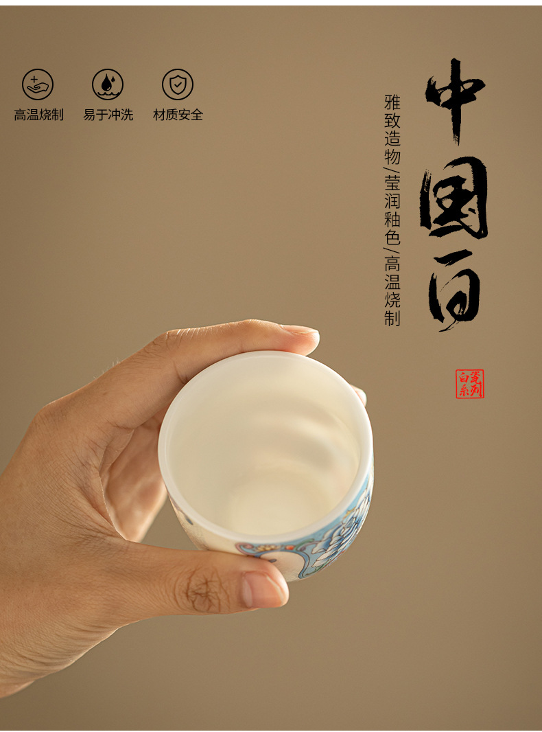Dehua 차 세트 양 지방 옥 에나멜 티 컵 마스터 컵 차 시음 컵 록 티 티 세트 세라믹 티 컵 쿵푸 티 세트스토어 가기