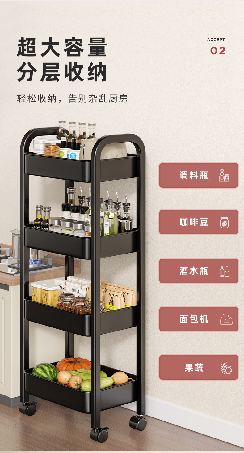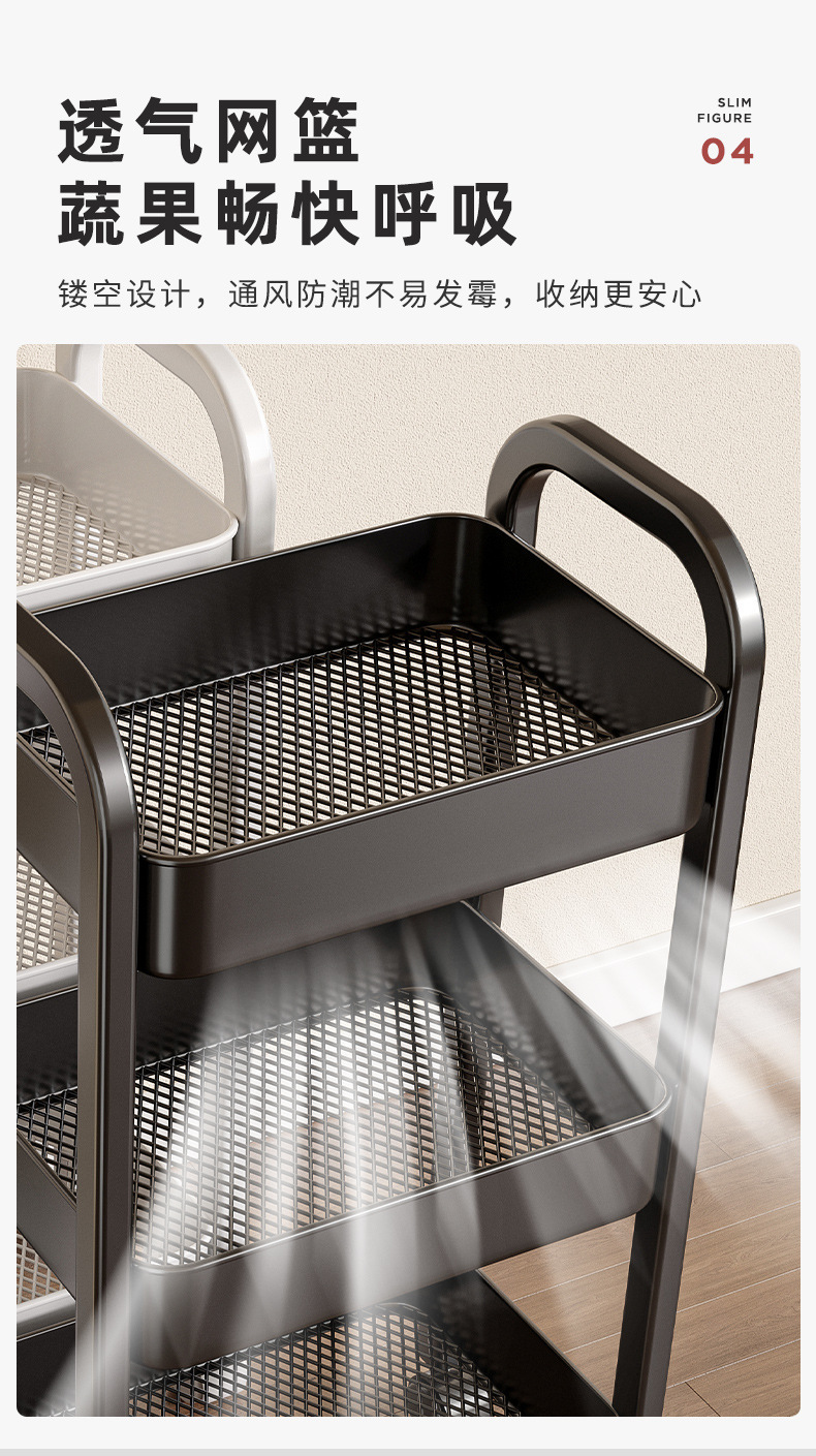 주방 다기능 야채 카트 저장 랙 바닥 다층 가정용 과일 및 야채 바구니 저장 랙 스낵 랙