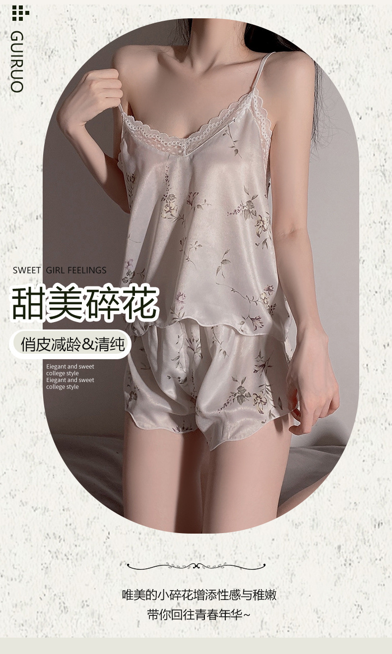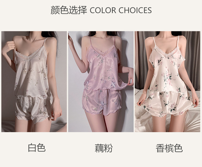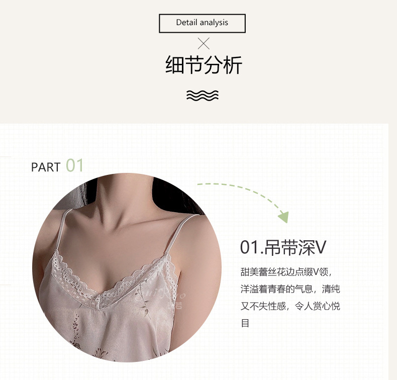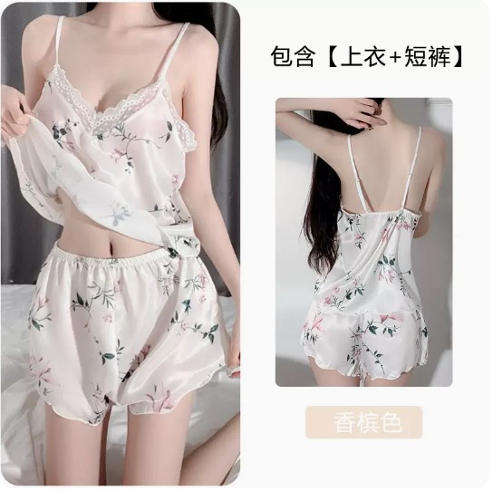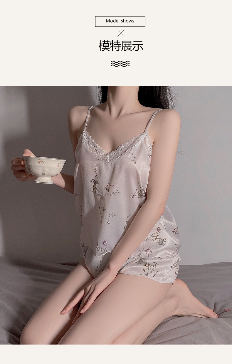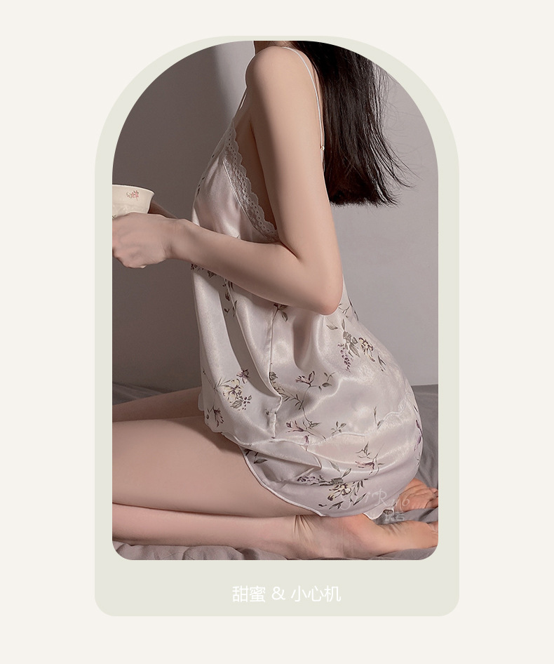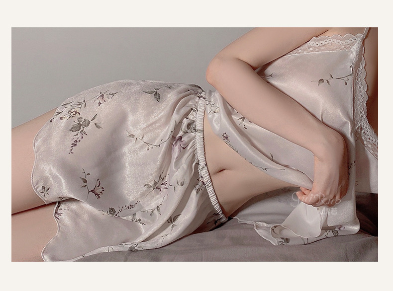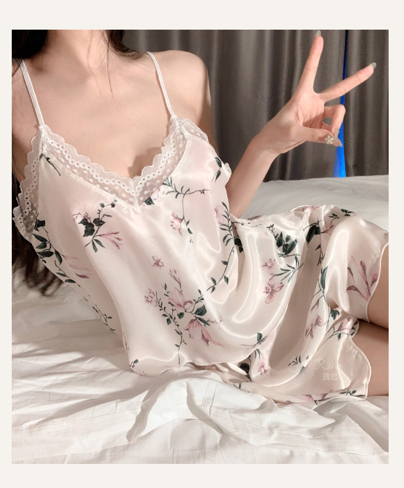 섹시한 개인 V 넥 잠옷 아이스 실크 백리스 나이트드레스 잠옷 얇은 레이스 짧은 스커트 홈 의류스토어 가기