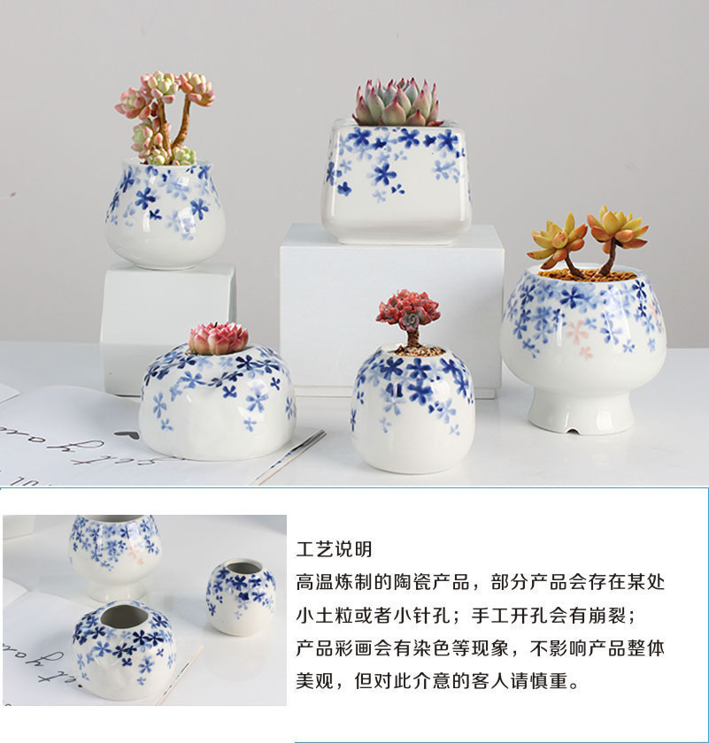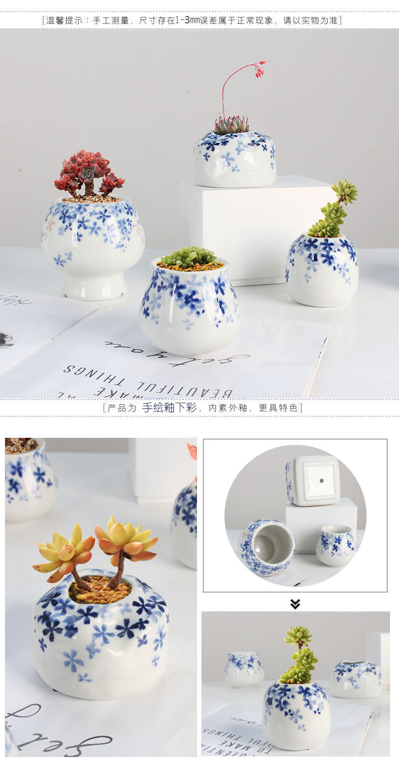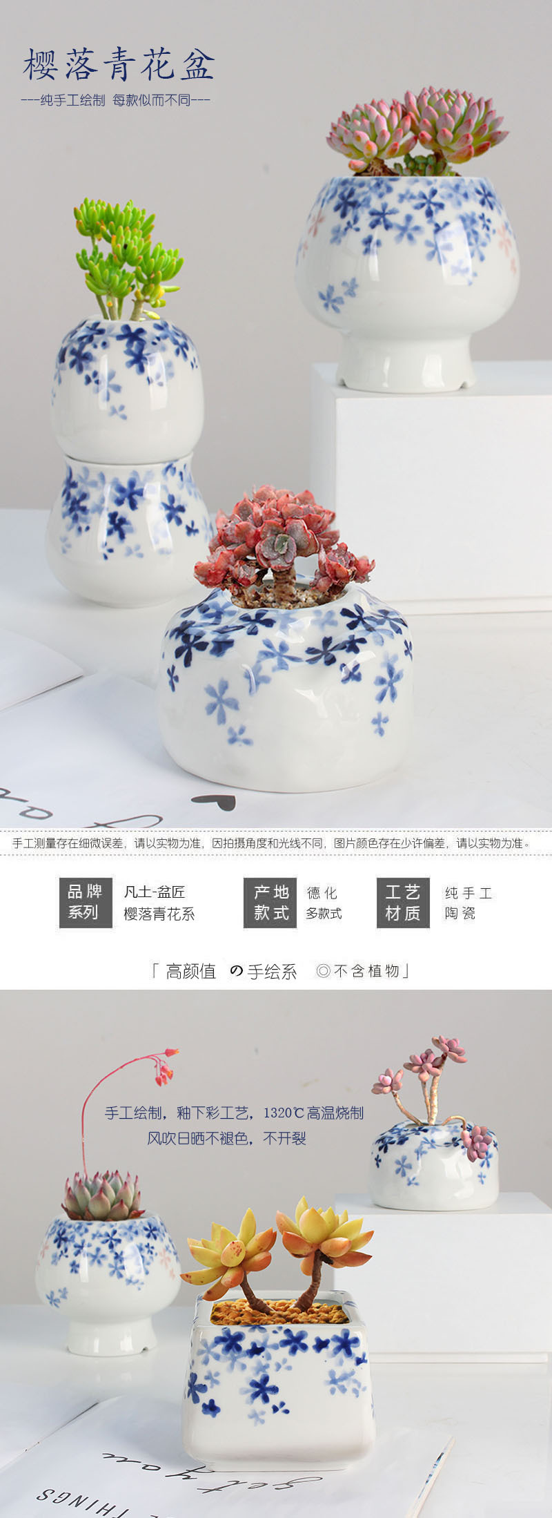 공장 직접 드롭 체리 시리즈 손으로 그린 파란색과 파란색 높은 색상 가치 즙이 많은 식물 화분 데스크탑 발코니 세라믹 녹색 식물 냄비