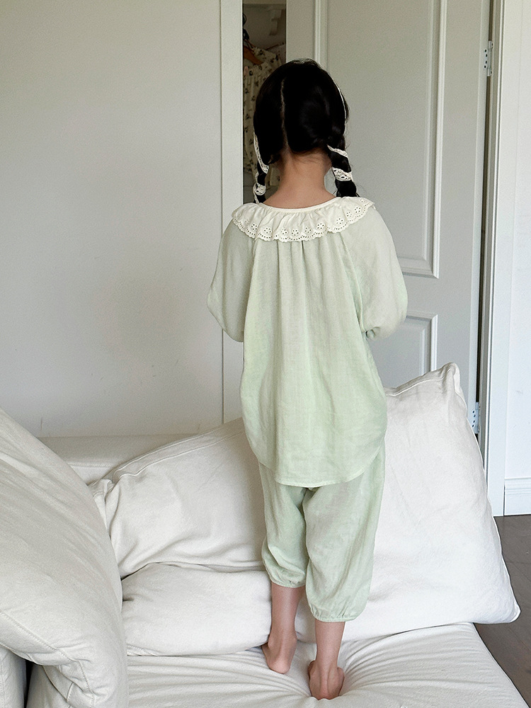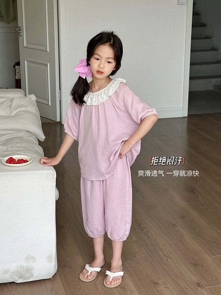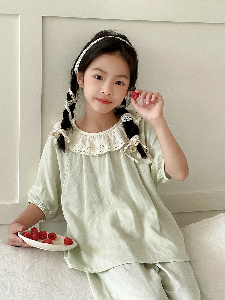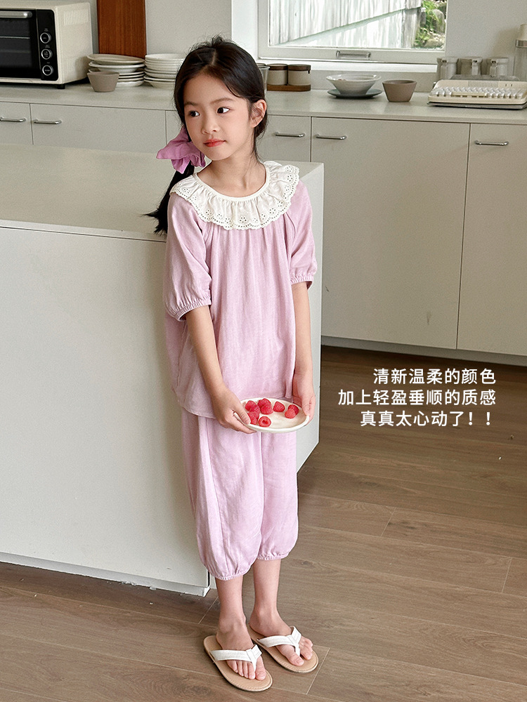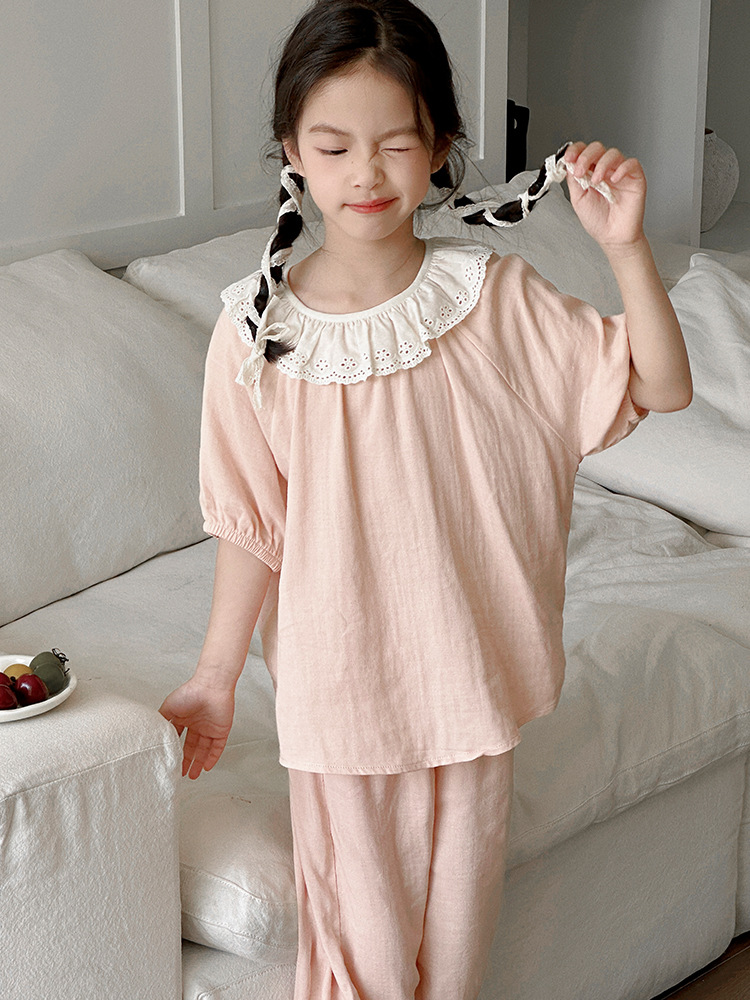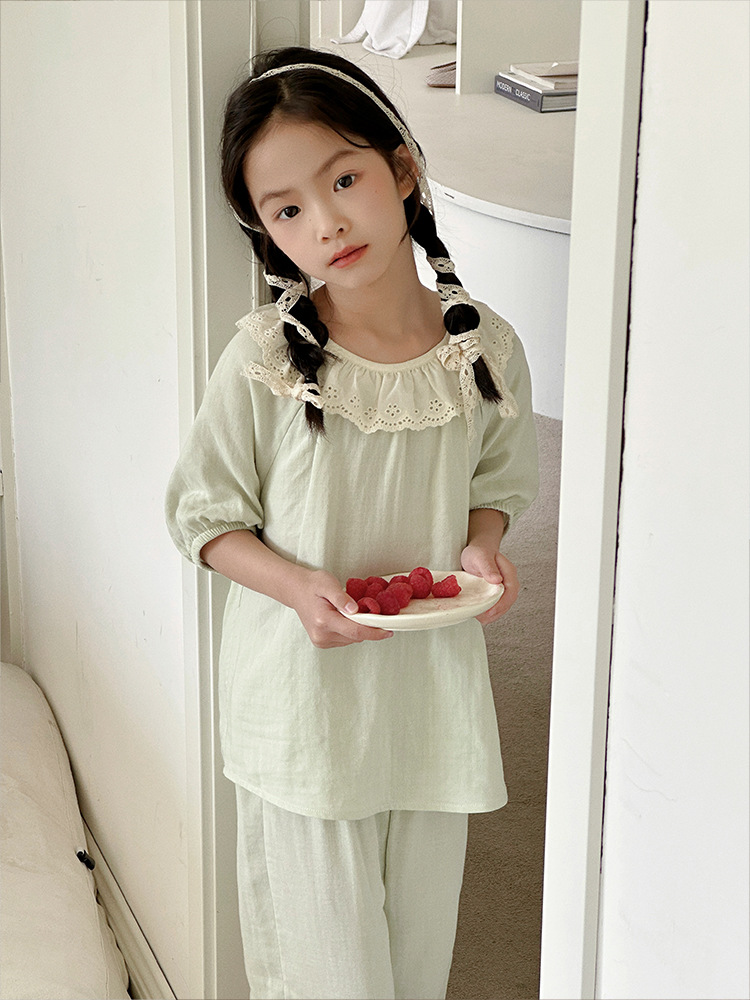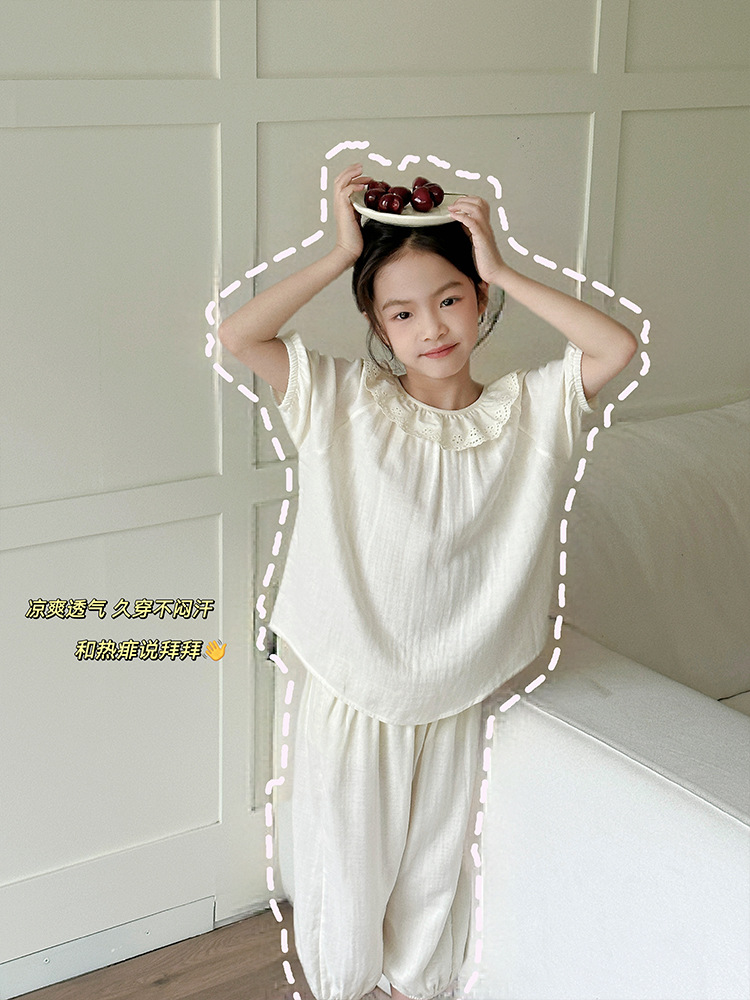 여름 새로운 어린이 가정 옷 소녀의 대나무 면화 얇은 공주 스타일 작은 신선한 면화 잠옷 투피스 양복스토어 가기