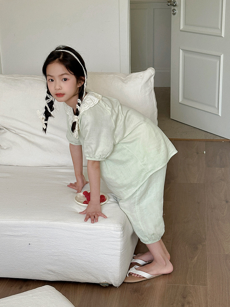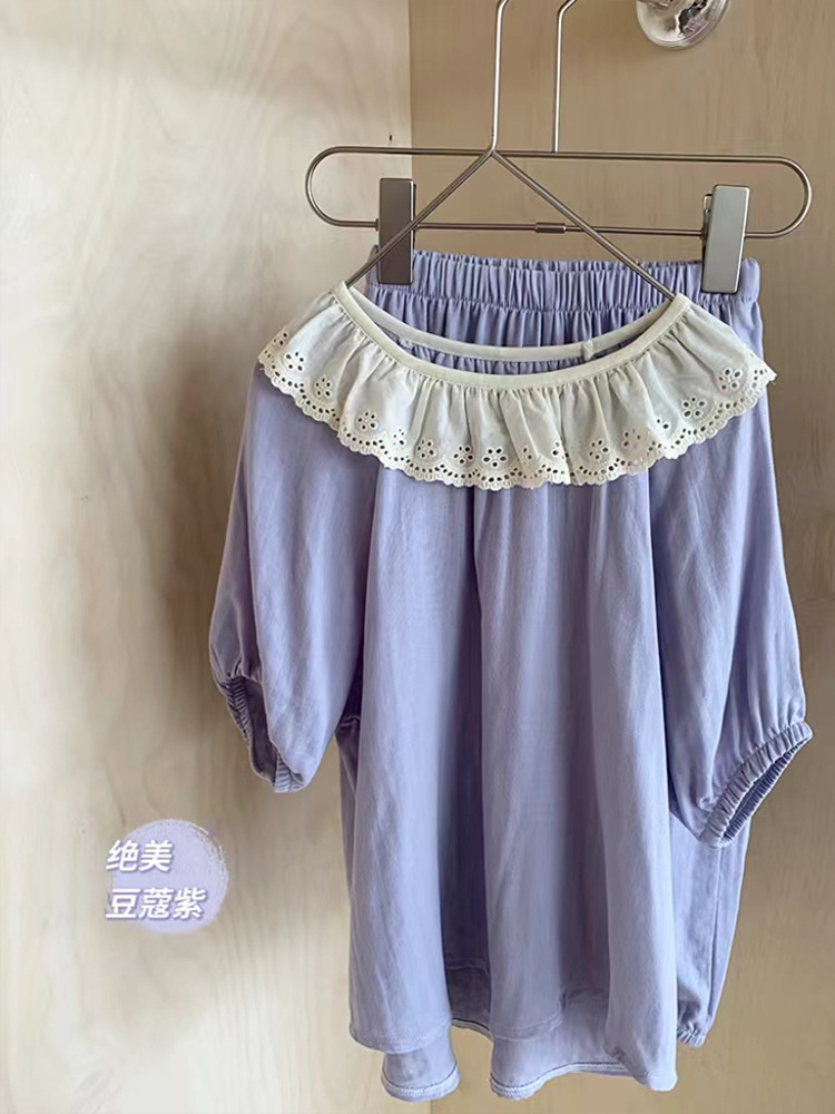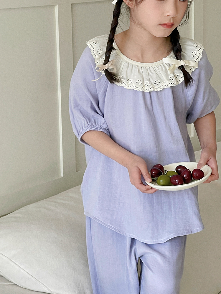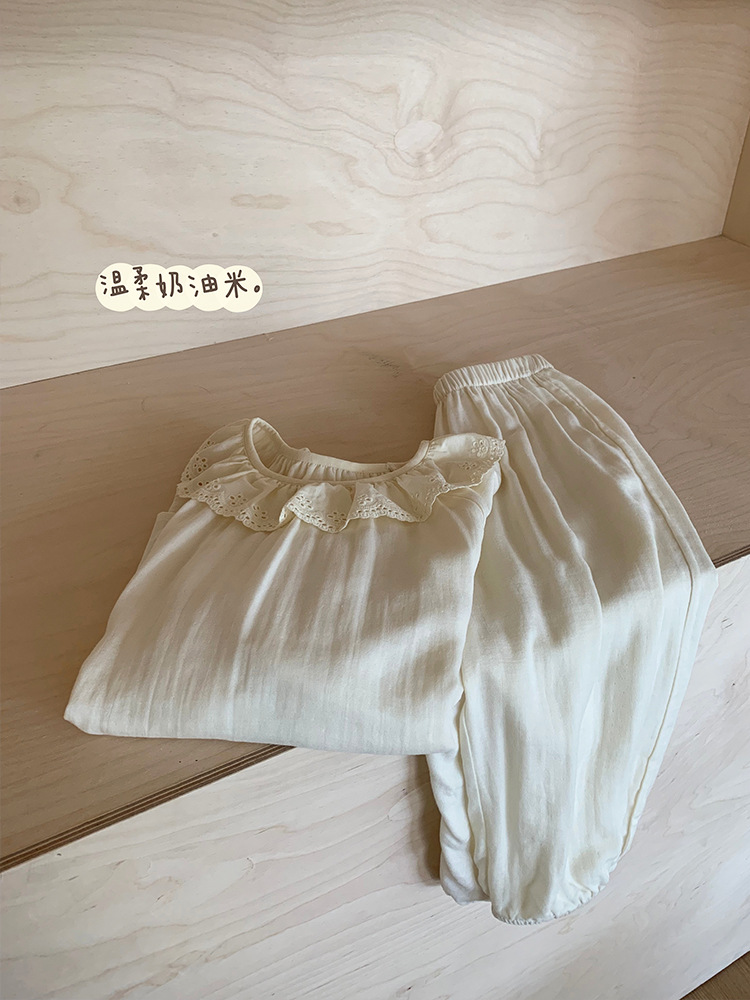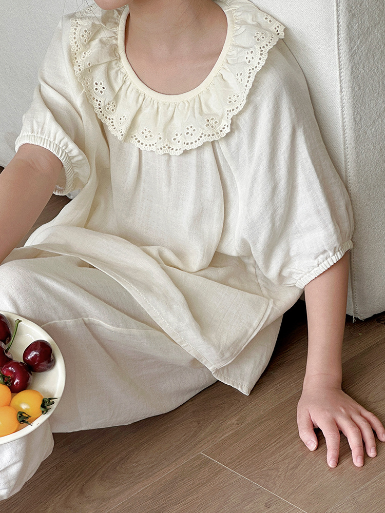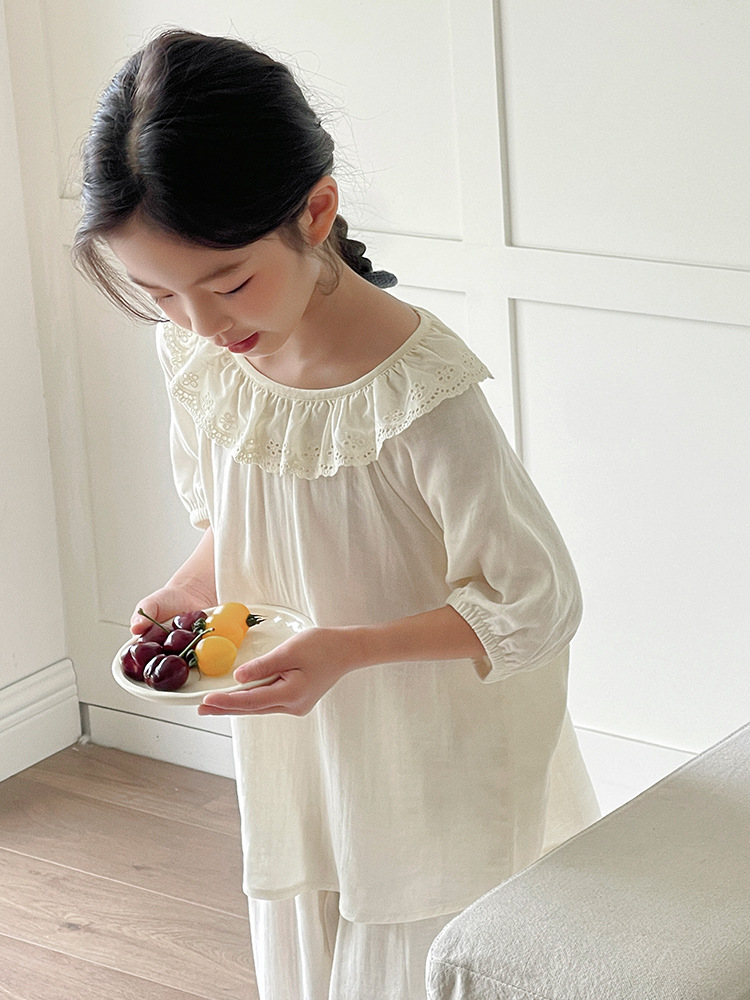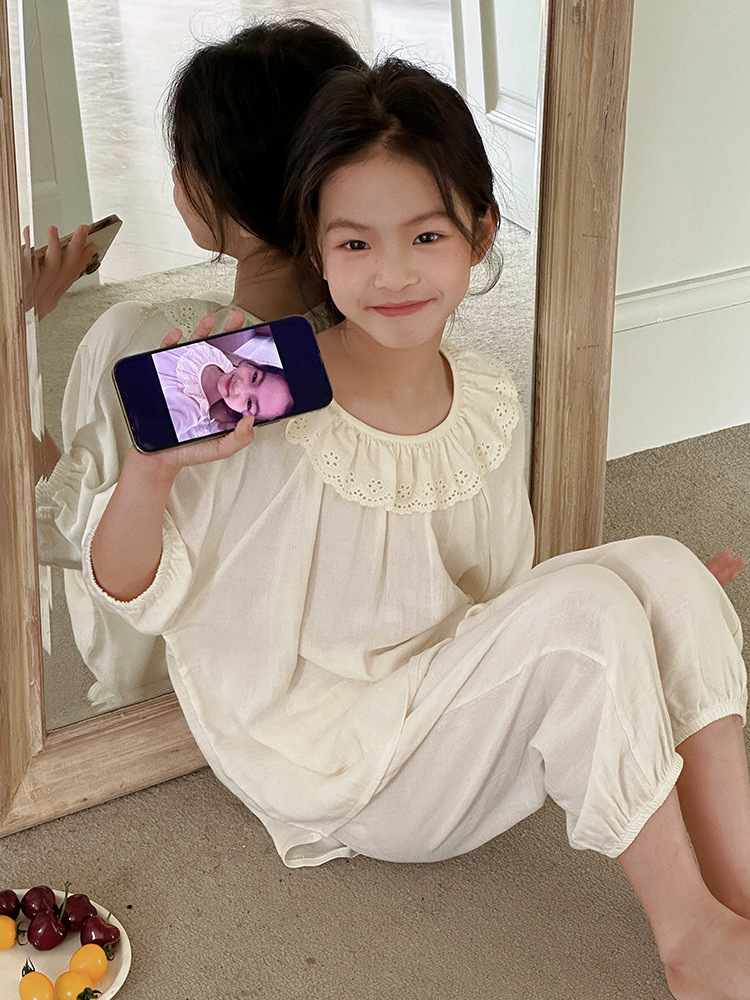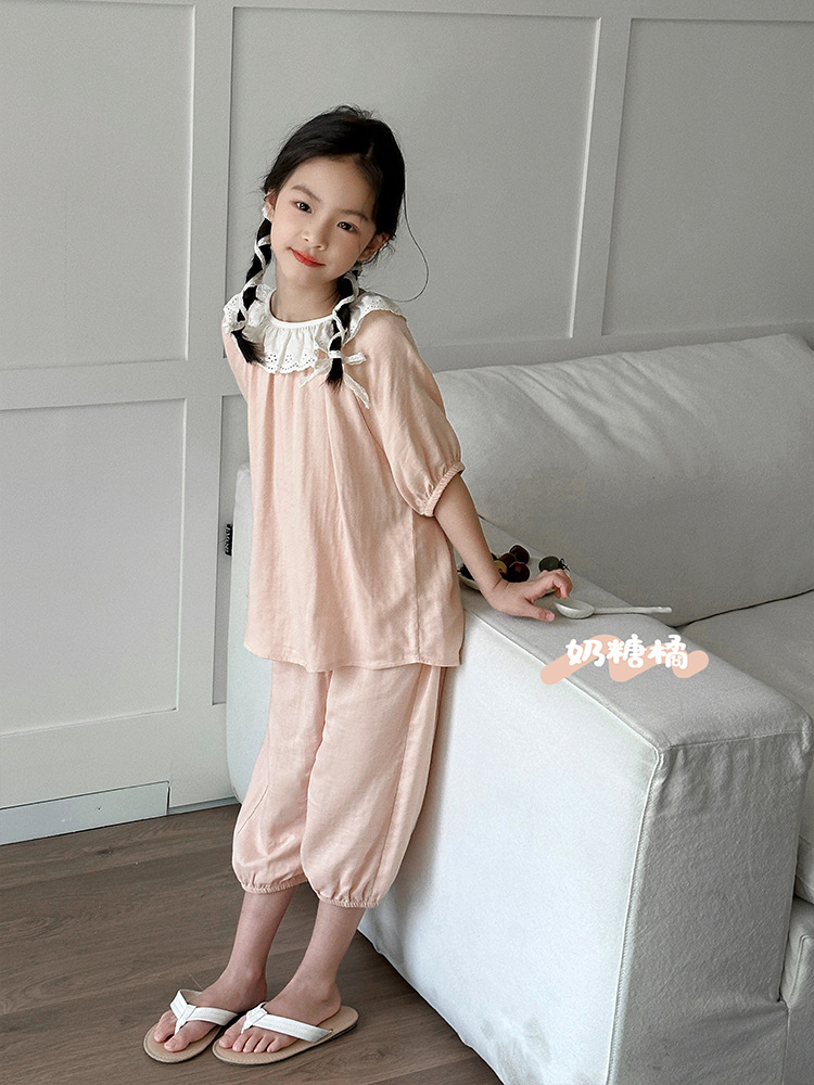 여름 새로운 어린이 가정 옷 소녀의 대나무 면화 얇은 공주 스타일 작은 신선한 면화 잠옷 투피스 양복스토어 가기