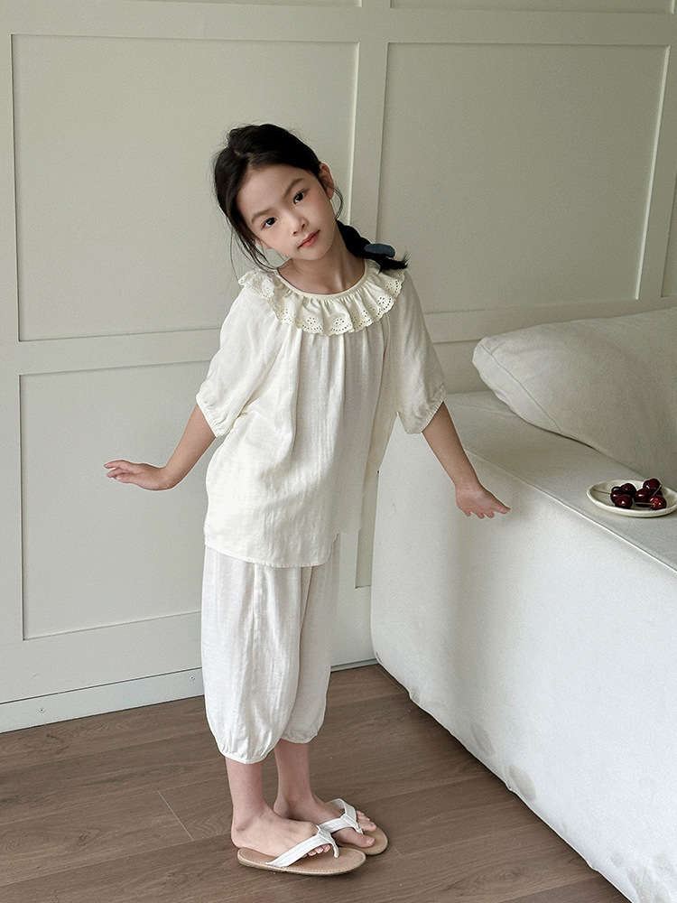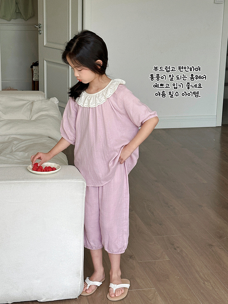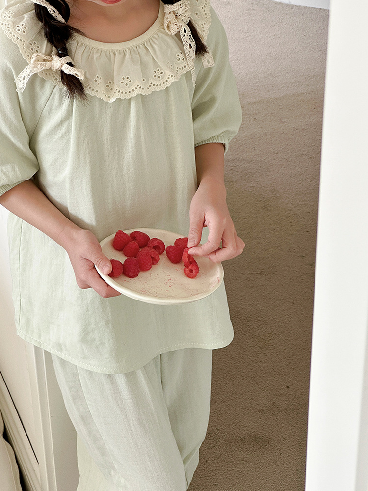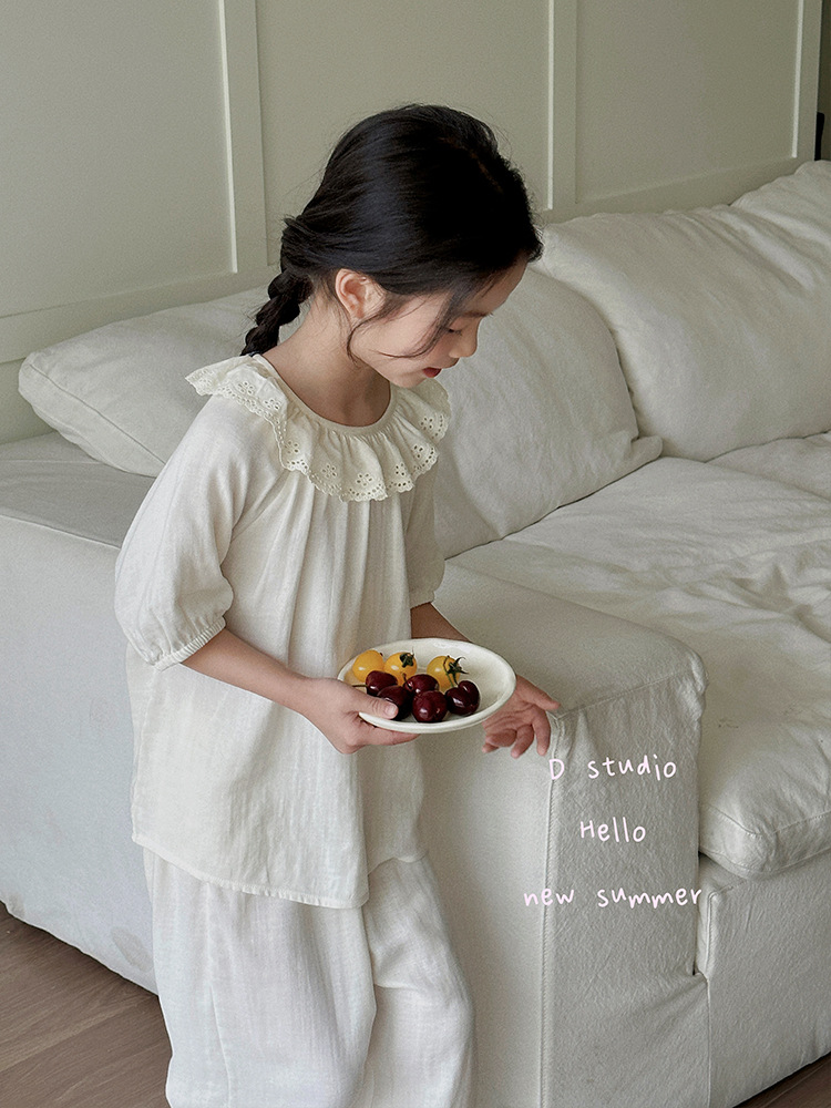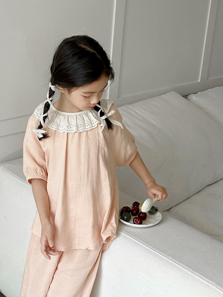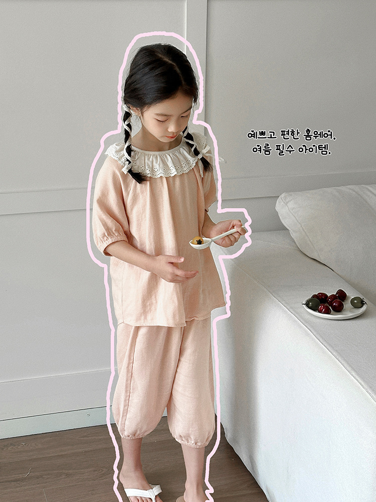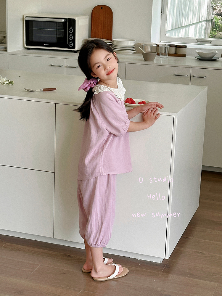 여름 새로운 어린이 가정 옷 소녀의 대나무 면화 얇은 공주 스타일 작은 신선한 면화 잠옷 투피스 양복스토어 가기