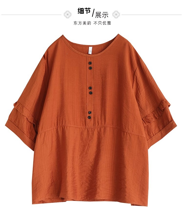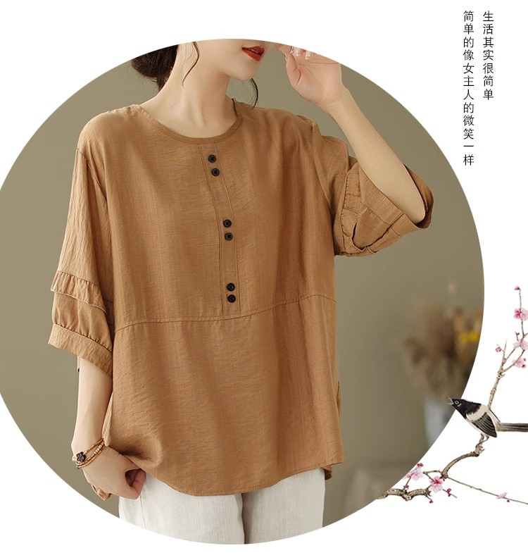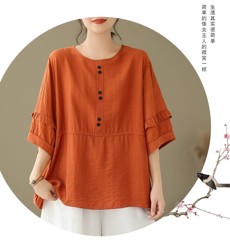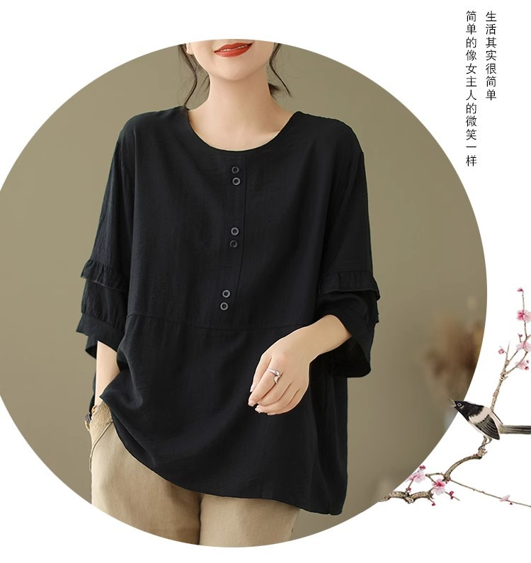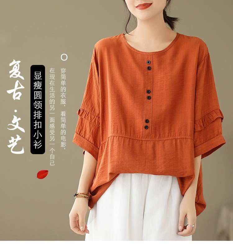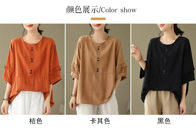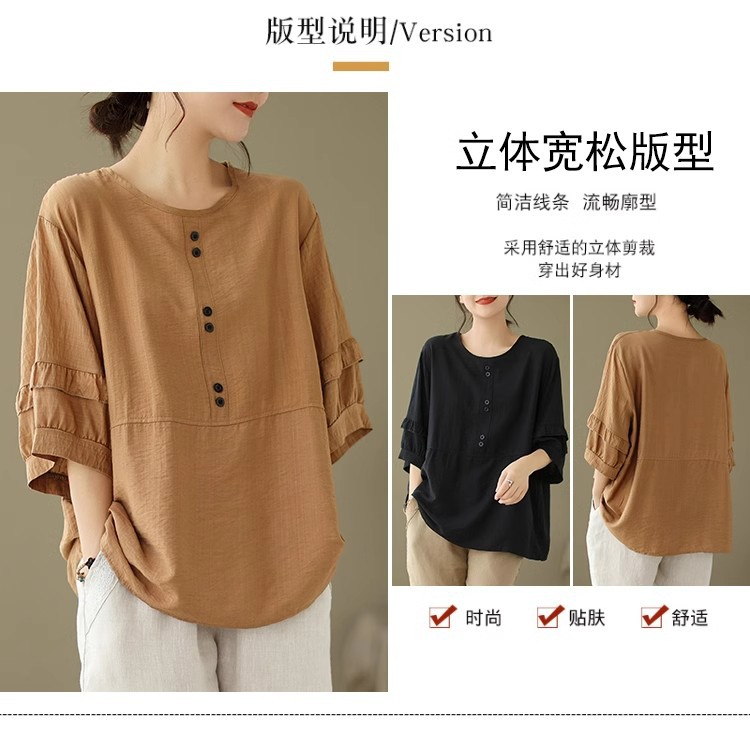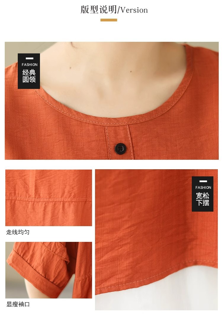 2024 년 여름 플러스 사이즈 여성 여름 새 통통녀 배꼽 덮음 최고 살 슬리밍 느슨한 면과 리넨 반팔 티셔츠 트렌디스토어 가기
