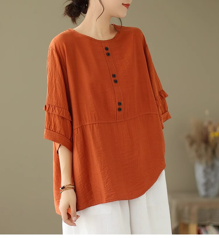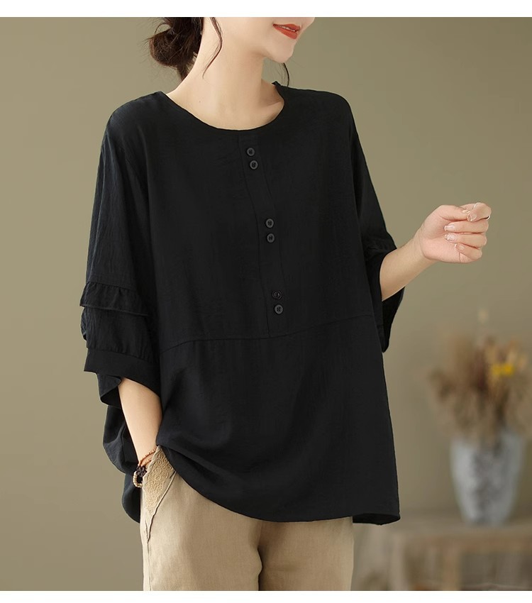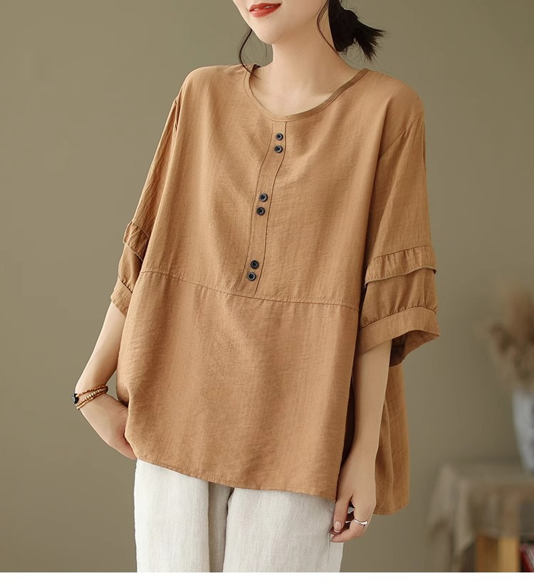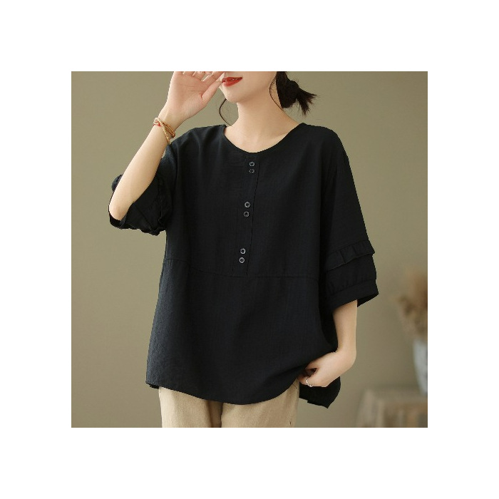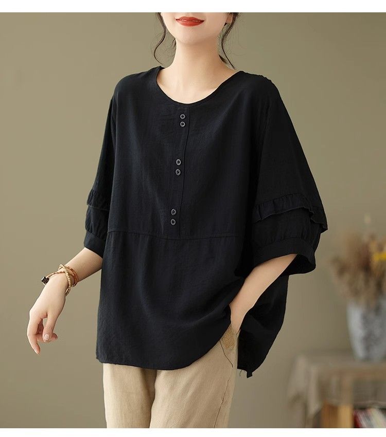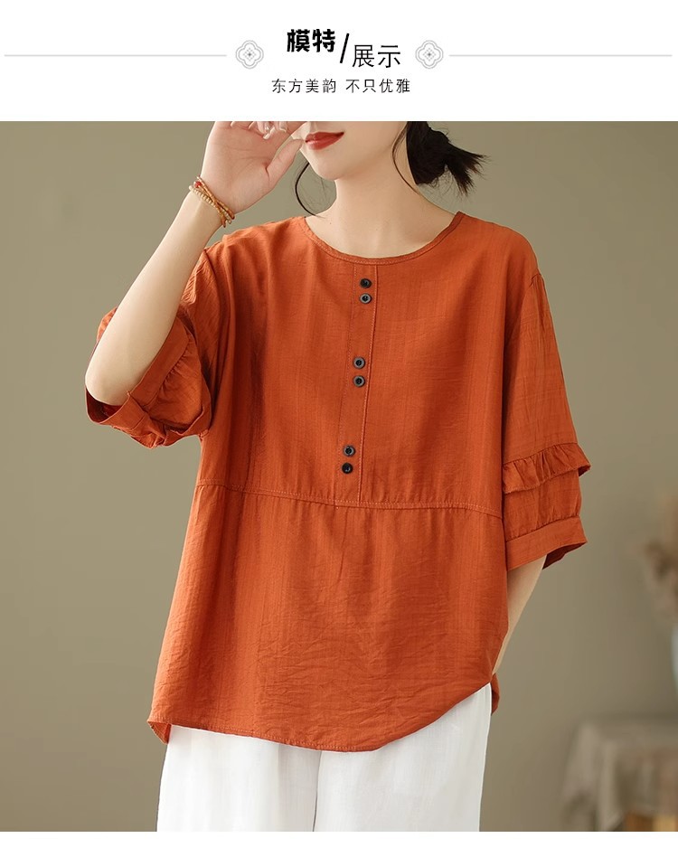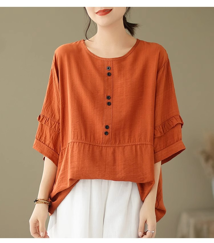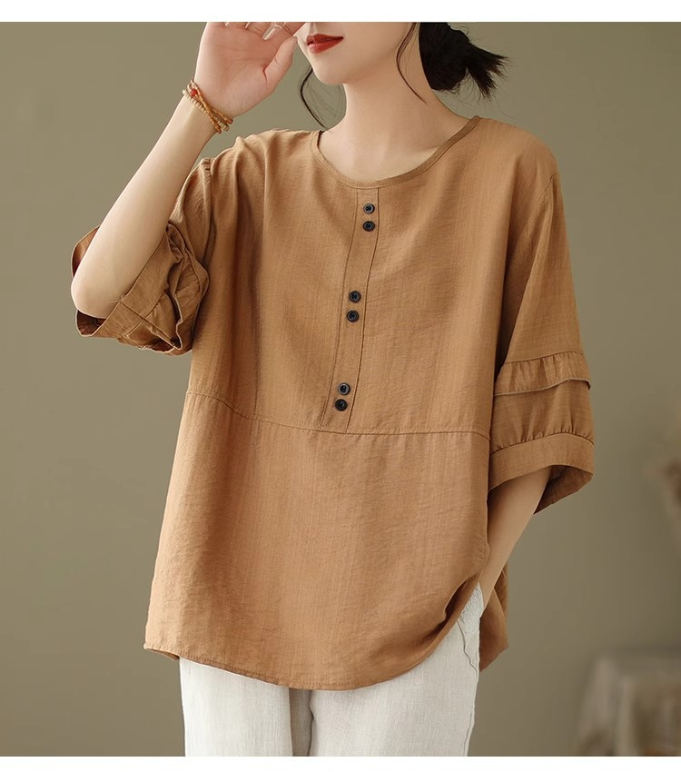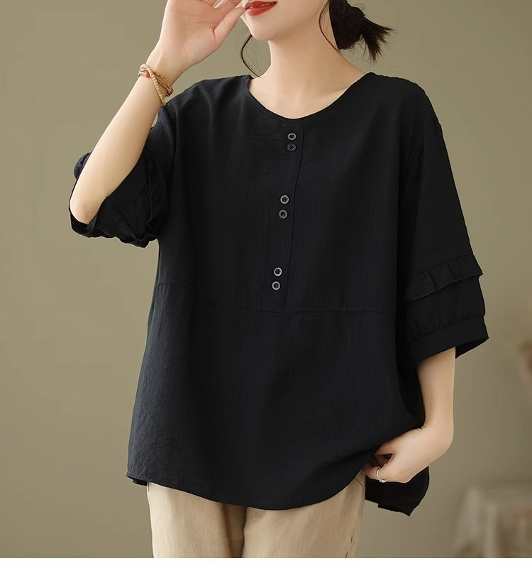 2024 년 여름 플러스 사이즈 여성 여름 새 통통녀 배꼽 덮음 최고 살 슬리밍 느슨한 면과 리넨 반팔 티셔츠 트렌디스토어 가기