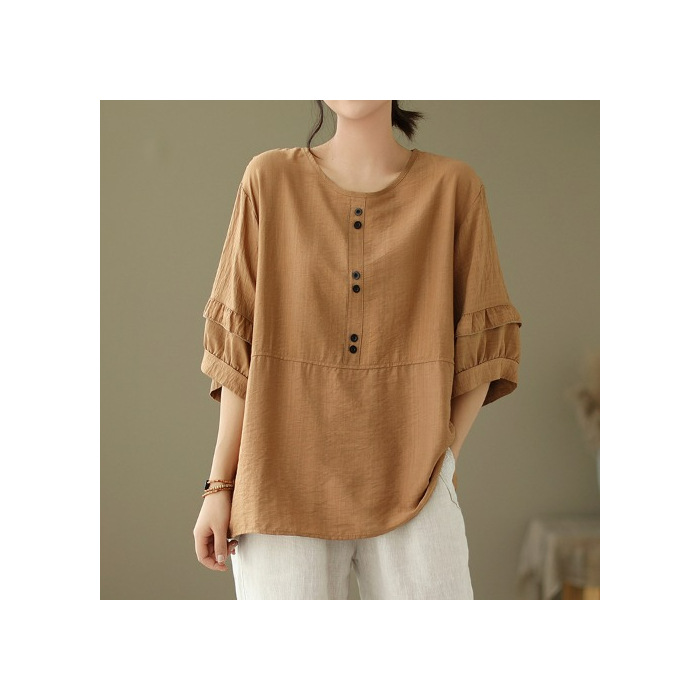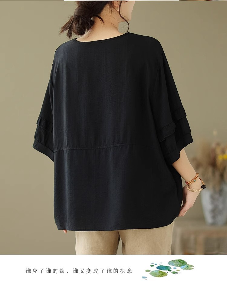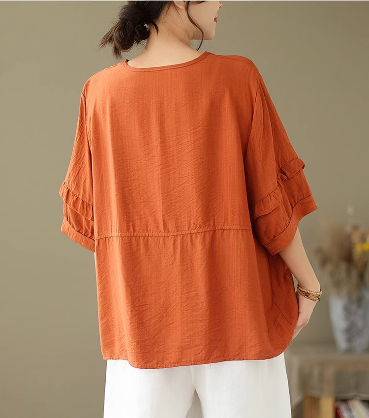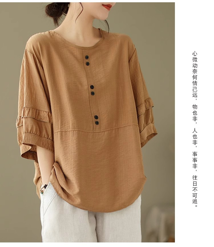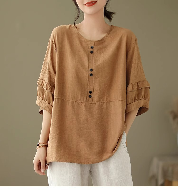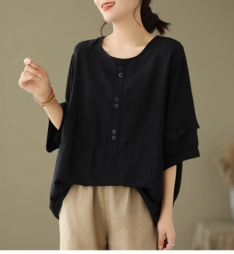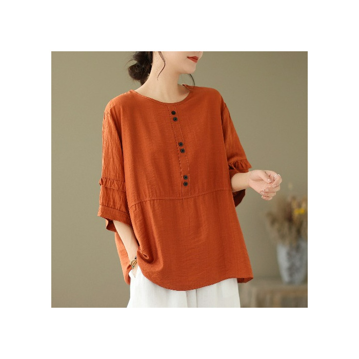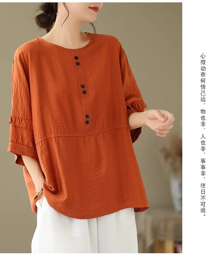 2024 년 여름 플러스 사이즈 여성 여름 새 통통녀 배꼽 덮음 최고 살 슬리밍 느슨한 면과 리넨 반팔 티셔츠 트렌디스토어 가기