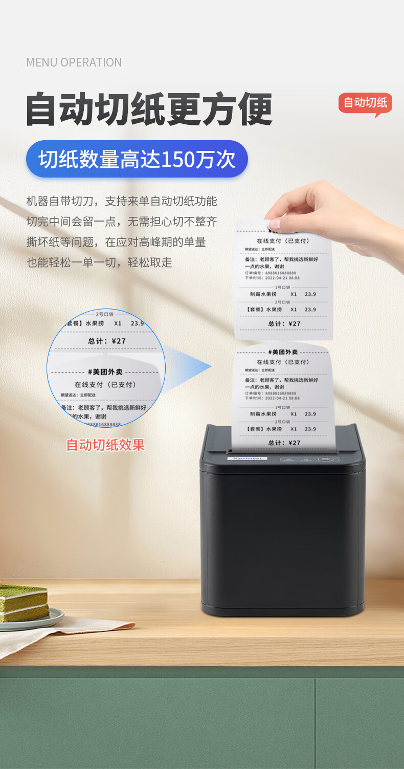 XprinterXP-80T 맞춤형 열 영수증 프린터 국경 간 프론트 데스크 계산원 영수증 바코드 주방